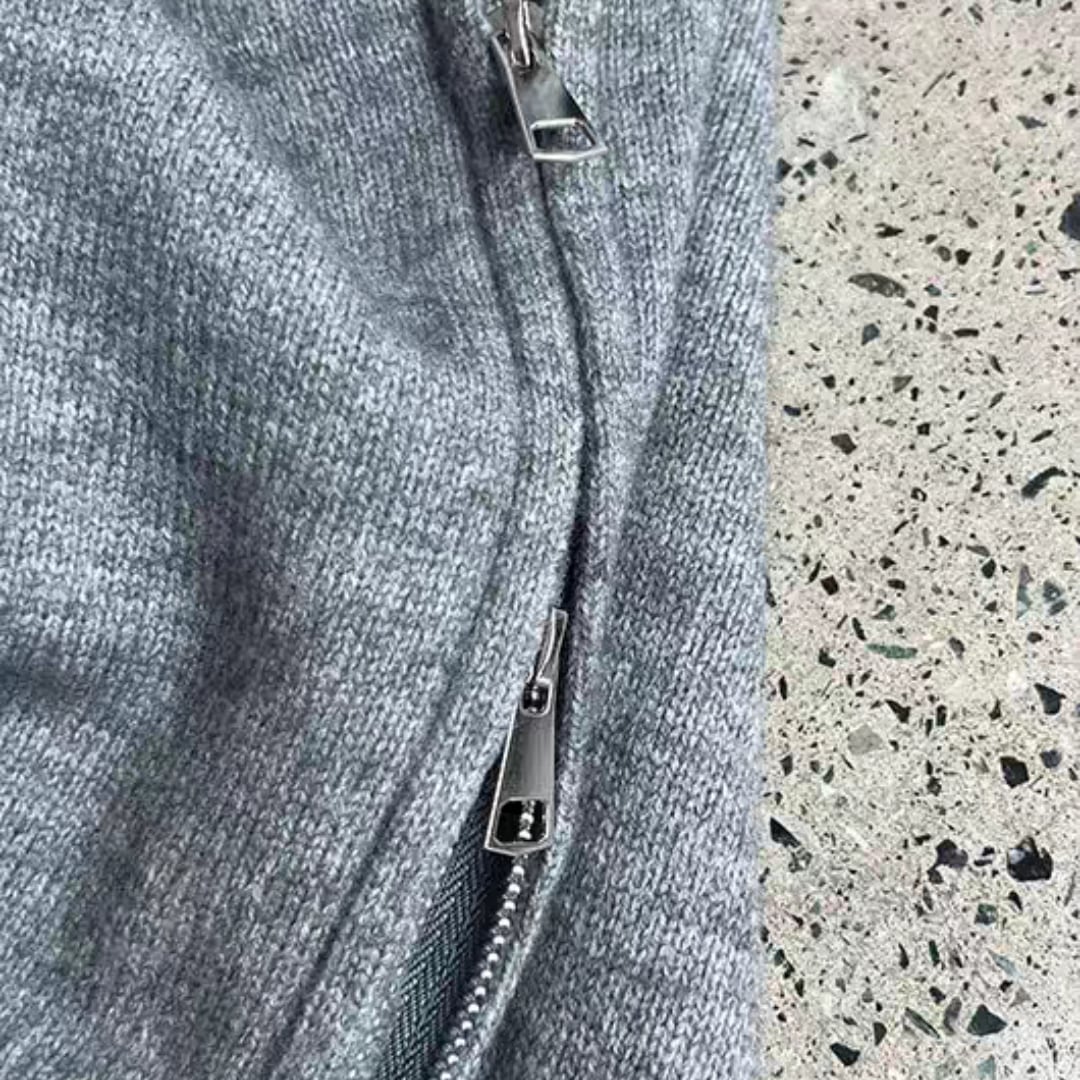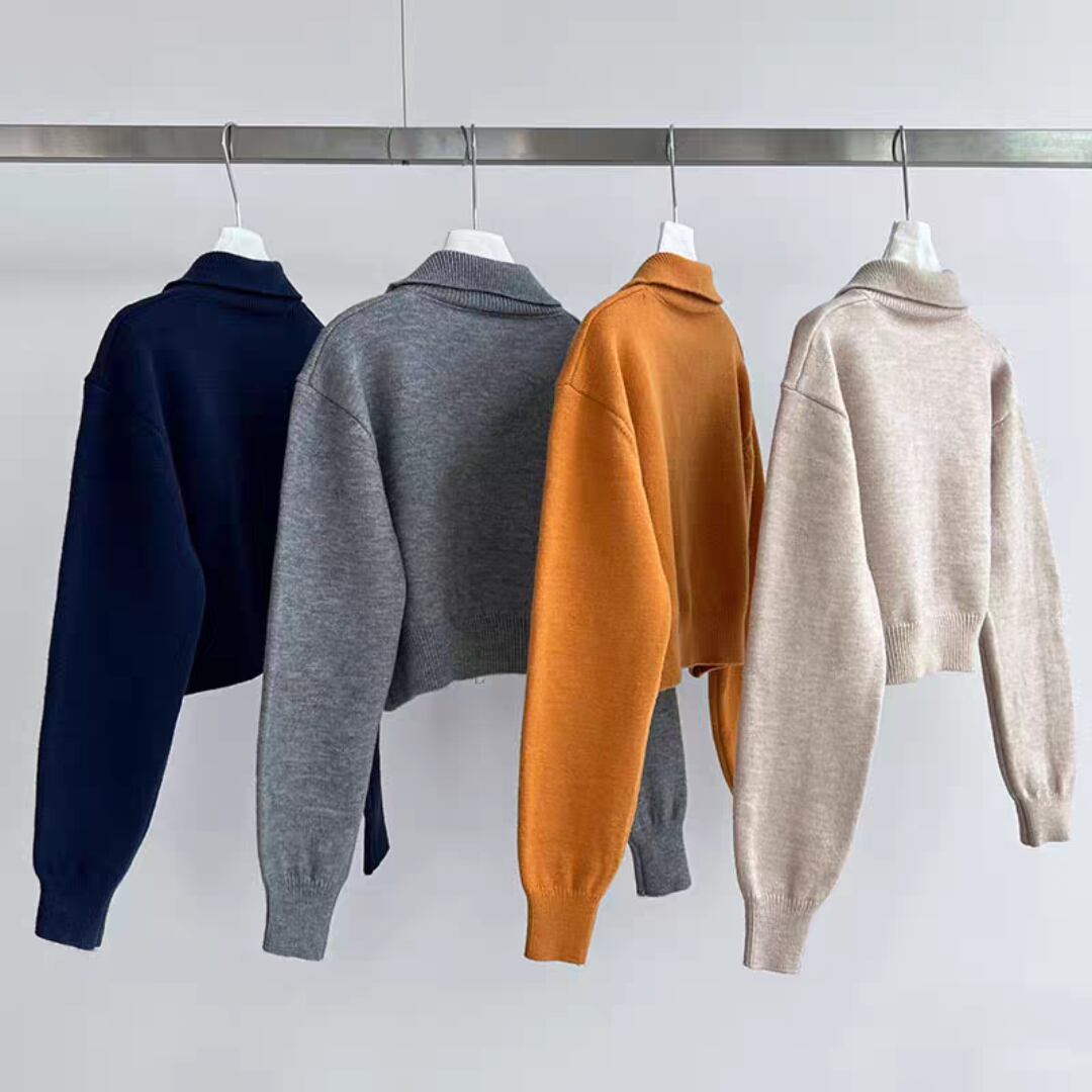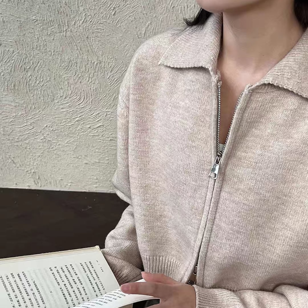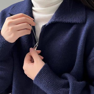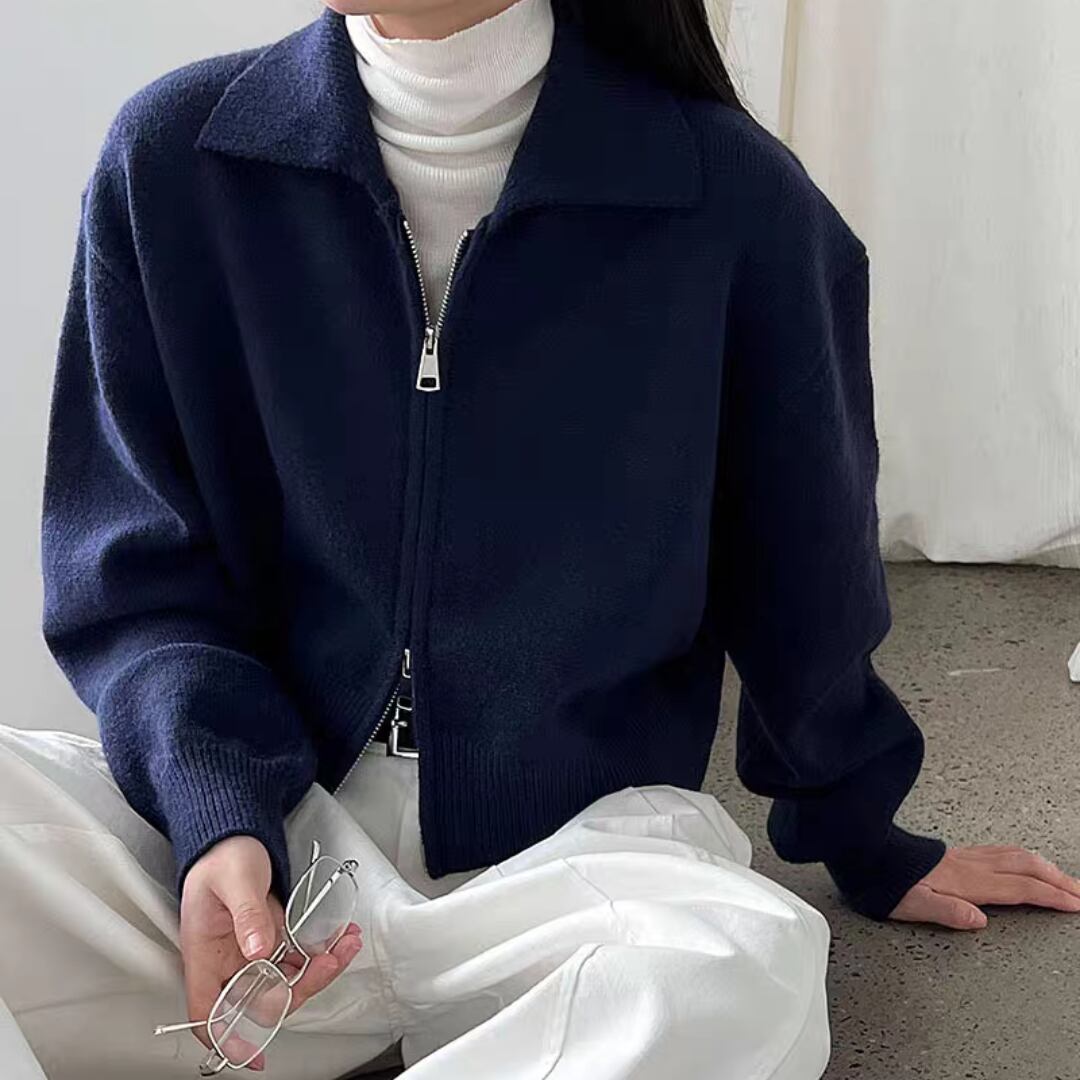 クロップド丈ダブルジッパ ニットカーディガン 0182