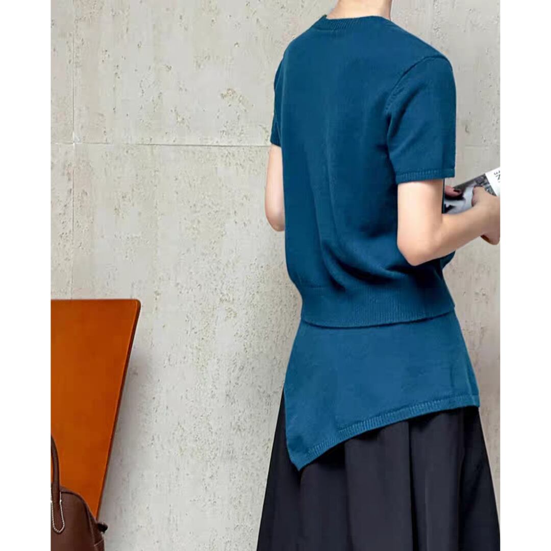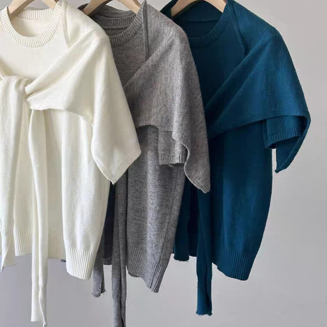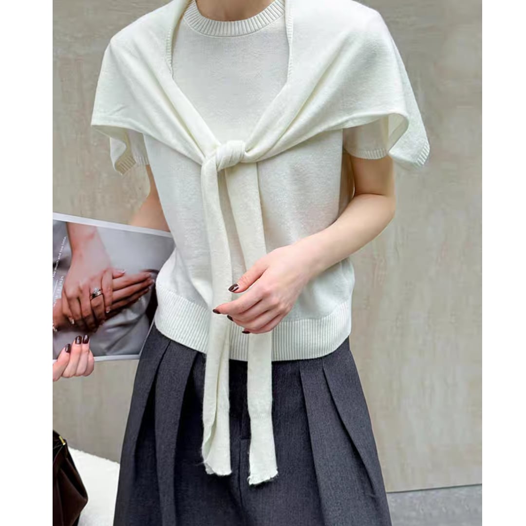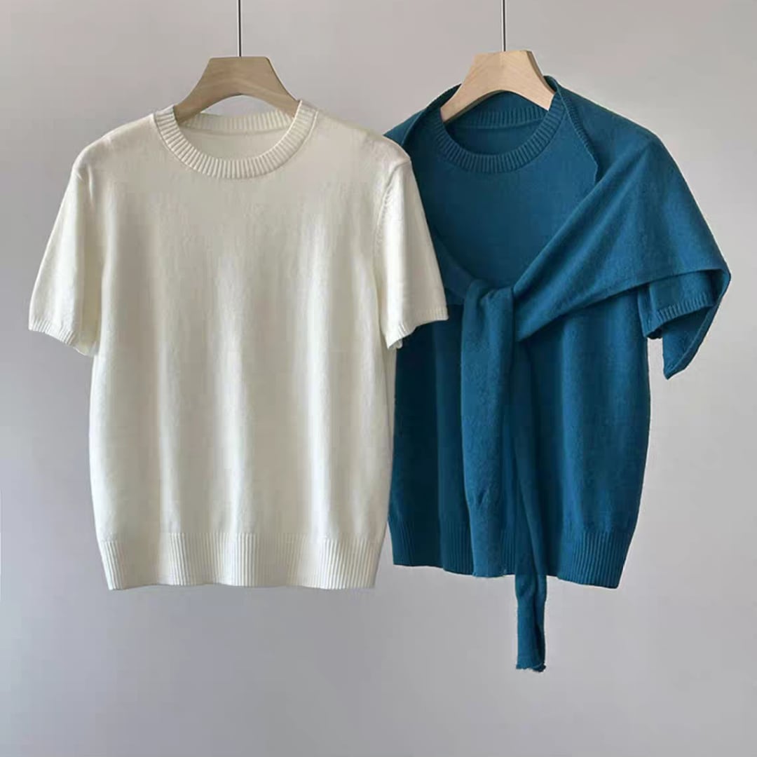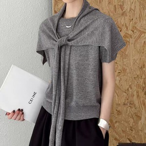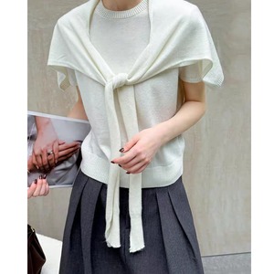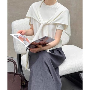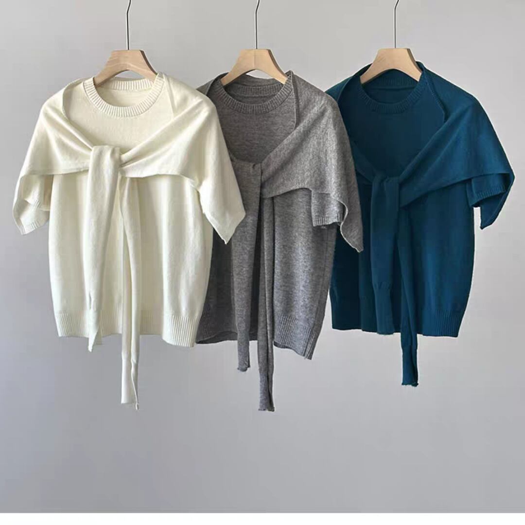 2点セット風半袖ニットトップス&肩掛け風カーディガン 0185