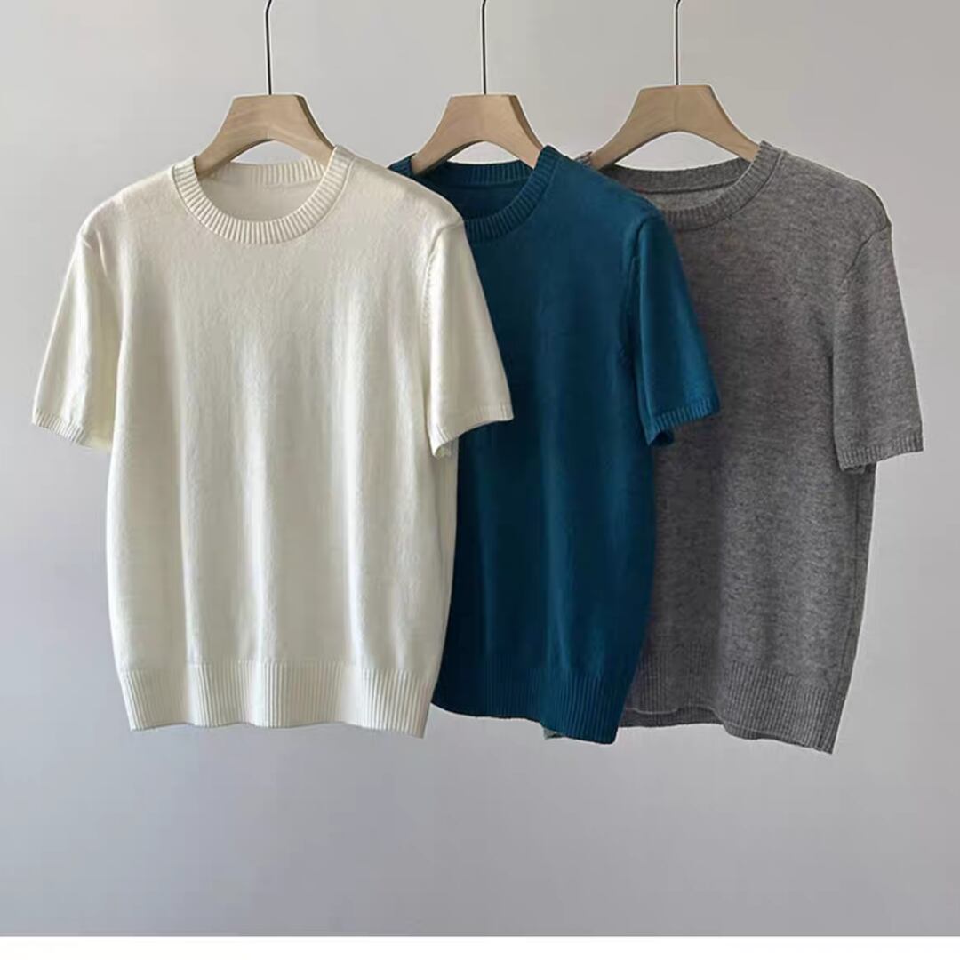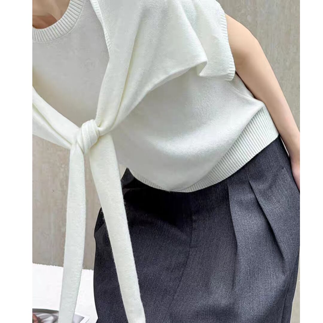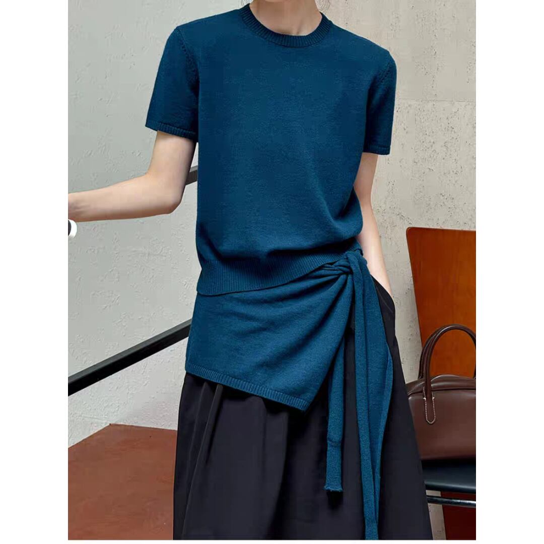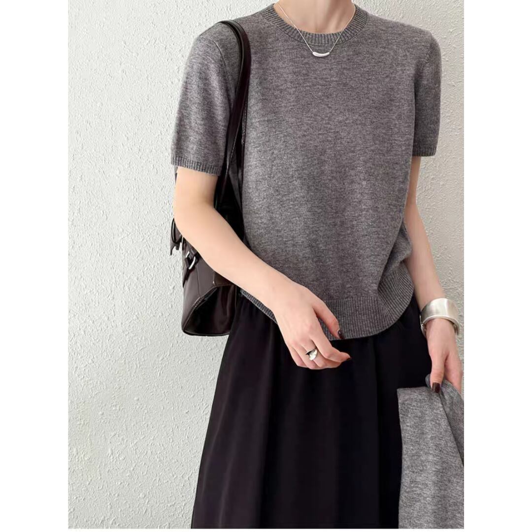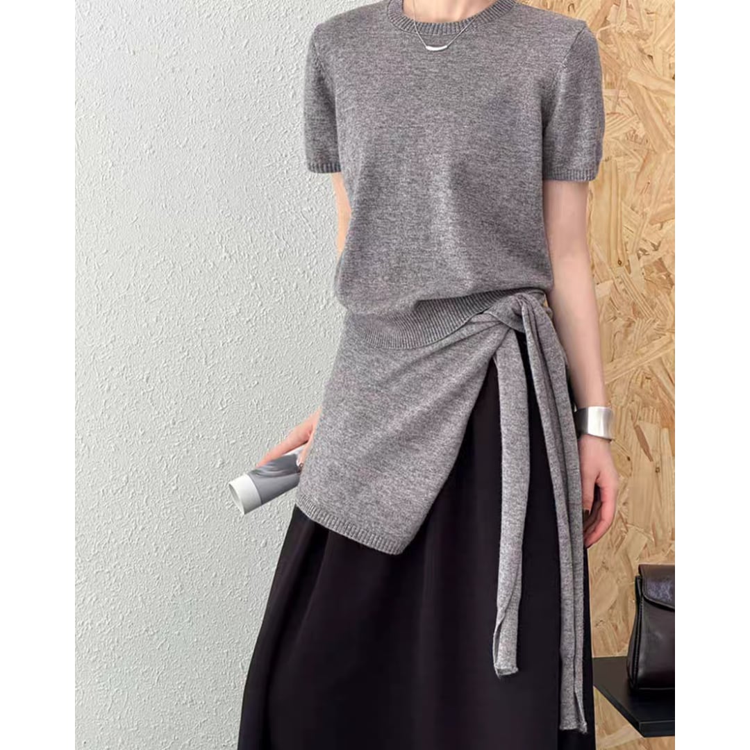 2点セット風半袖ニットトップス&肩掛け風カーディガン 0185