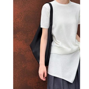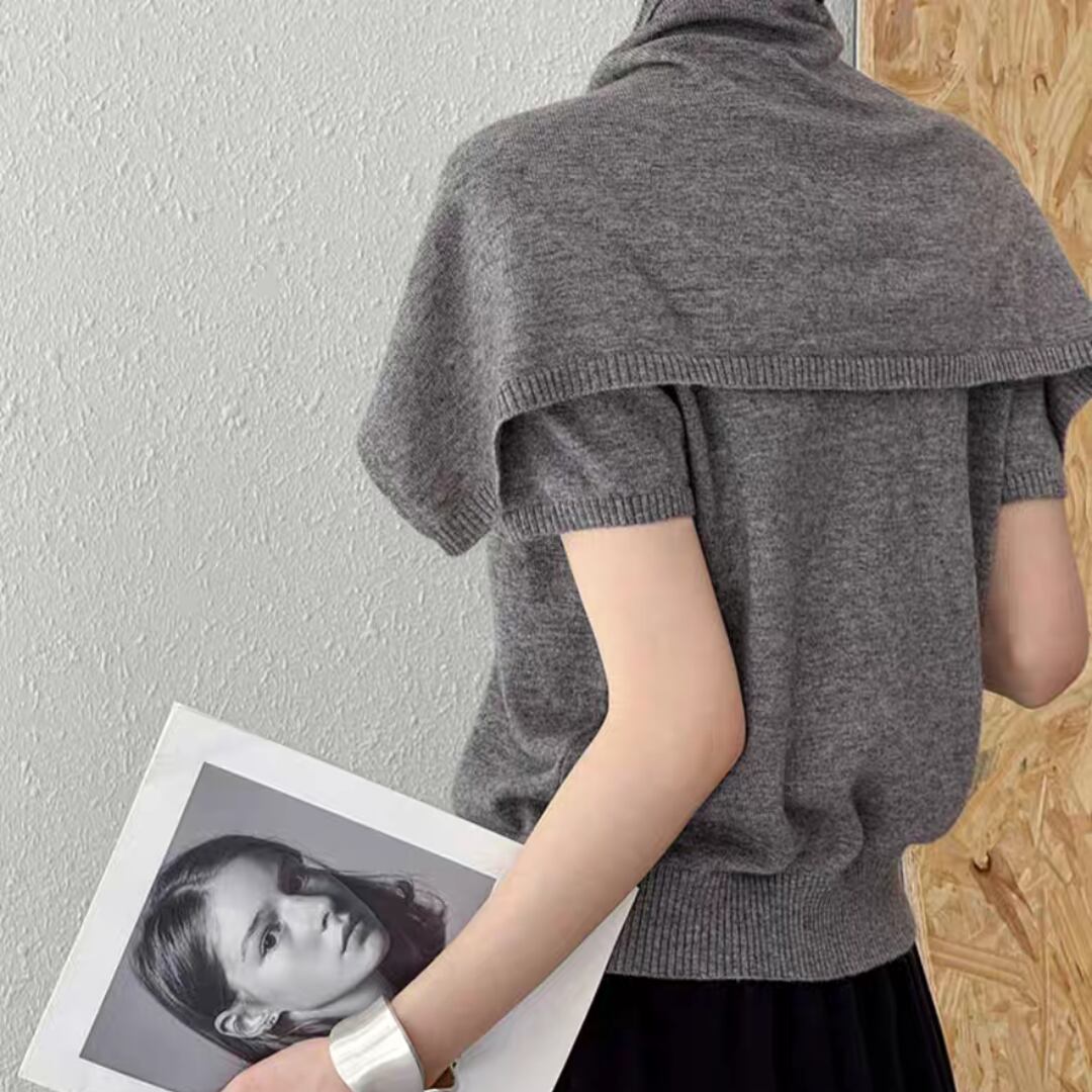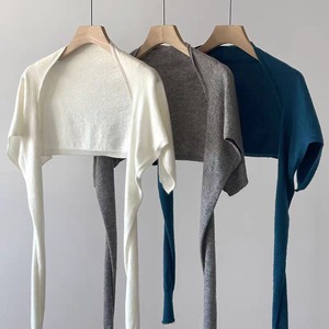 柔らかく暖かみのある半袖ニットと、肩掛け風に見えるカーディガンが一体化したデザイントップス。軽くて伸縮性があり、着心地も快適。シンプルながらも立体感のあるレイヤード風スタイルが、コーディネートにこなれ感をプラスします。パンツにもスカートにも合わせやすく、シーズンの変わり目に活躍する万能アイテムです。