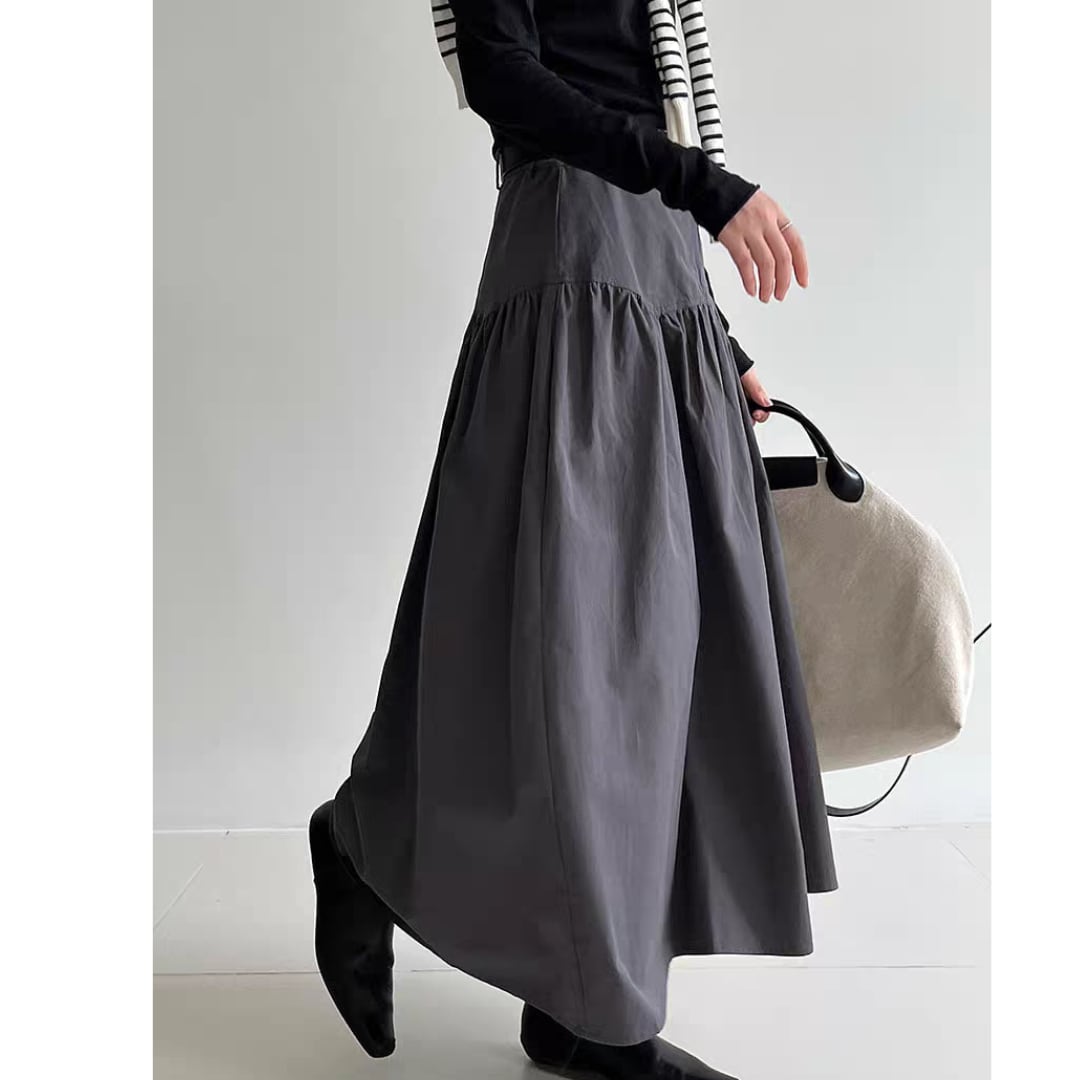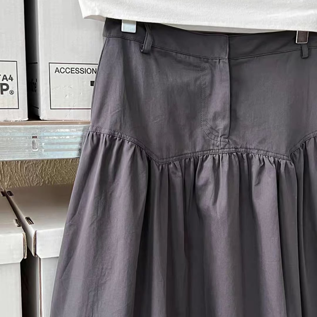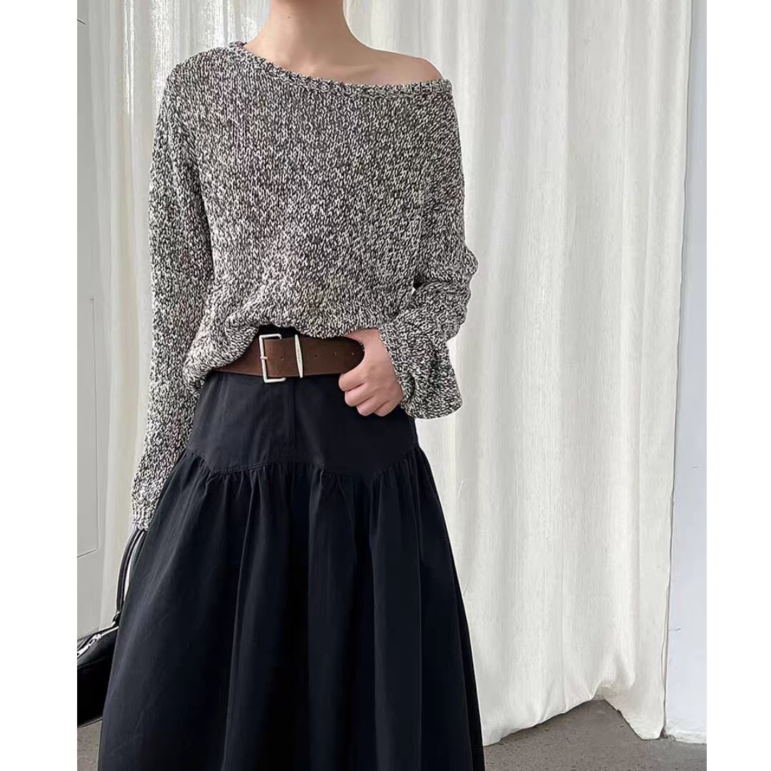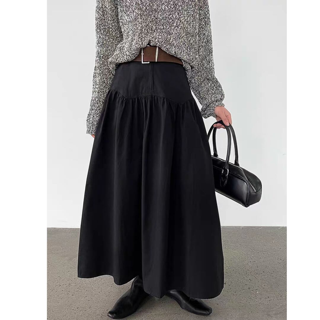 ウエストラインをすっきり見せつつ、動くたびに揺れる裾が女性らしい印象を演出。カジュアルからきれいめまで幅広く合わせやすく、季節を問わず活躍する一枚です。