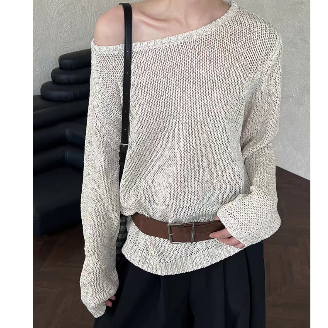 ざっくりとした編み地が軽やかで、シーズン問わず活躍します。肩を落として着られるゆったりシルエットで、抜け感のあるスタイリングに。付属のベルトでウエストマークすれば、メリハリのあるコーディネートも楽しめます。デニムやスカート、ワイドパンツまで幅広く合わせやすい万能アイテムです。