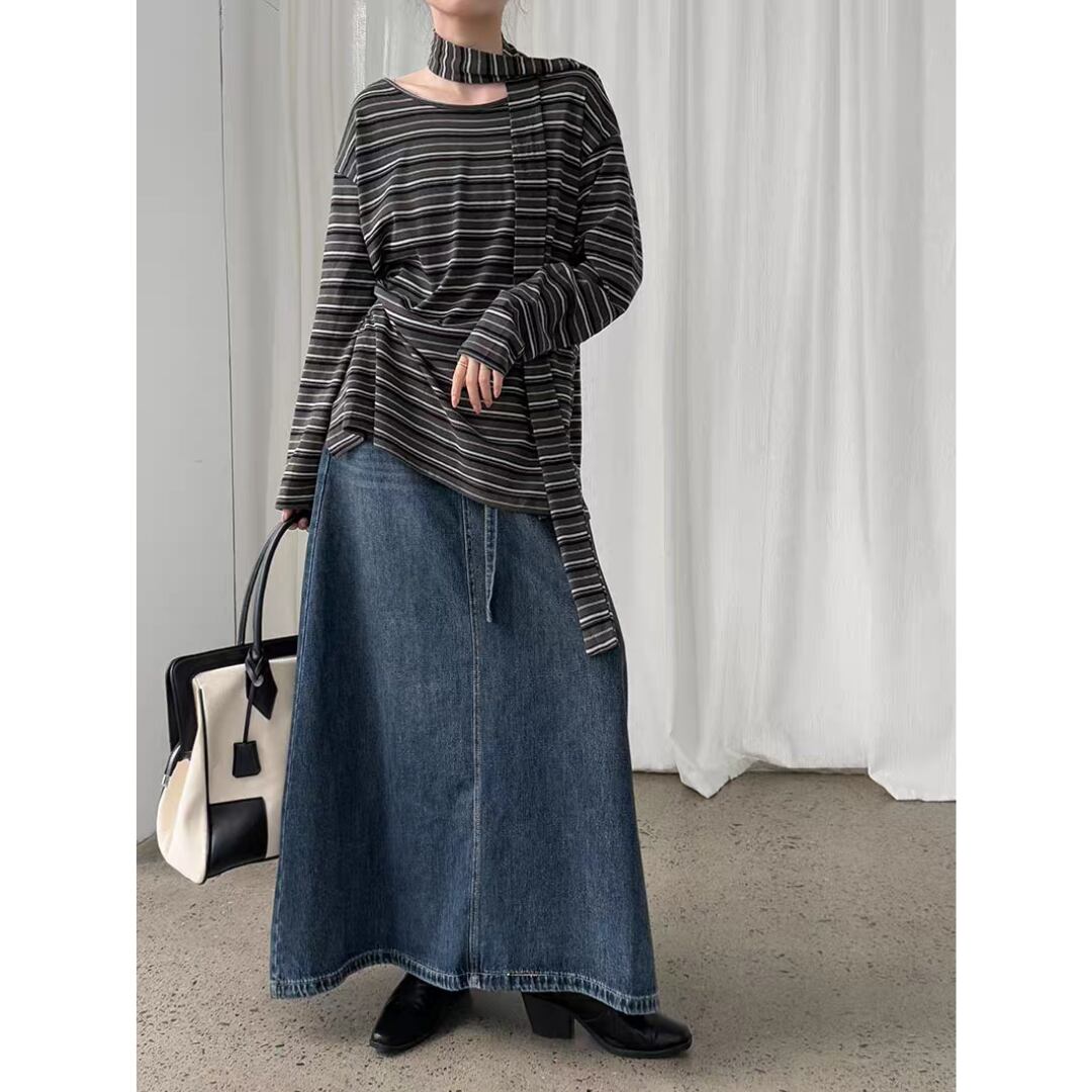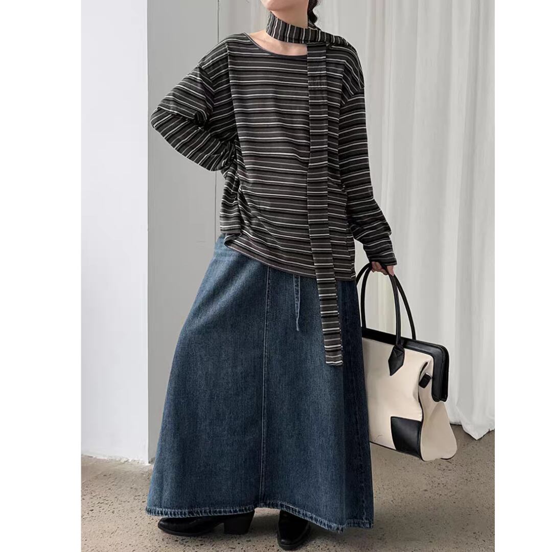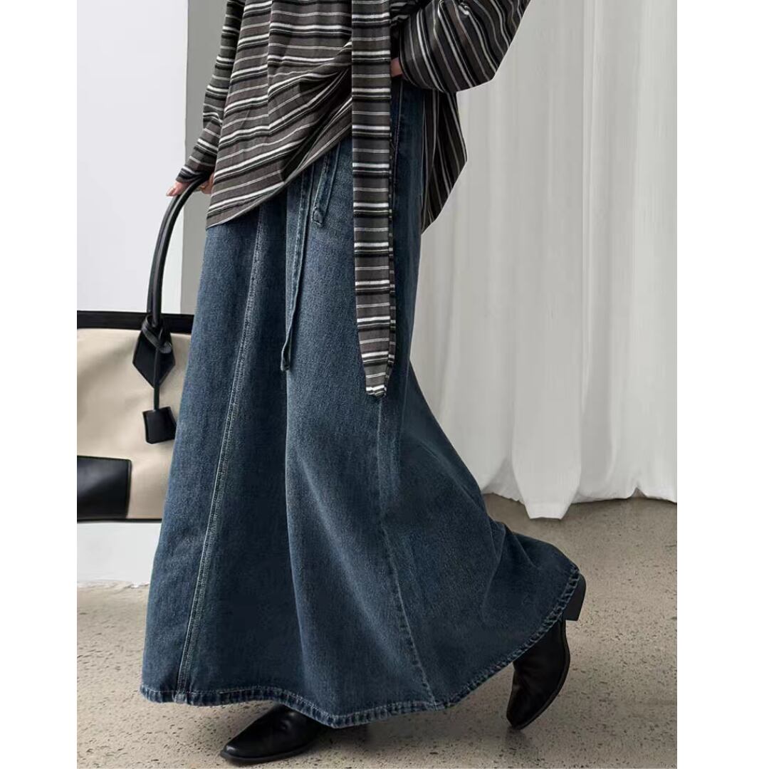 フロントの切り替えデザインとドローストリングが、カジュアルな中にも女性らしい抜け感をプラスします。足首まで届くロング丈で体型カバーにも◎。スニーカーからブーツまで幅広く合わせやすく、オールシーズン活躍する1枚です。