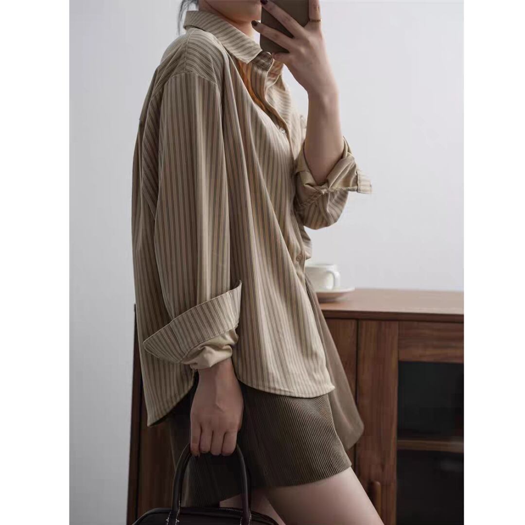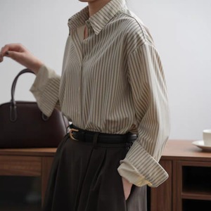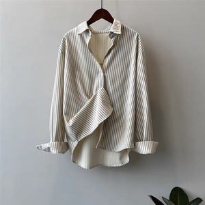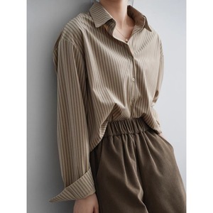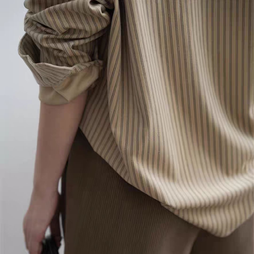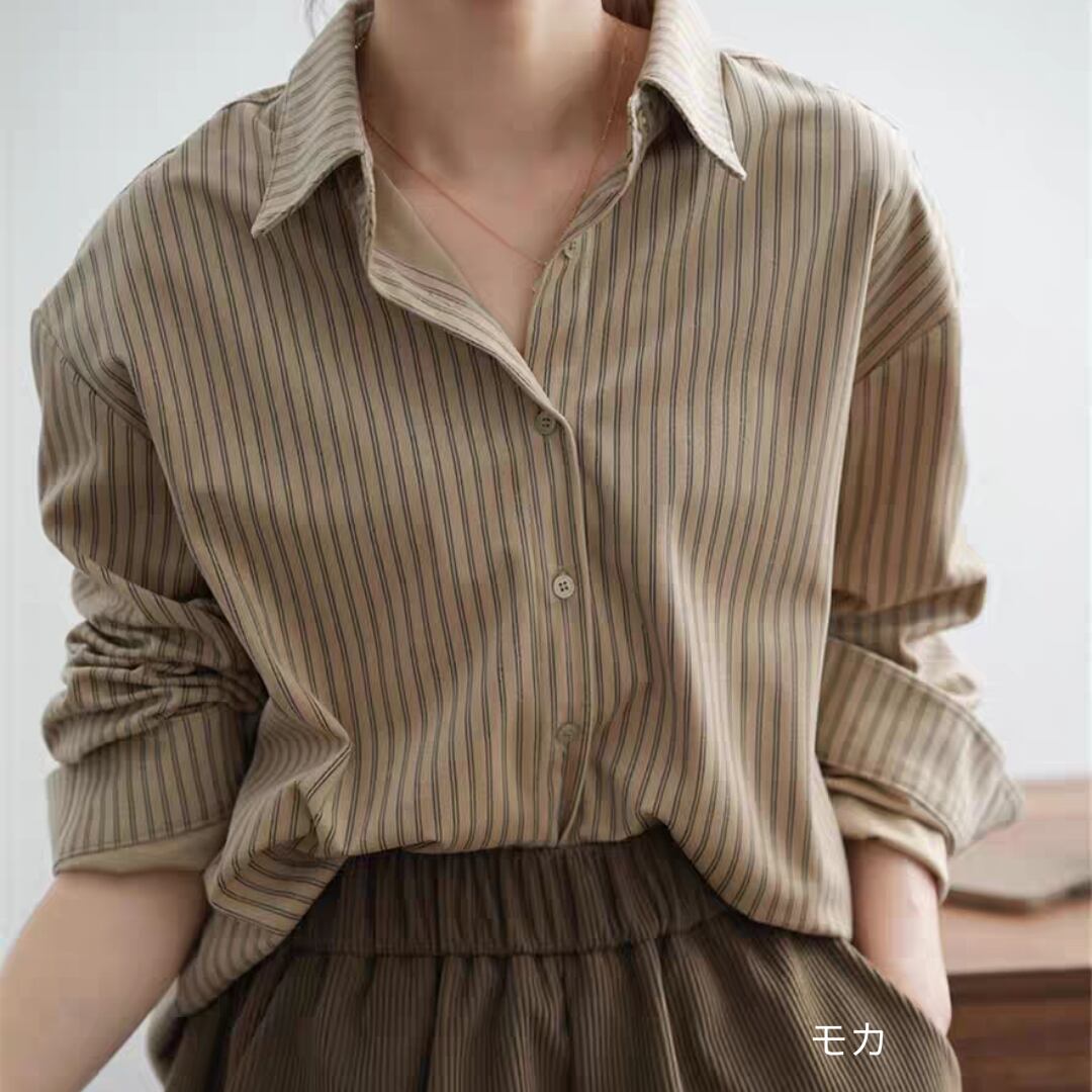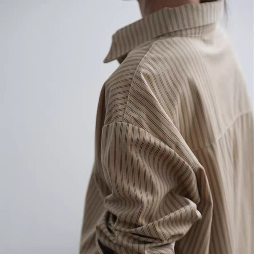 軽やかなポリエステル素材を使用した、洗練ムード漂うストライプ柄シャツ。ゆったりとしたシルエットと落ち感のある生地が、動くたびに女性らしい抜け感を演出します。