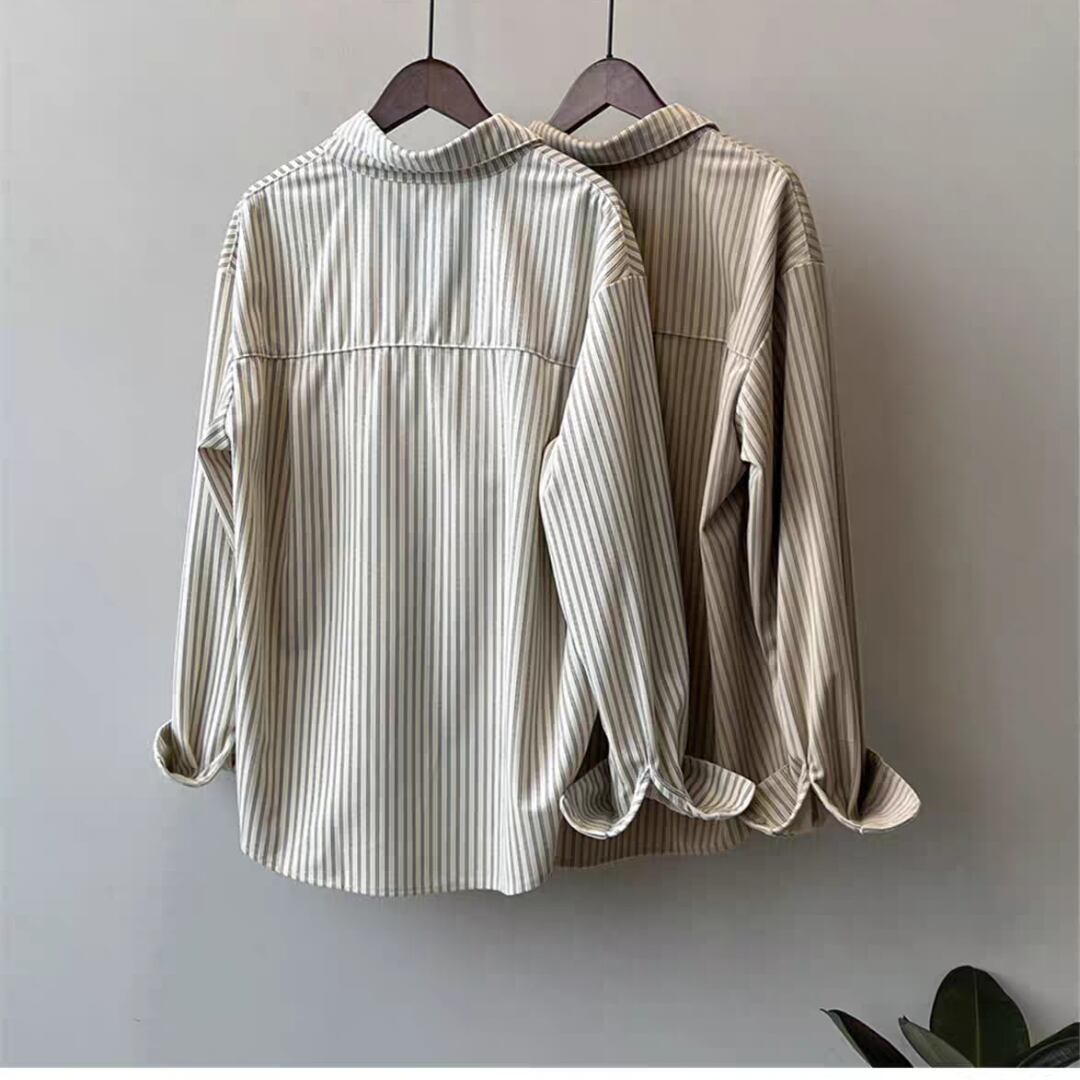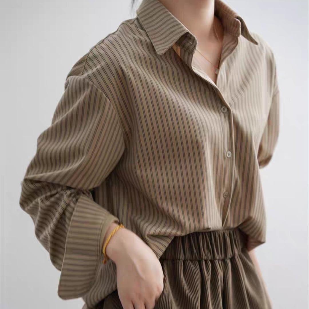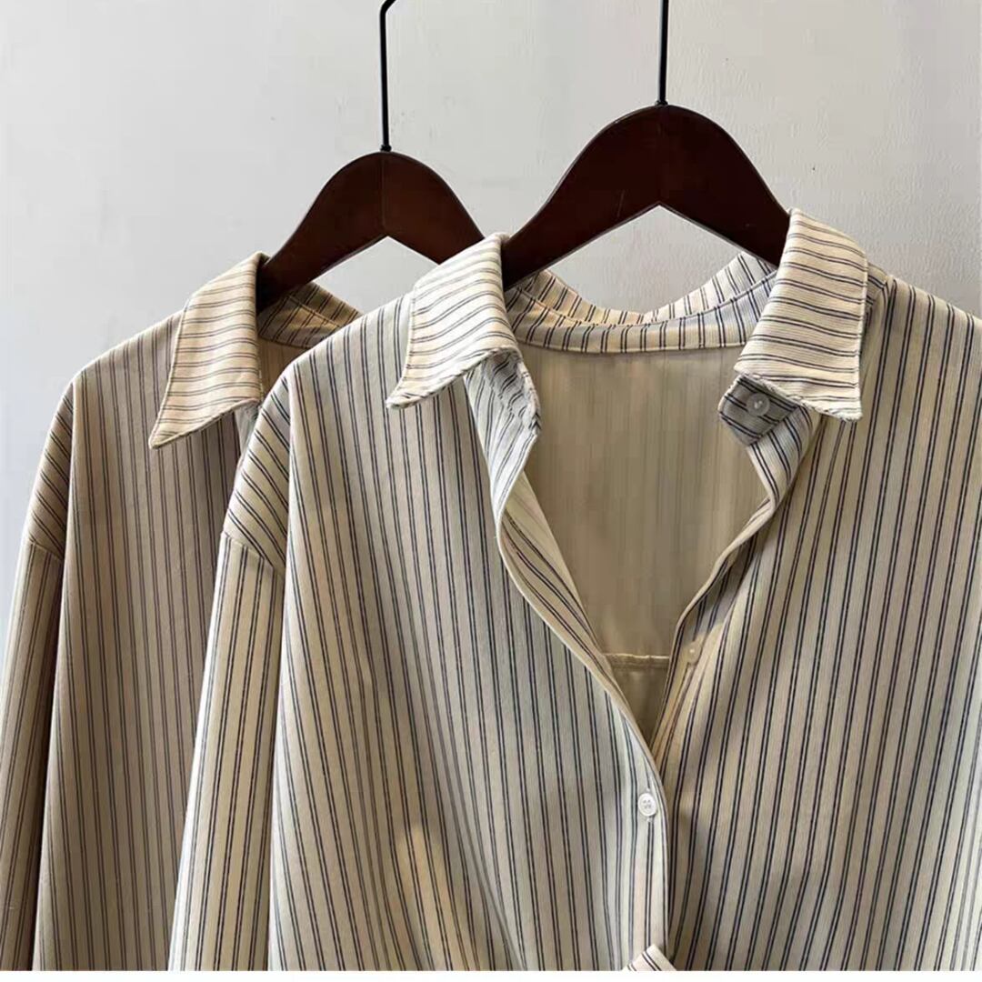 軽やかなポリエステル素材を使用した、洗練ムード漂うストライプ柄シャツ。ゆったりとしたシルエットと落ち感のある生地が、動くたびに女性らしい抜け感を演出します。