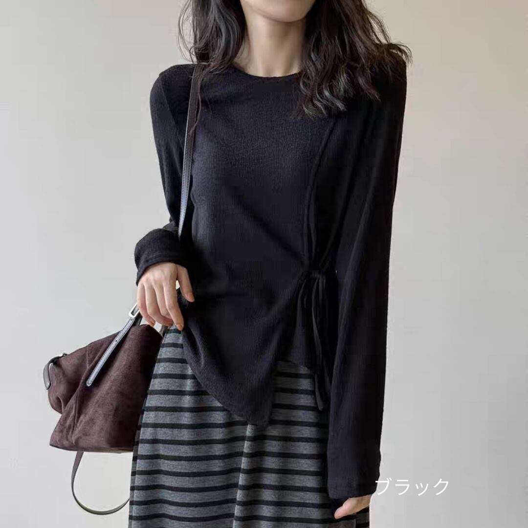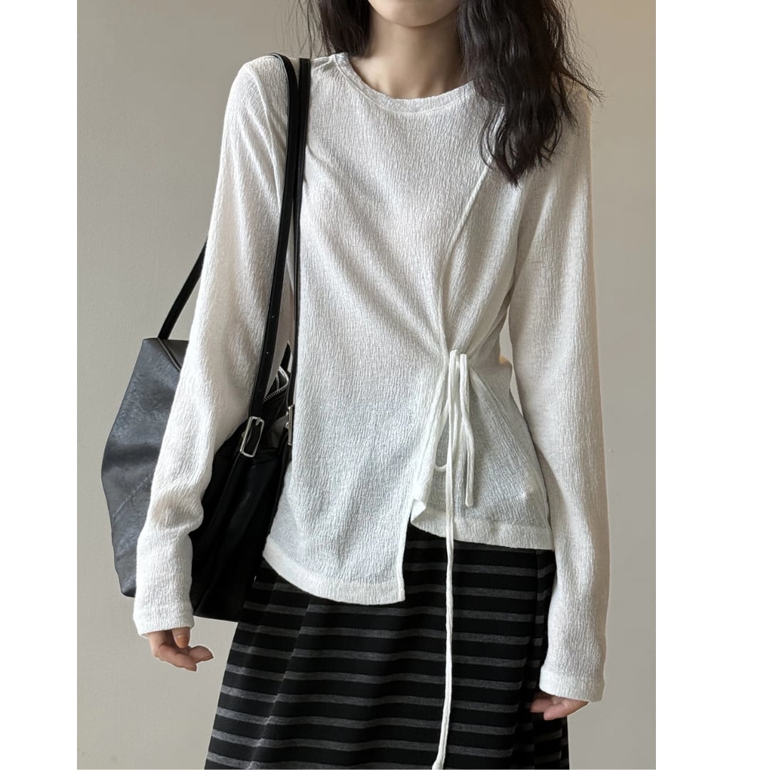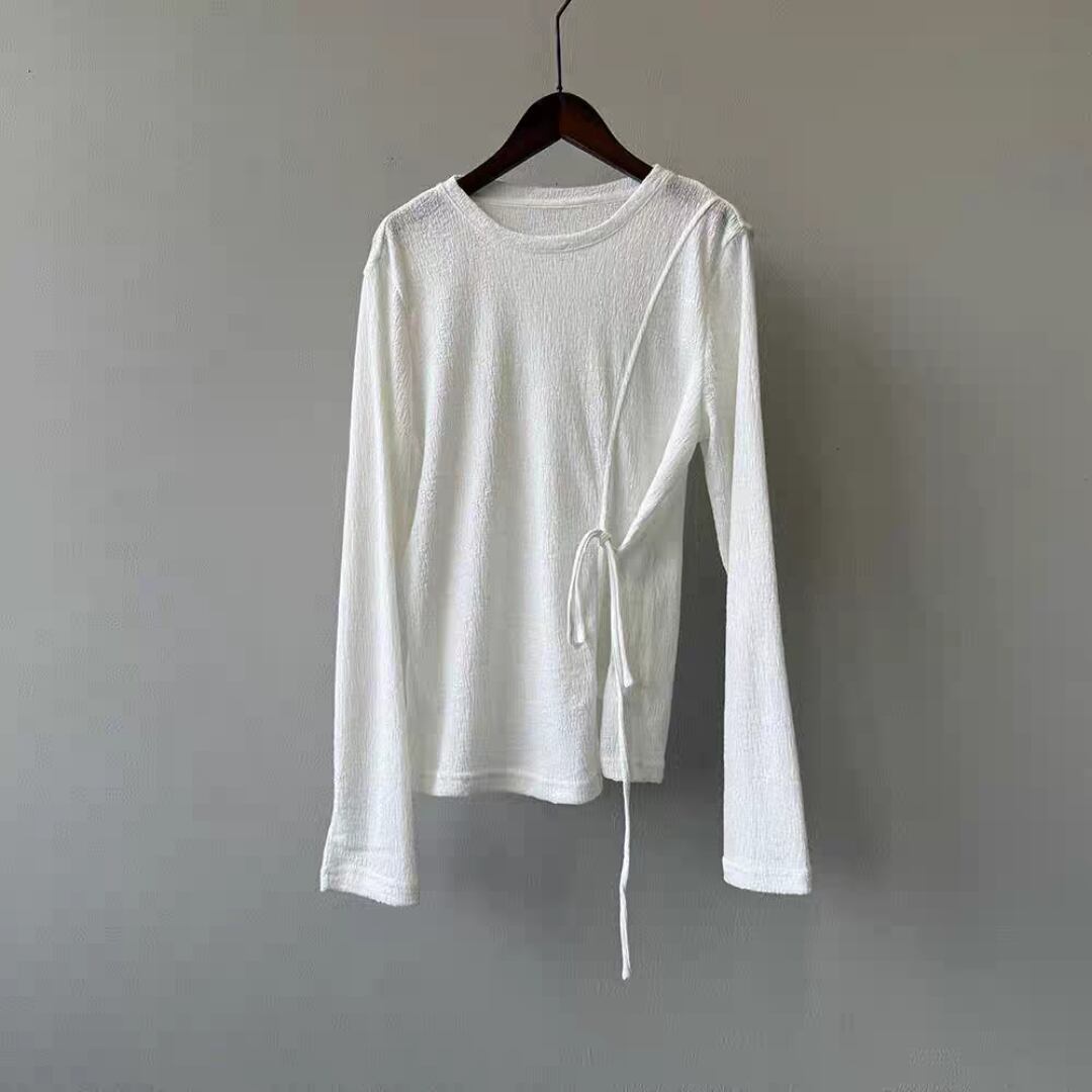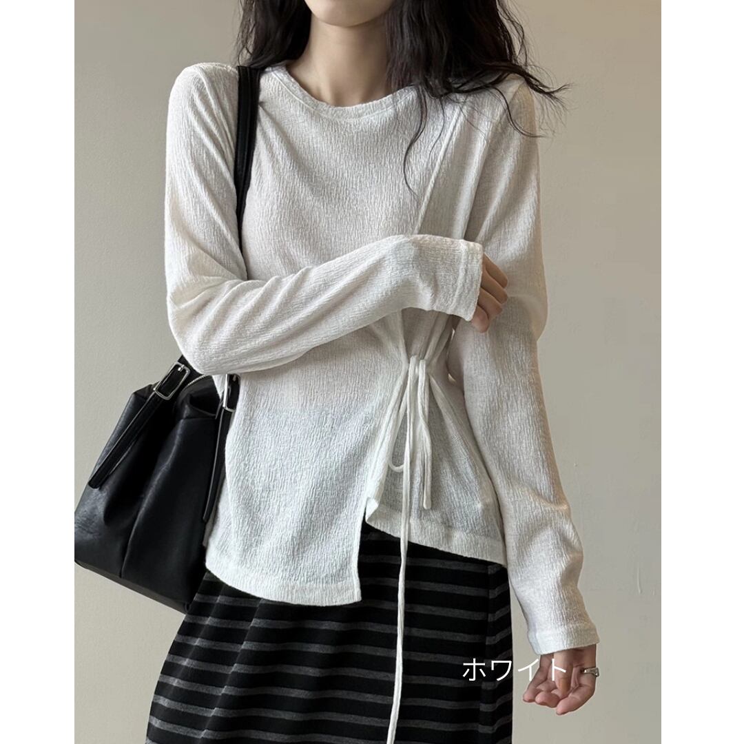 サイドリボンシアーロングスリーブトップス 0195