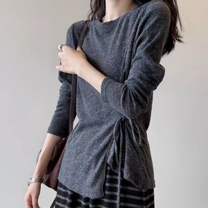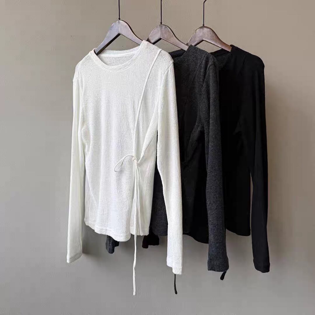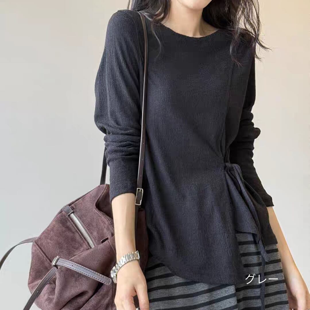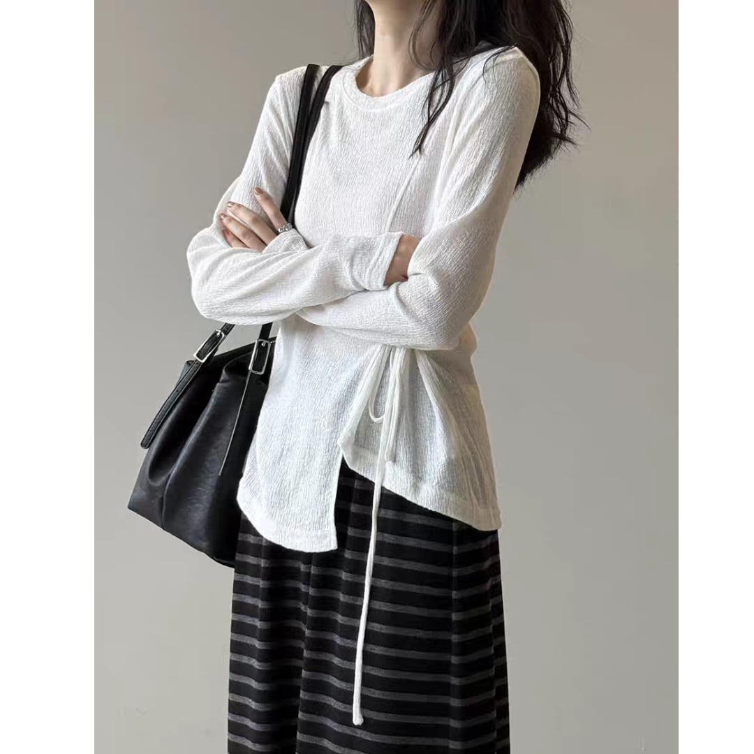 サイドリボンシアーロングスリーブトップス 0195