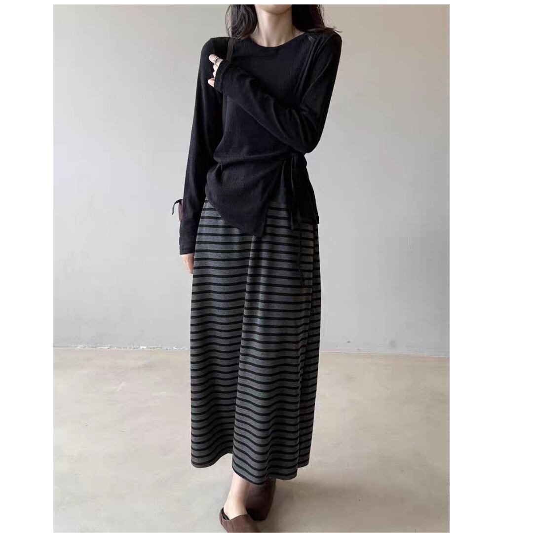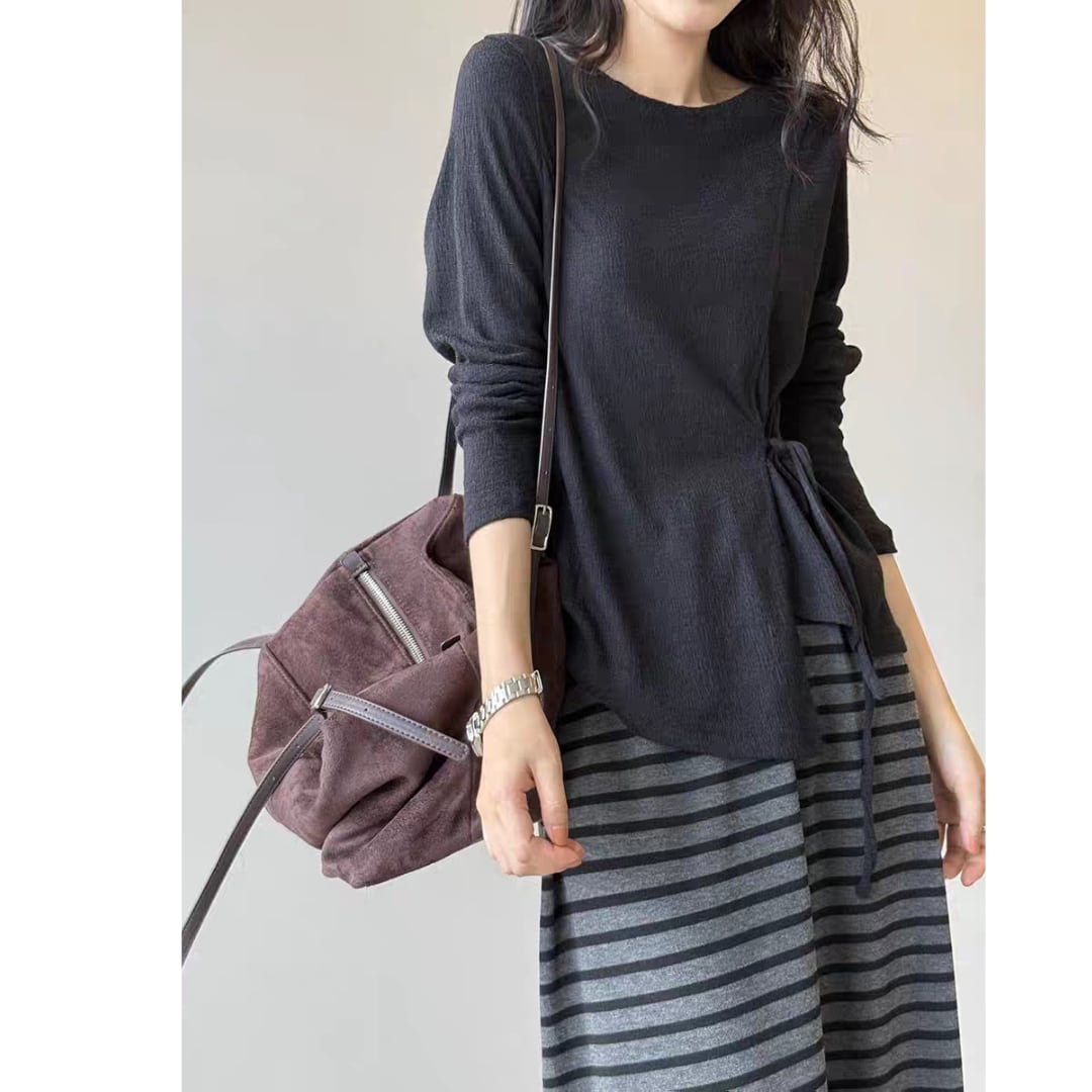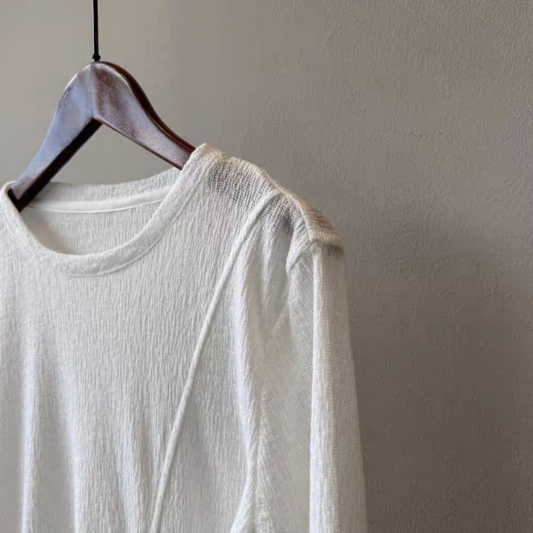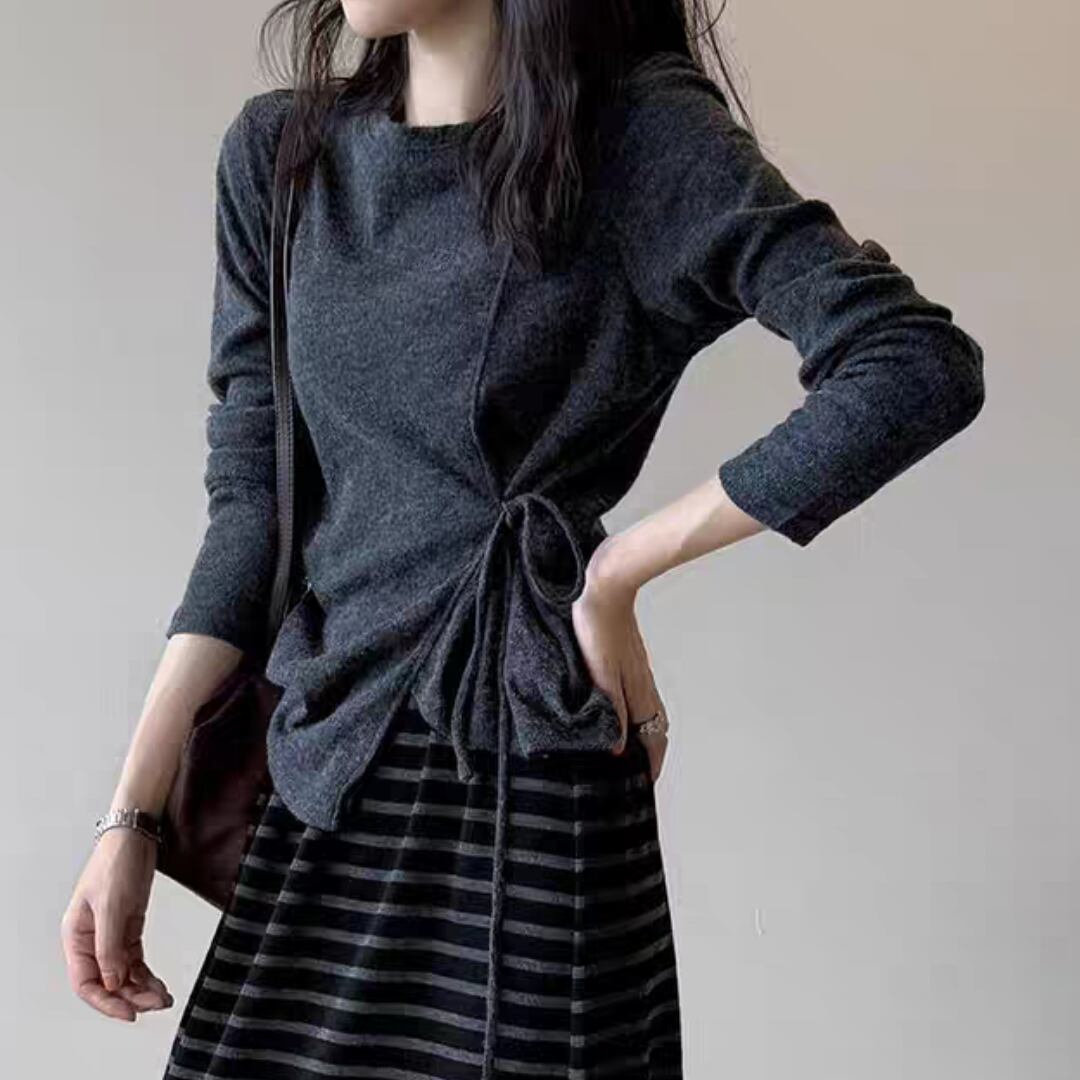 サイドリボンシアーロングスリーブトップス 0195