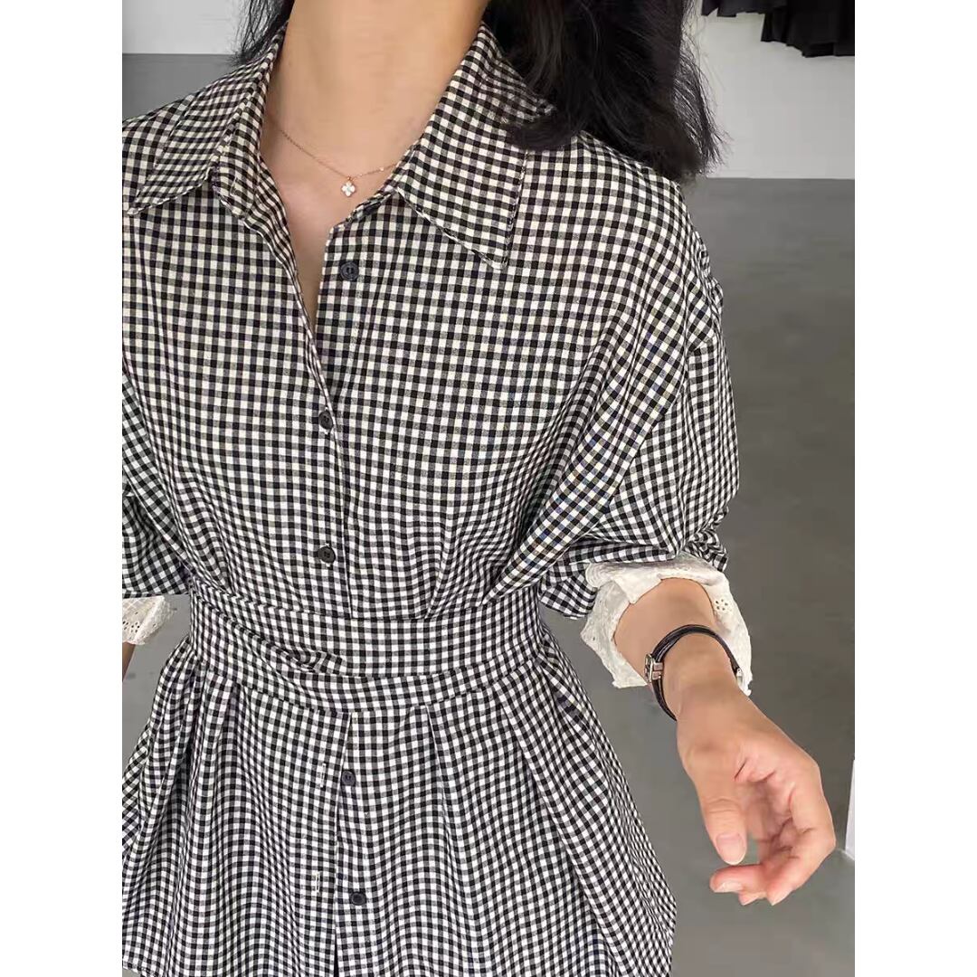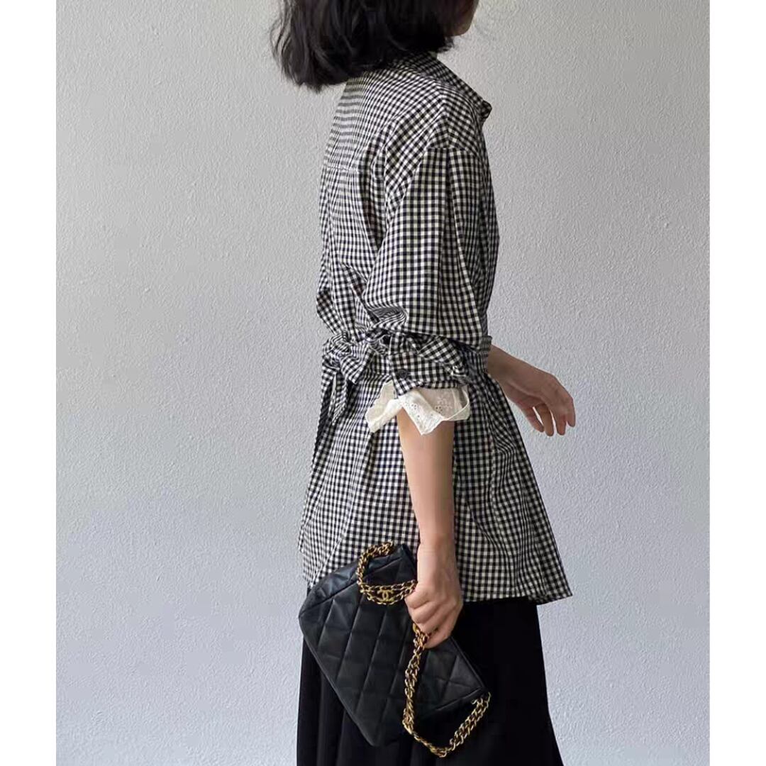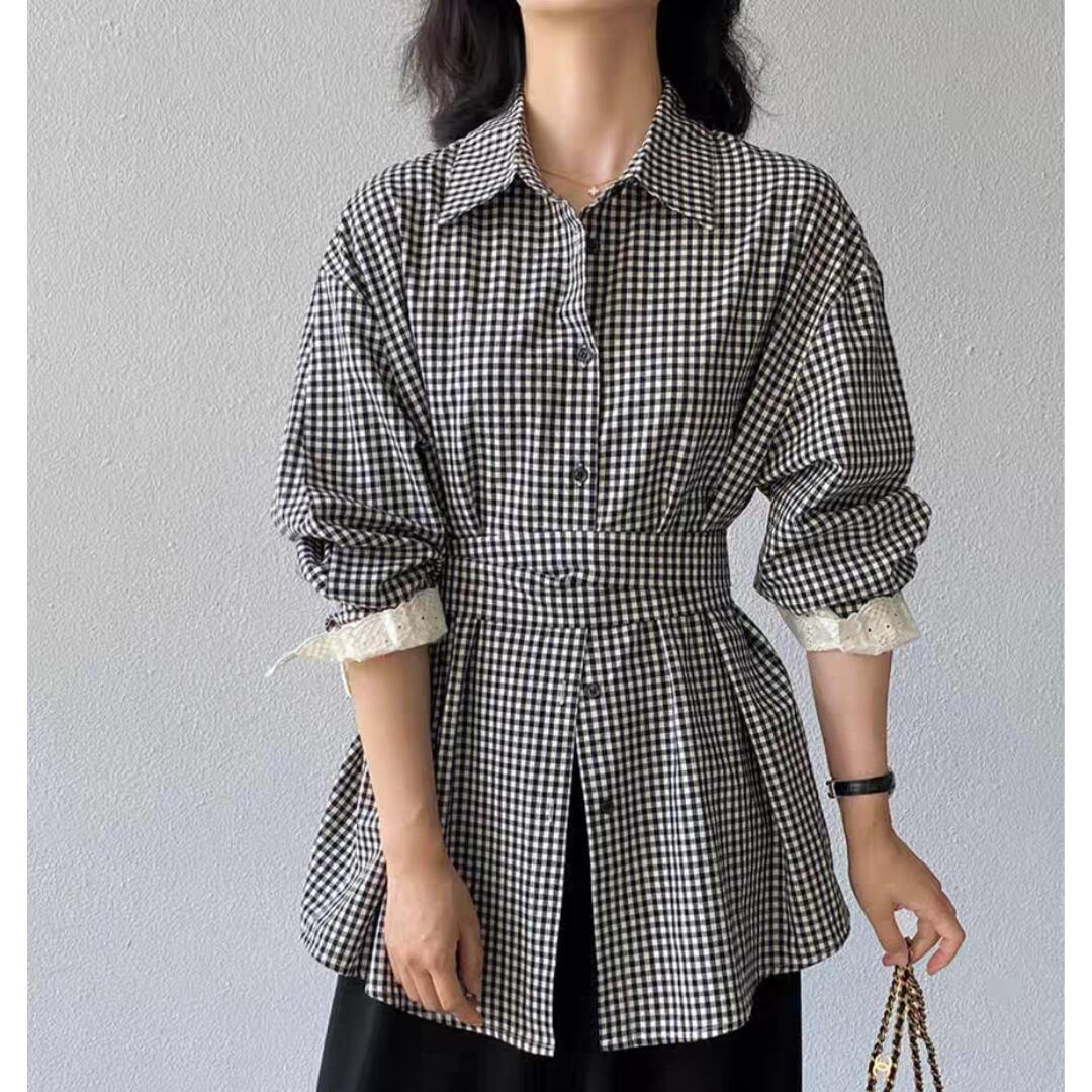 ギンガムチェック ウエストリボンシャツ 0196