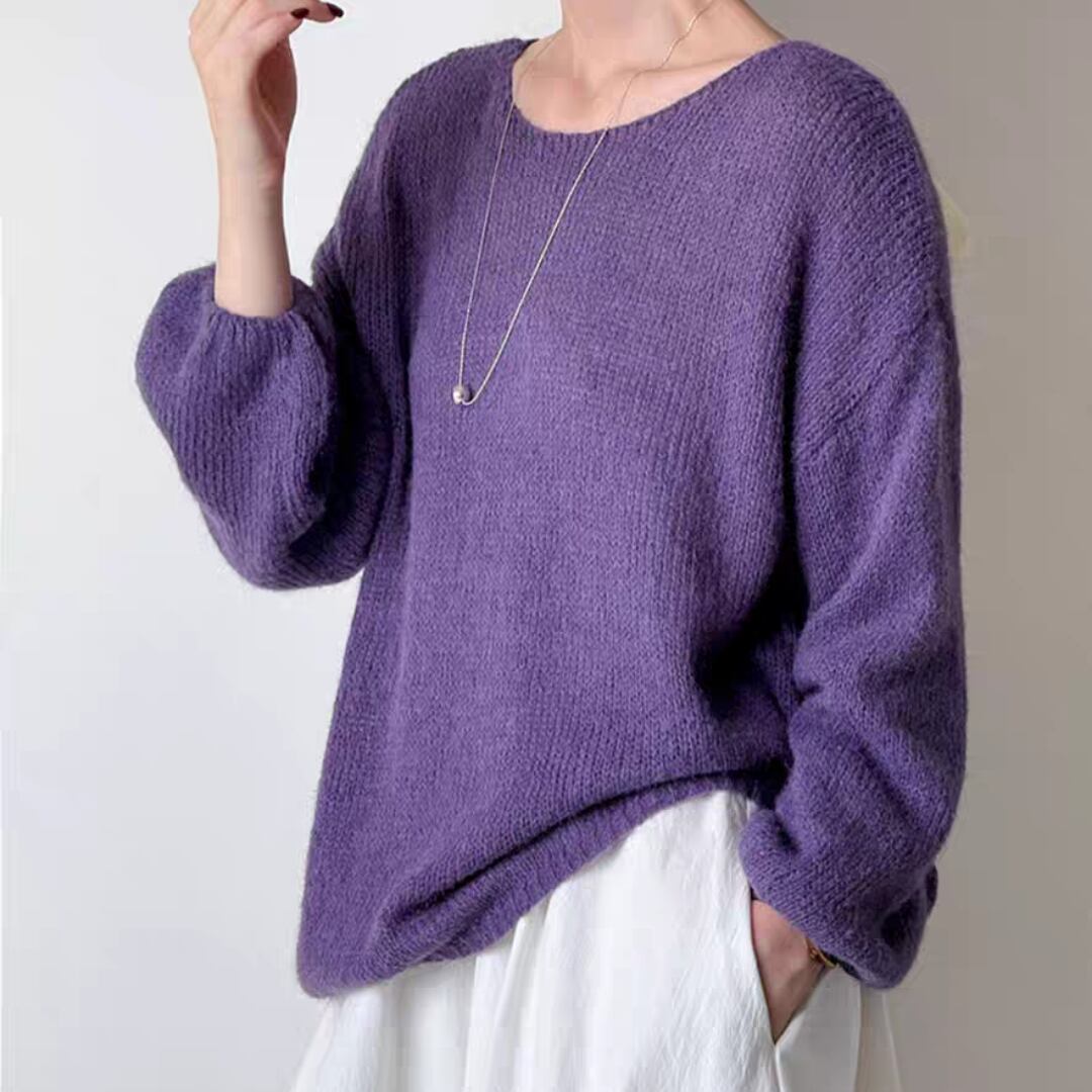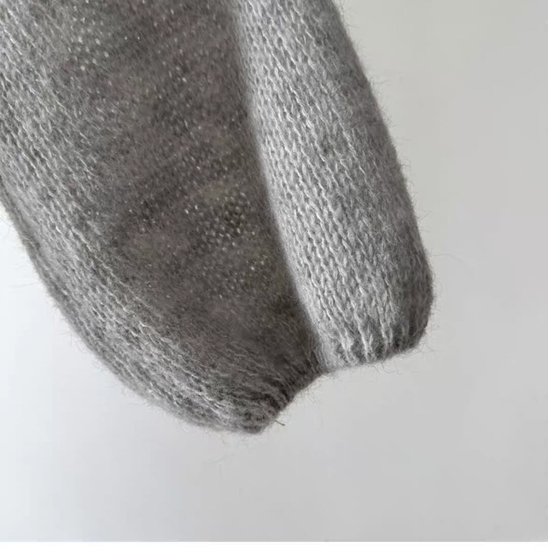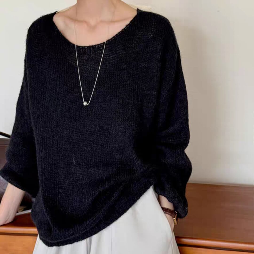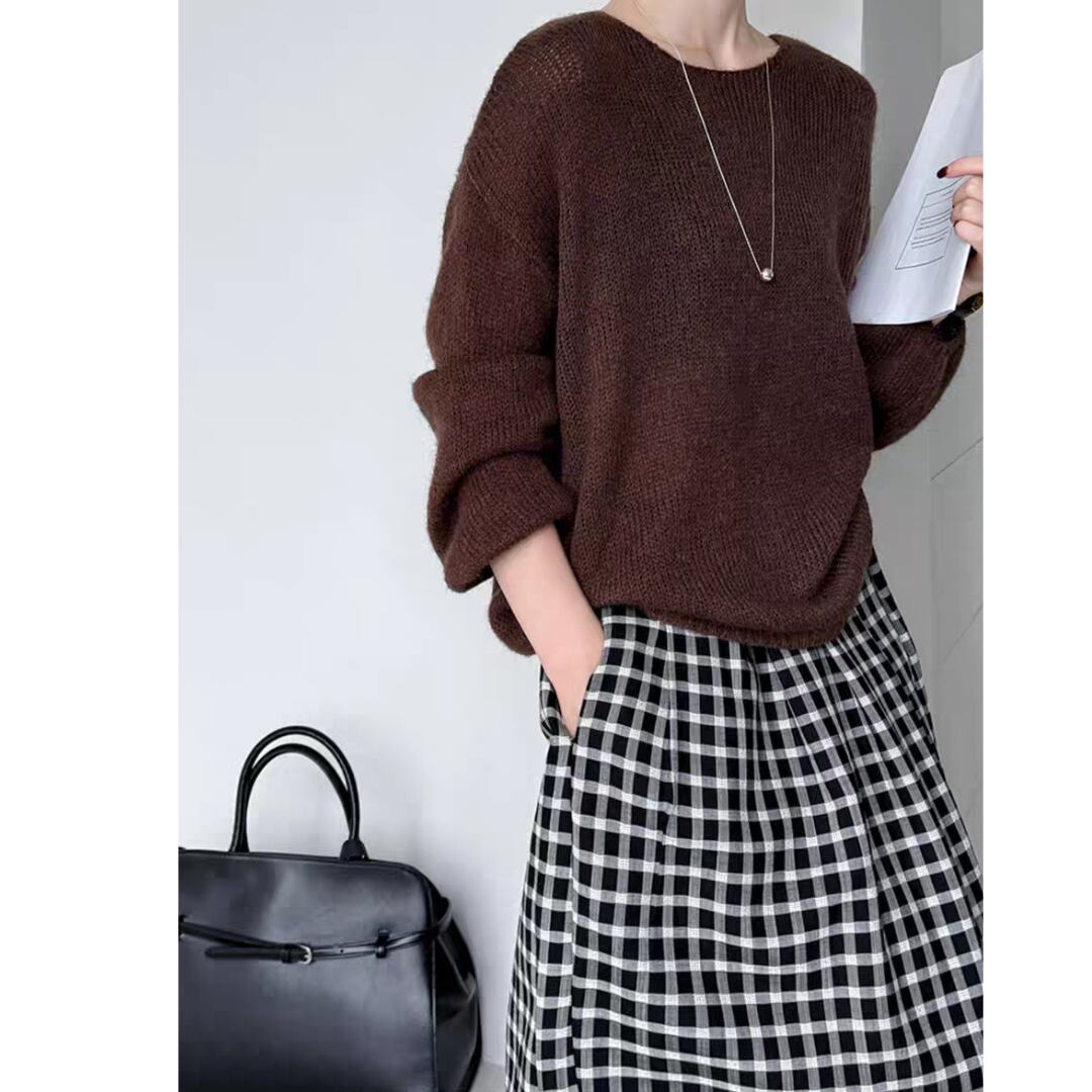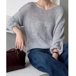 背中にあしらったサテンリボンが女性らしさを引き立て、後ろ姿まで印象的に演出します。ゆったりとしたシルエットで体型カバーも叶い、カジュアルにもフェミニンにも着回せる一枚です。