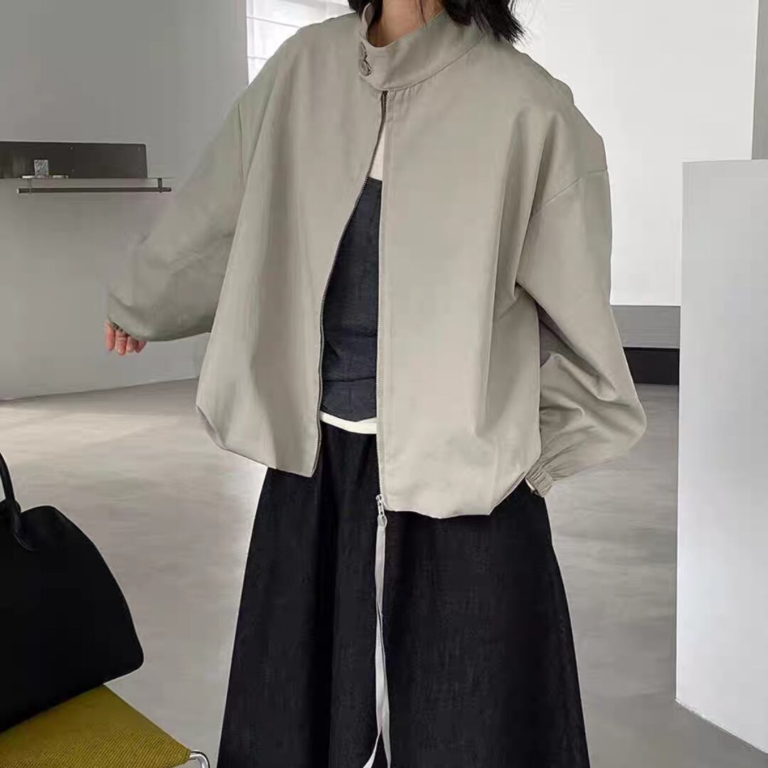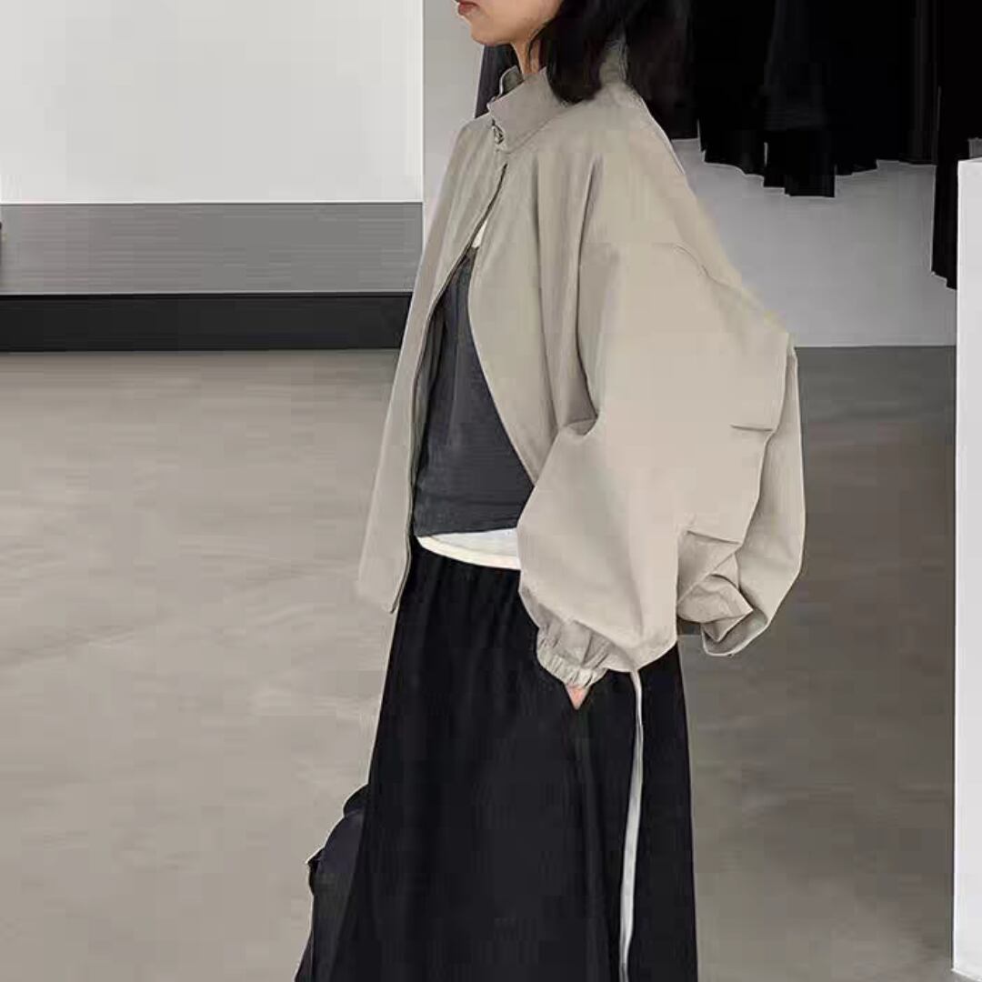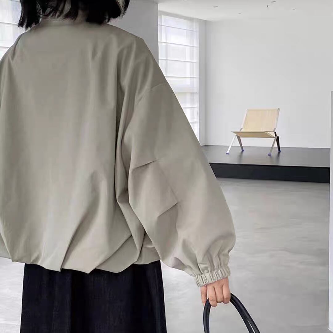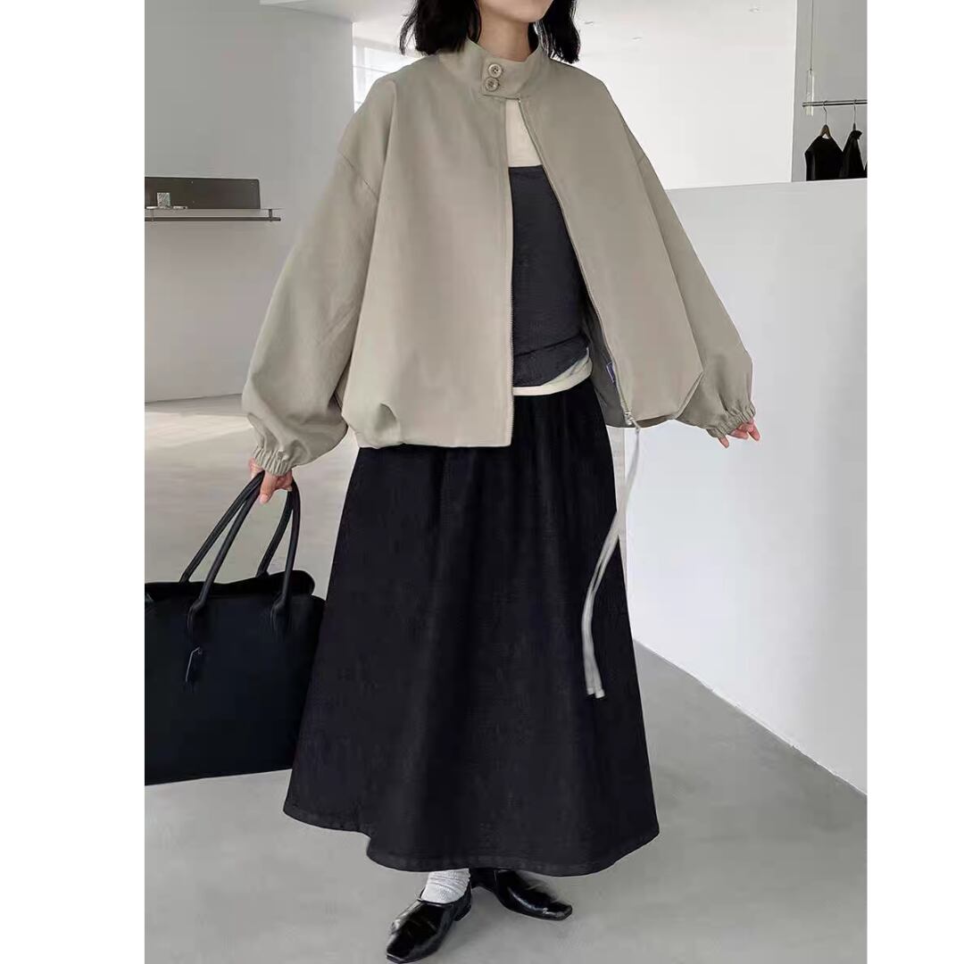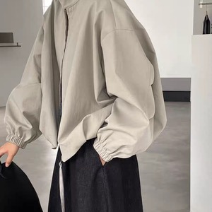 スタンドカラーとフロントジップがすっきりとした印象を与えつつ、ボリュームスリーブが大人の抜け感を演出します。ゆったりとしたシルエットで羽織るだけでこなれた雰囲気に。パンツにもスカートにも合わせやすく、デイリーからお出かけまで幅広く活躍する一枚です。