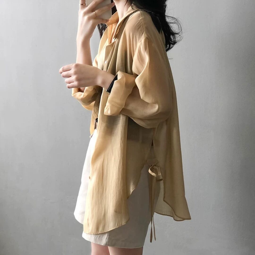 シンプルなデザインながらもニュアンスカラーが大人の上品さを引き立て、パンツやスカートと合わせて幅広いコーディネートに活躍します。羽織りとしても使える万能アイテムです。