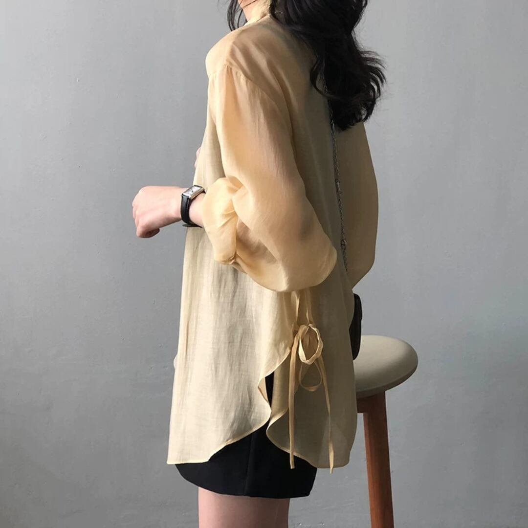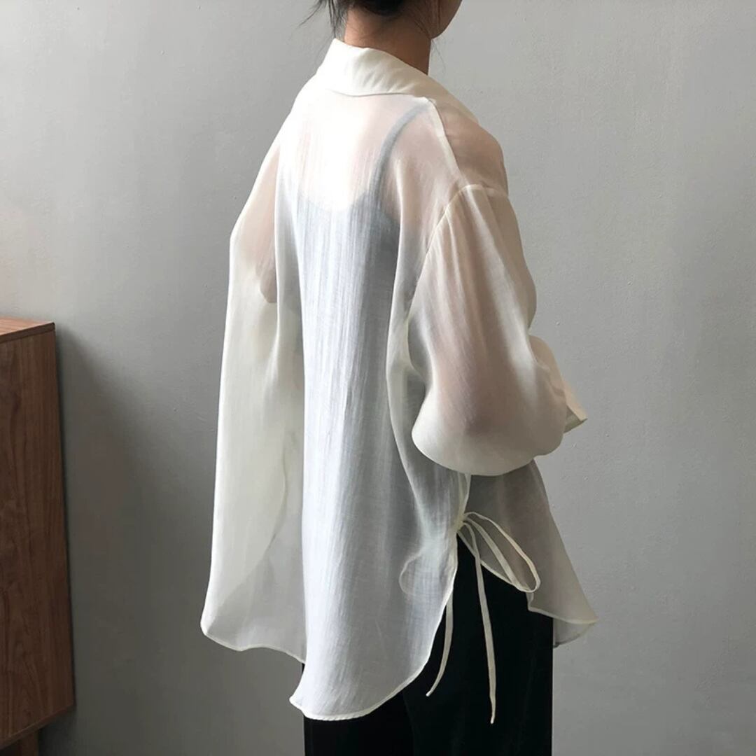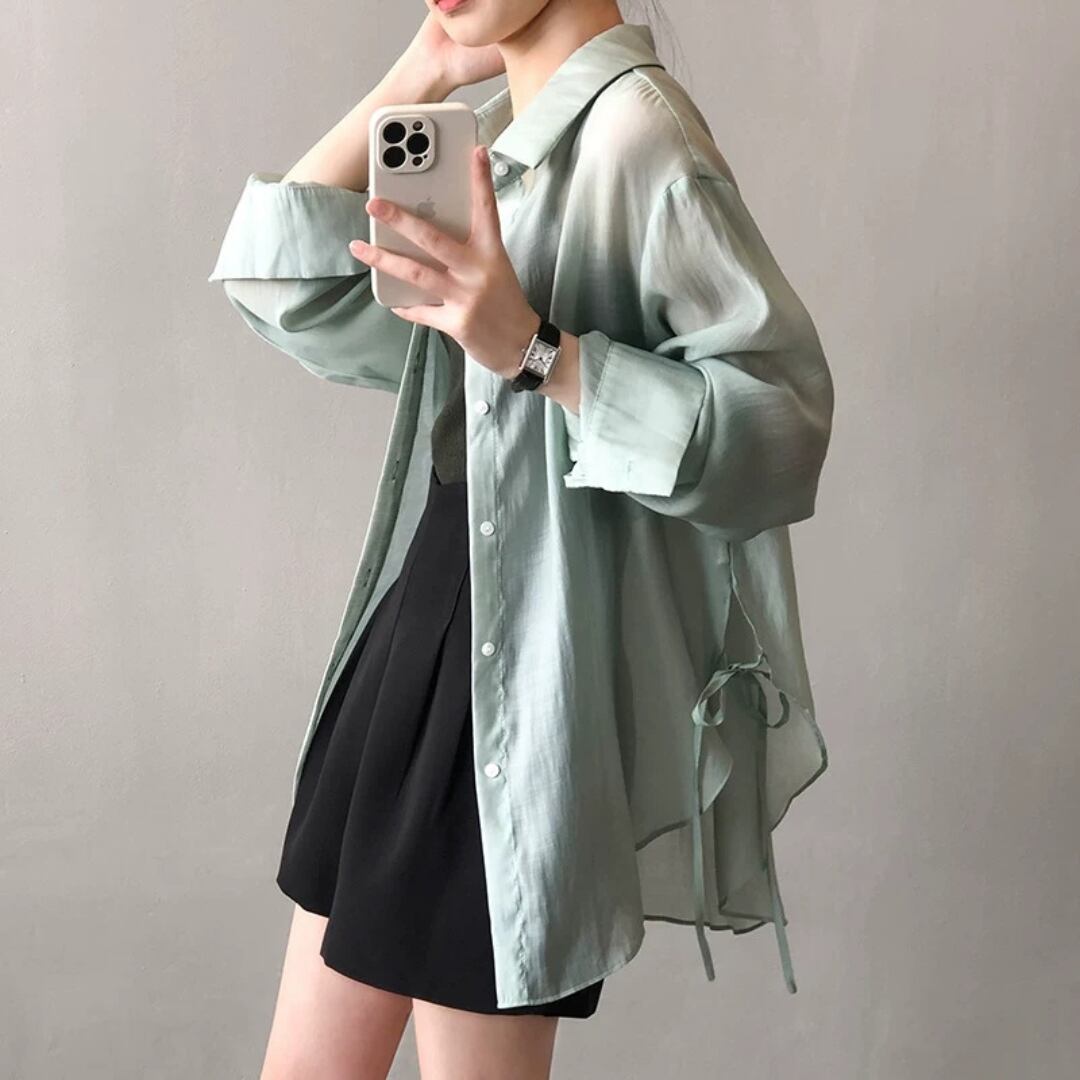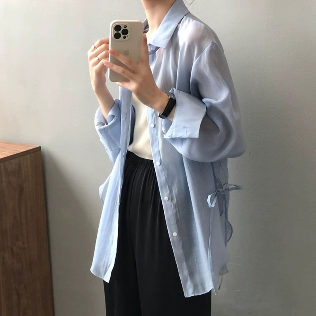 ゆったりとしたシルエットとサイドのリボンデザインが女性らしい抜け感を演出。