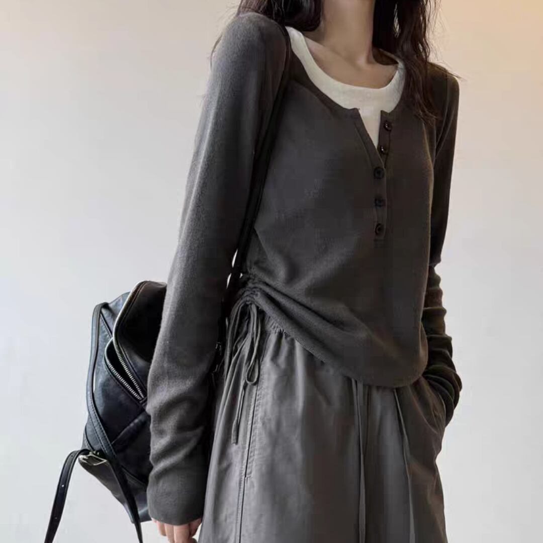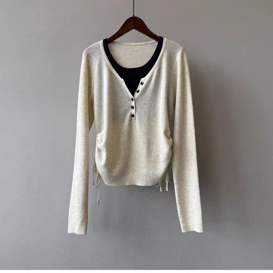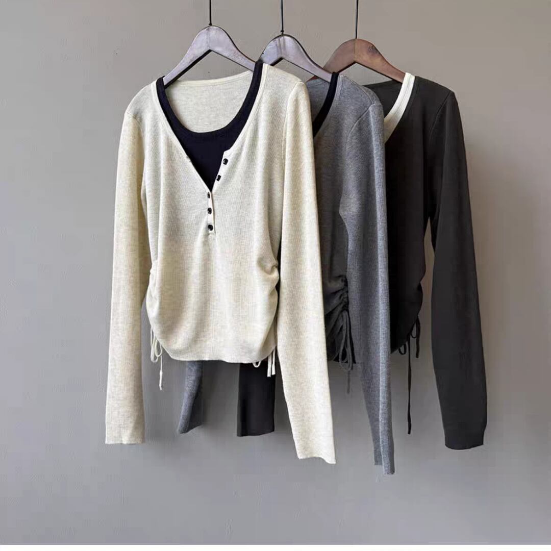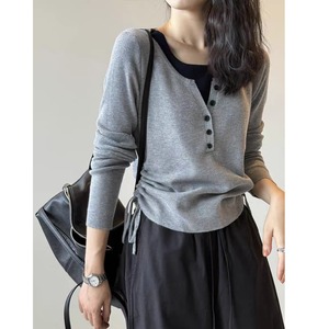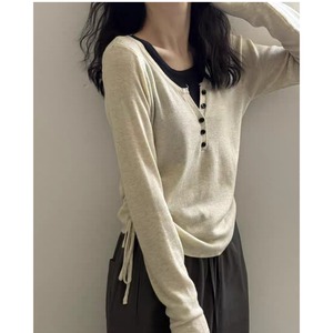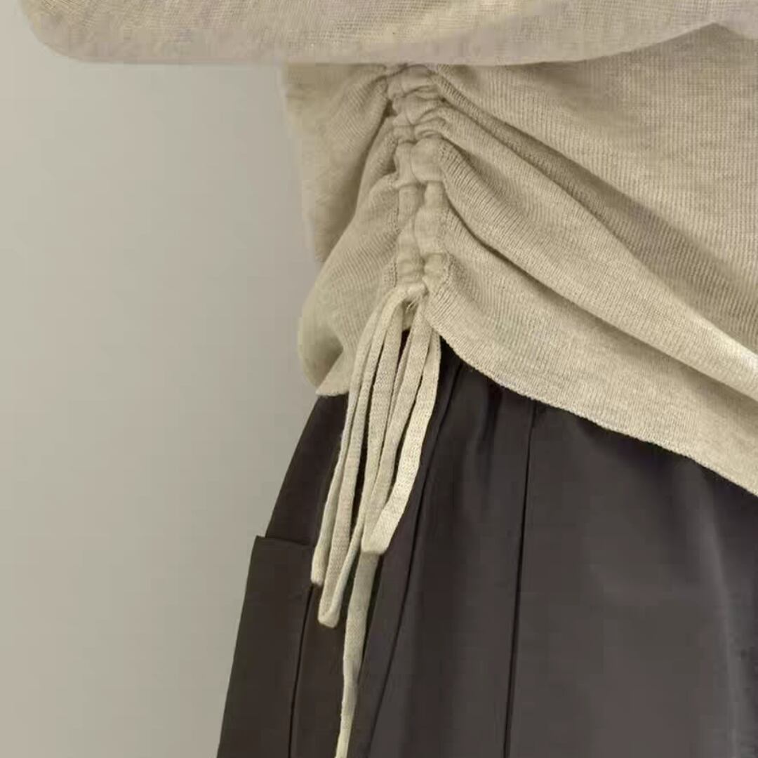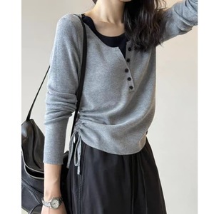サイドドローストリング ヘンリーネックニットトップス 0208
