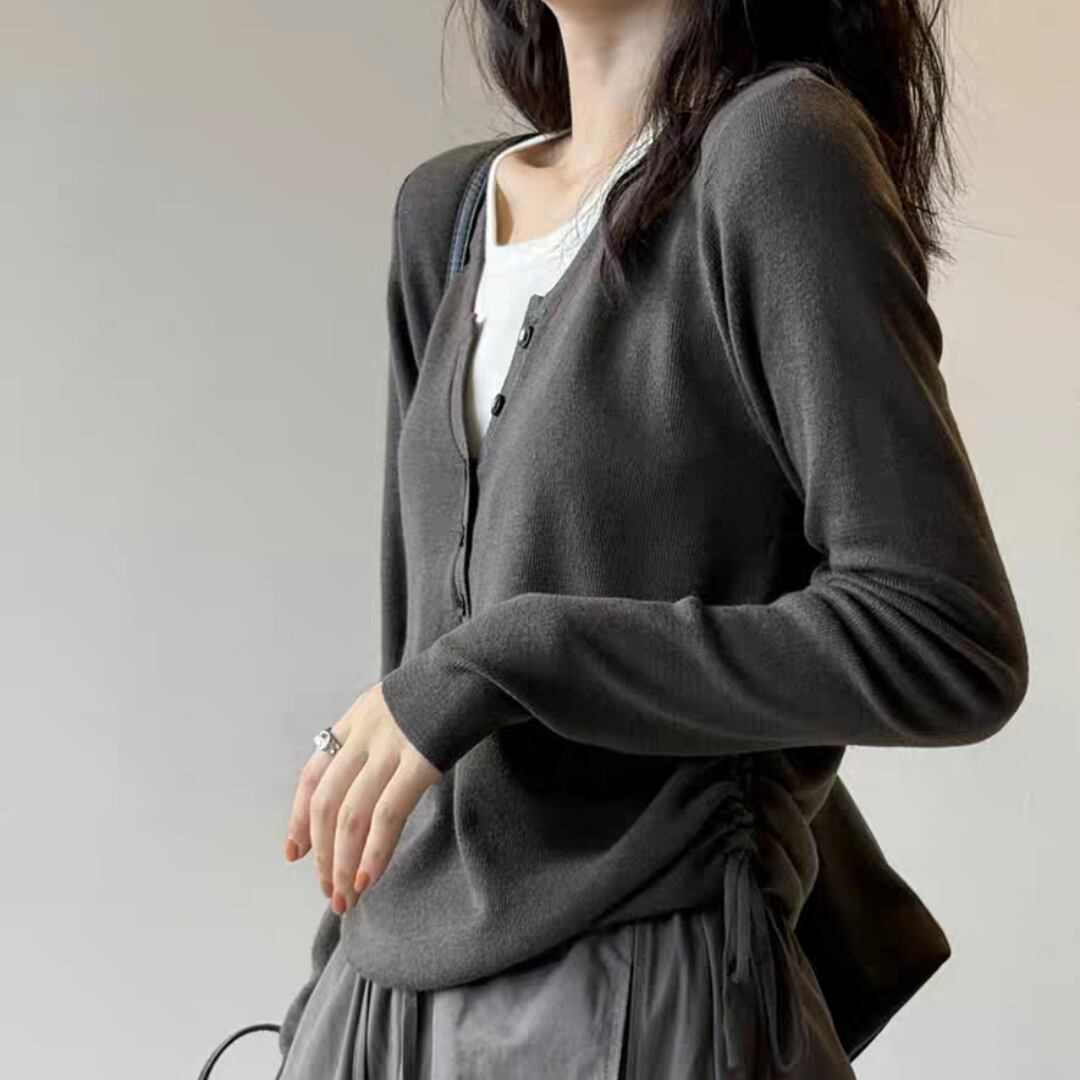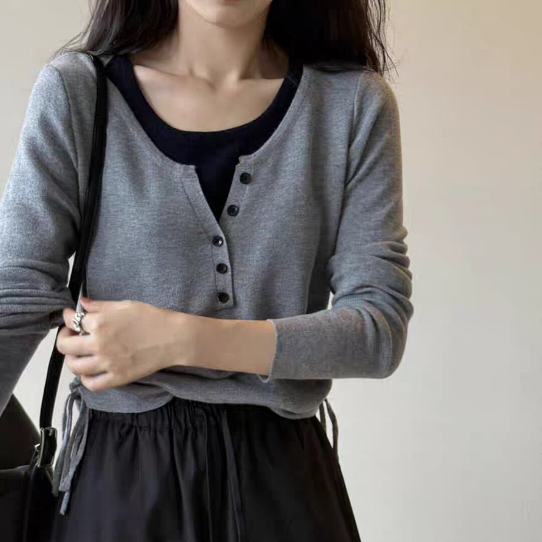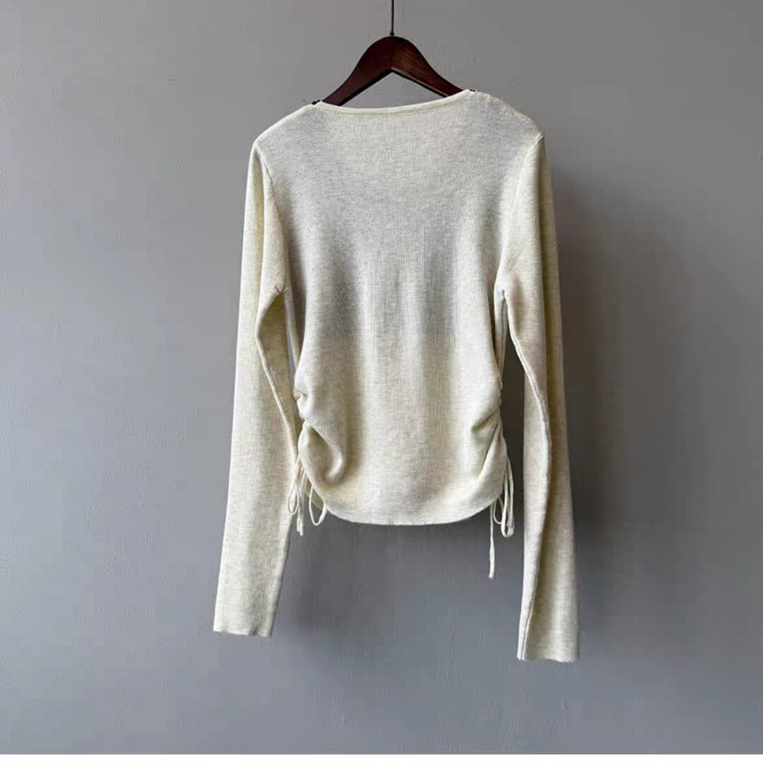 サイドドローストリング ヘンリーネックニットトップス 0208