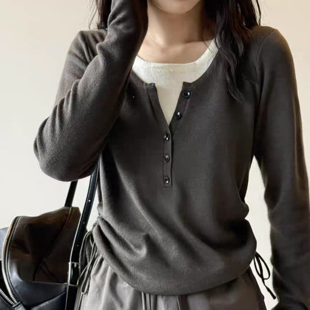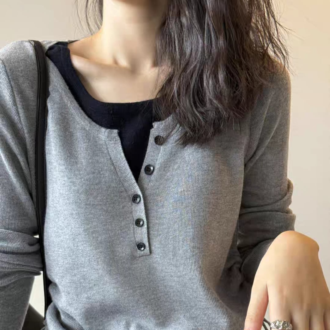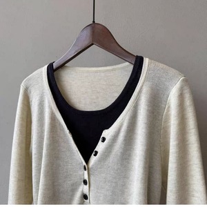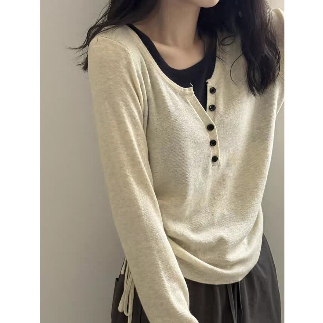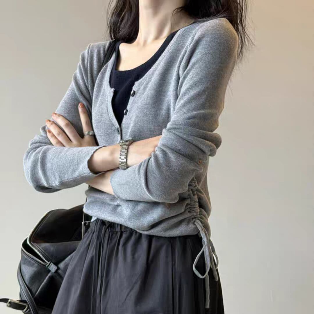 サイドドローストリング ヘンリーネックニットトップス 0208