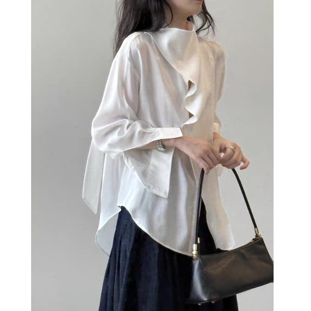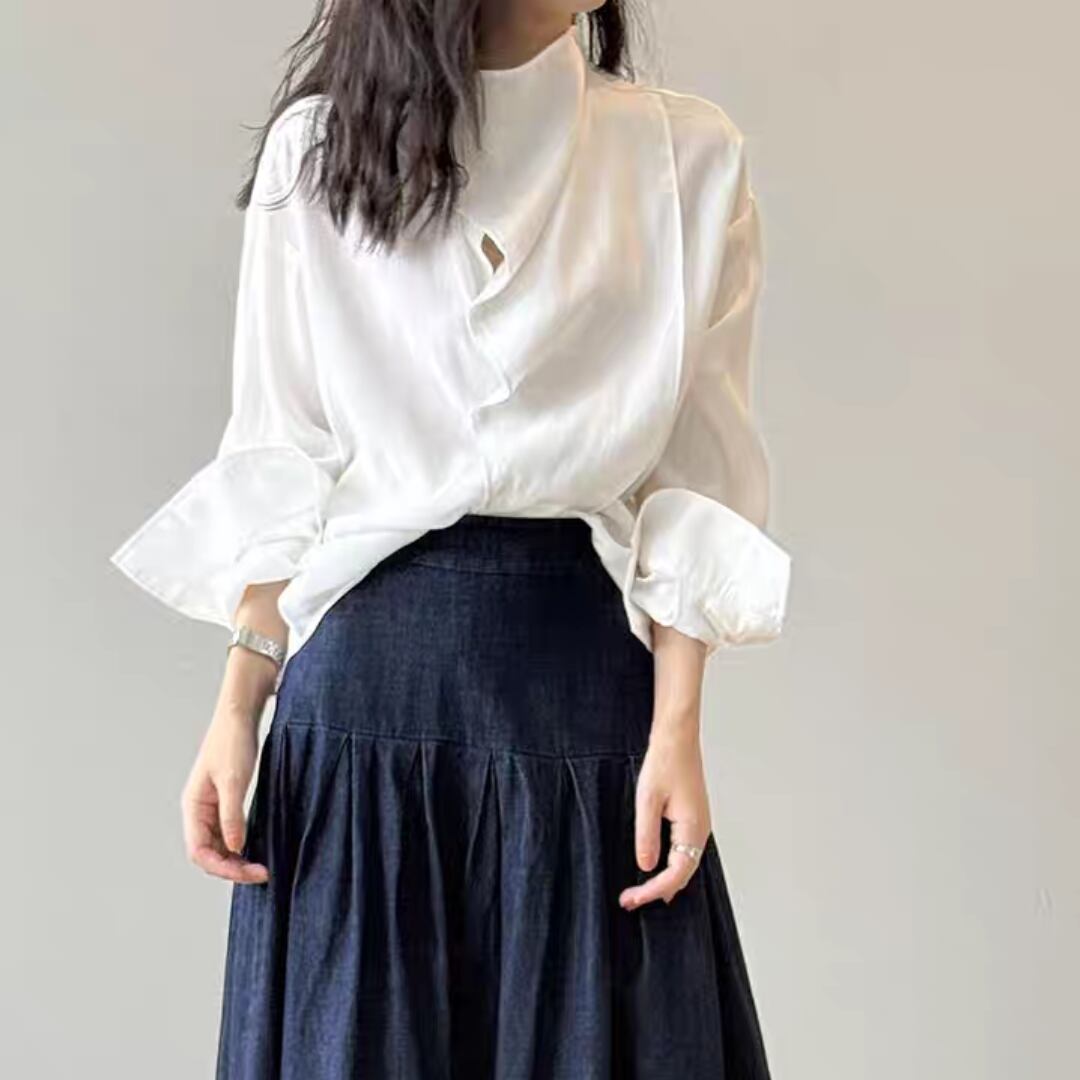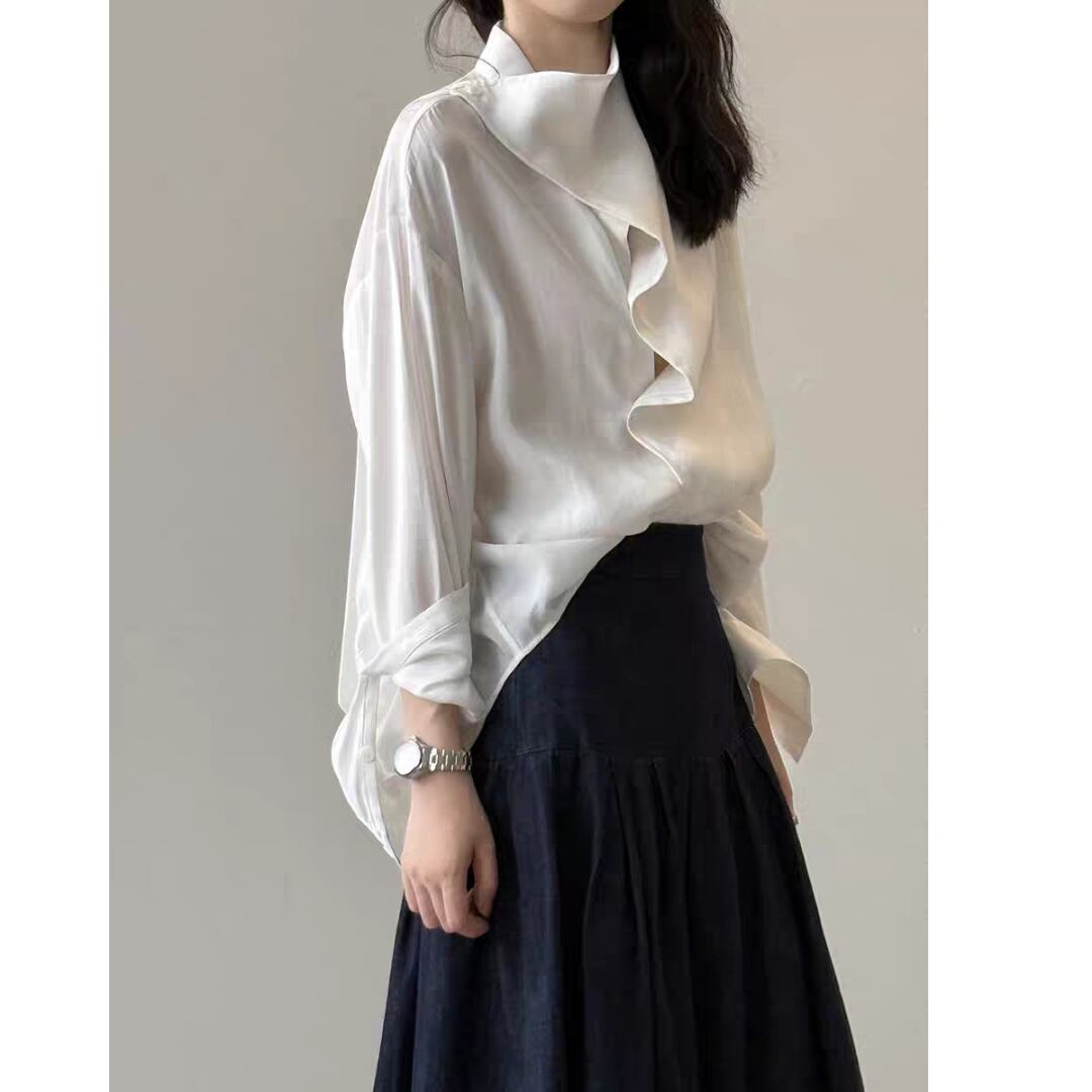 軽やかな生地感で着心地も快適、デニムと合わせてカジュアルに、スカートやスラックスと合わせればきれいめにも映える万能アイテム。