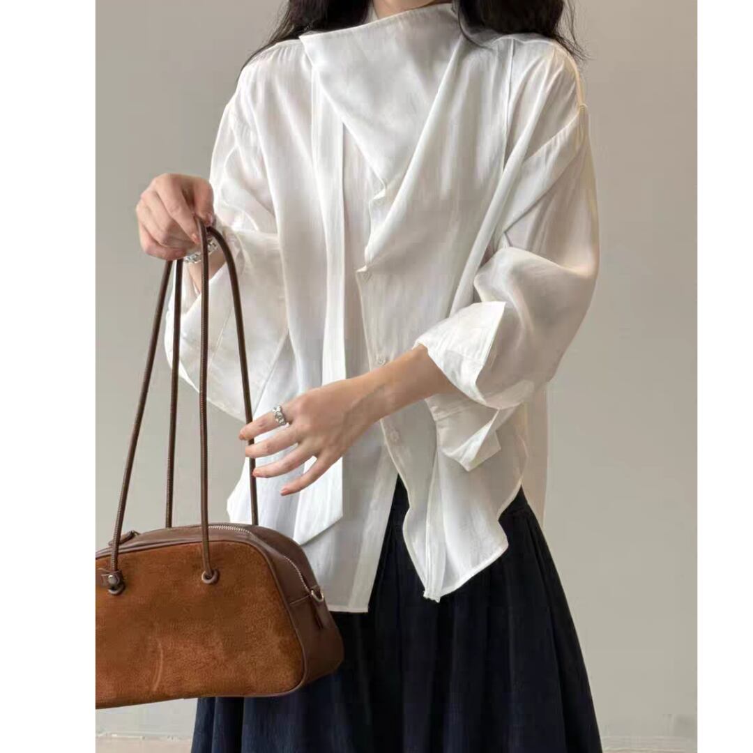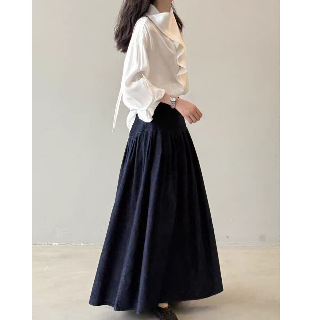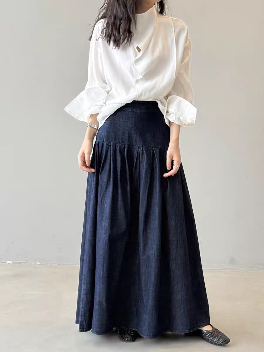 軽やかな生地感で着心地も快適、デニムと合わせてカジュアルに、スカートやスラックスと合わせればきれいめにも映える万能アイテム。