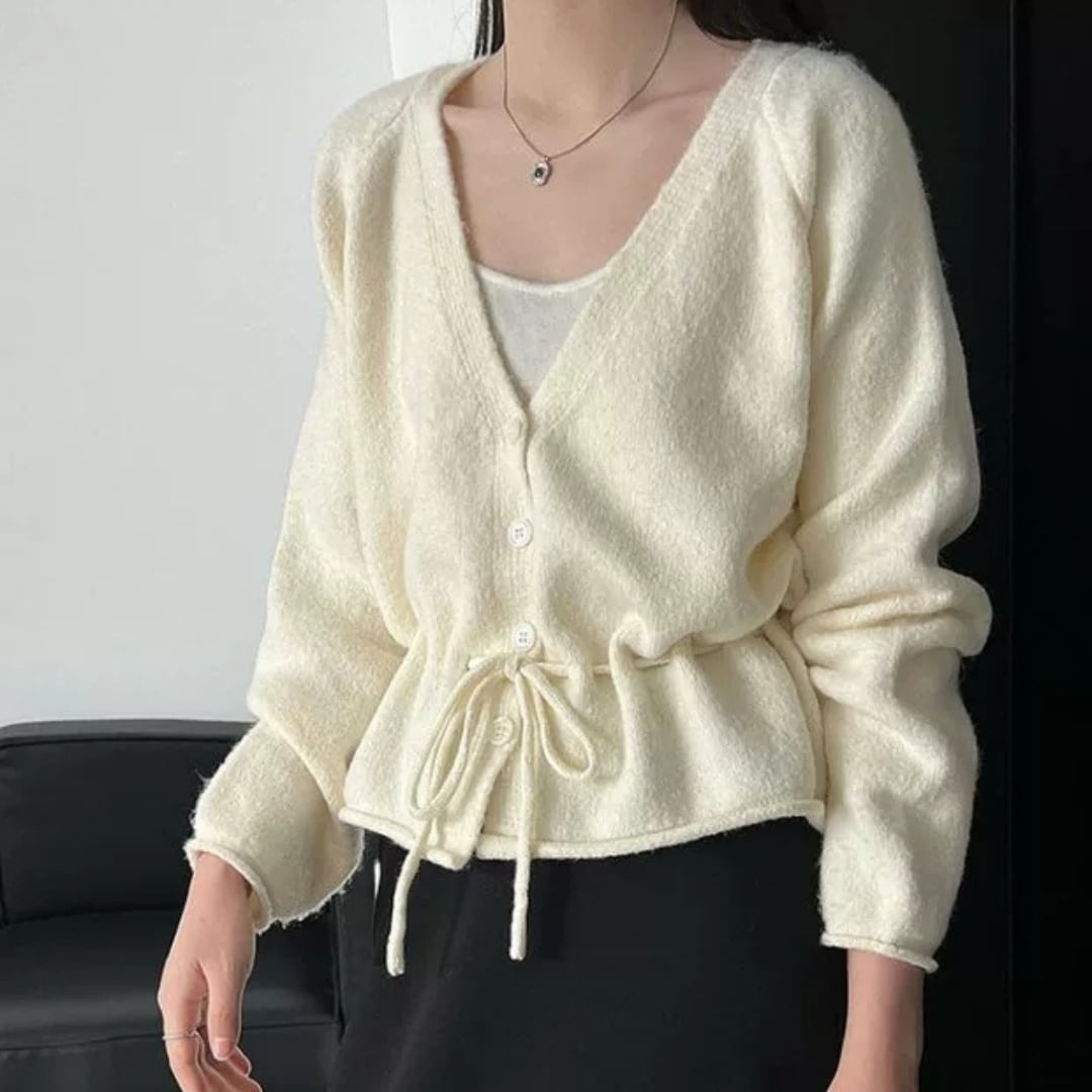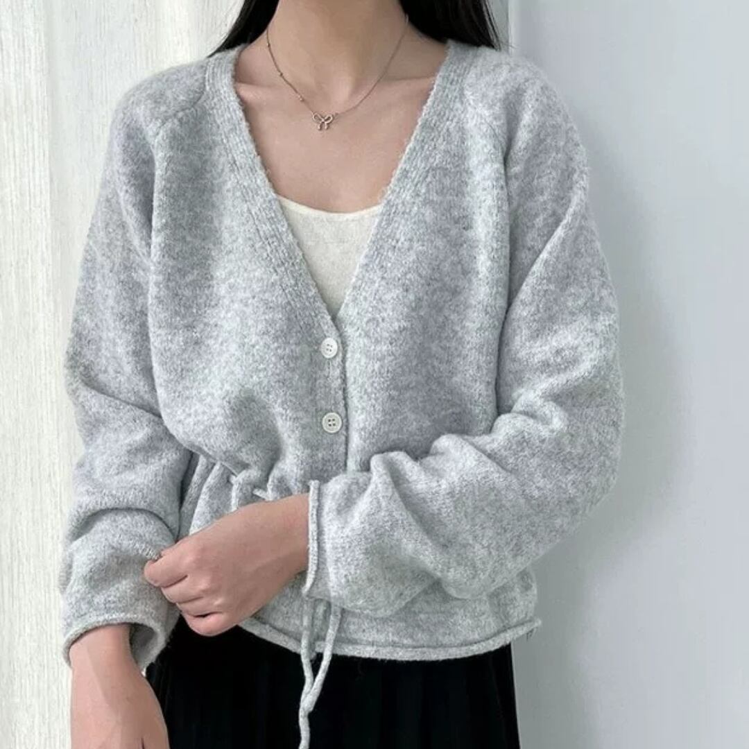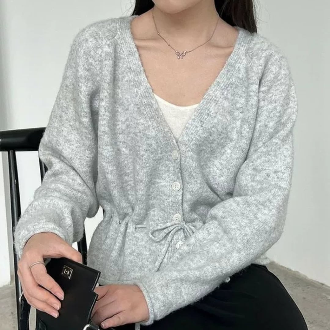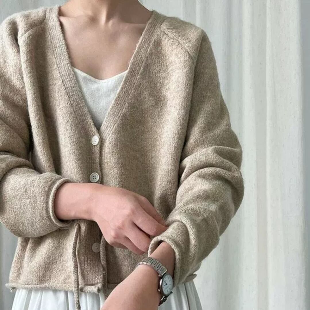 ふんわりとした風合いと女性らしいシルエットが魅力のニットカーディガン。