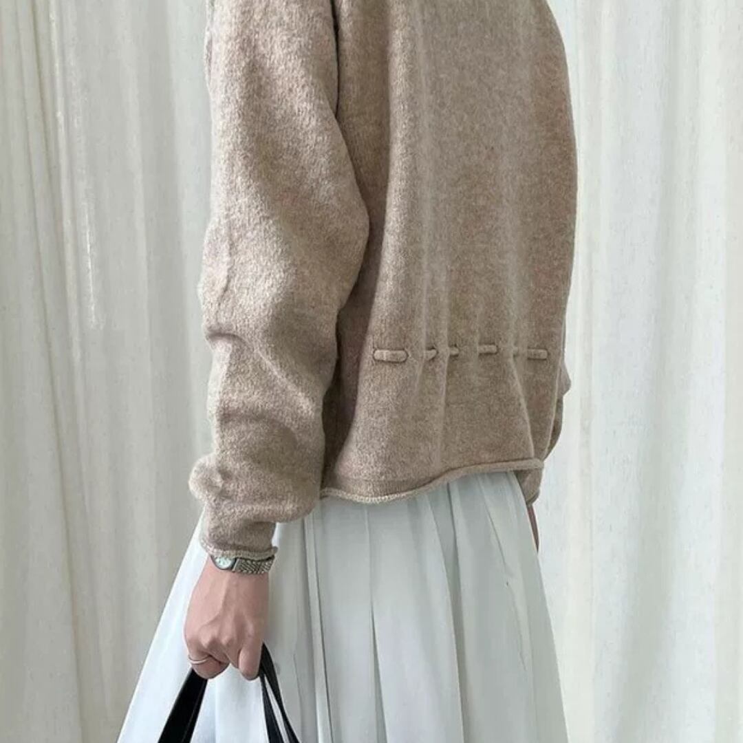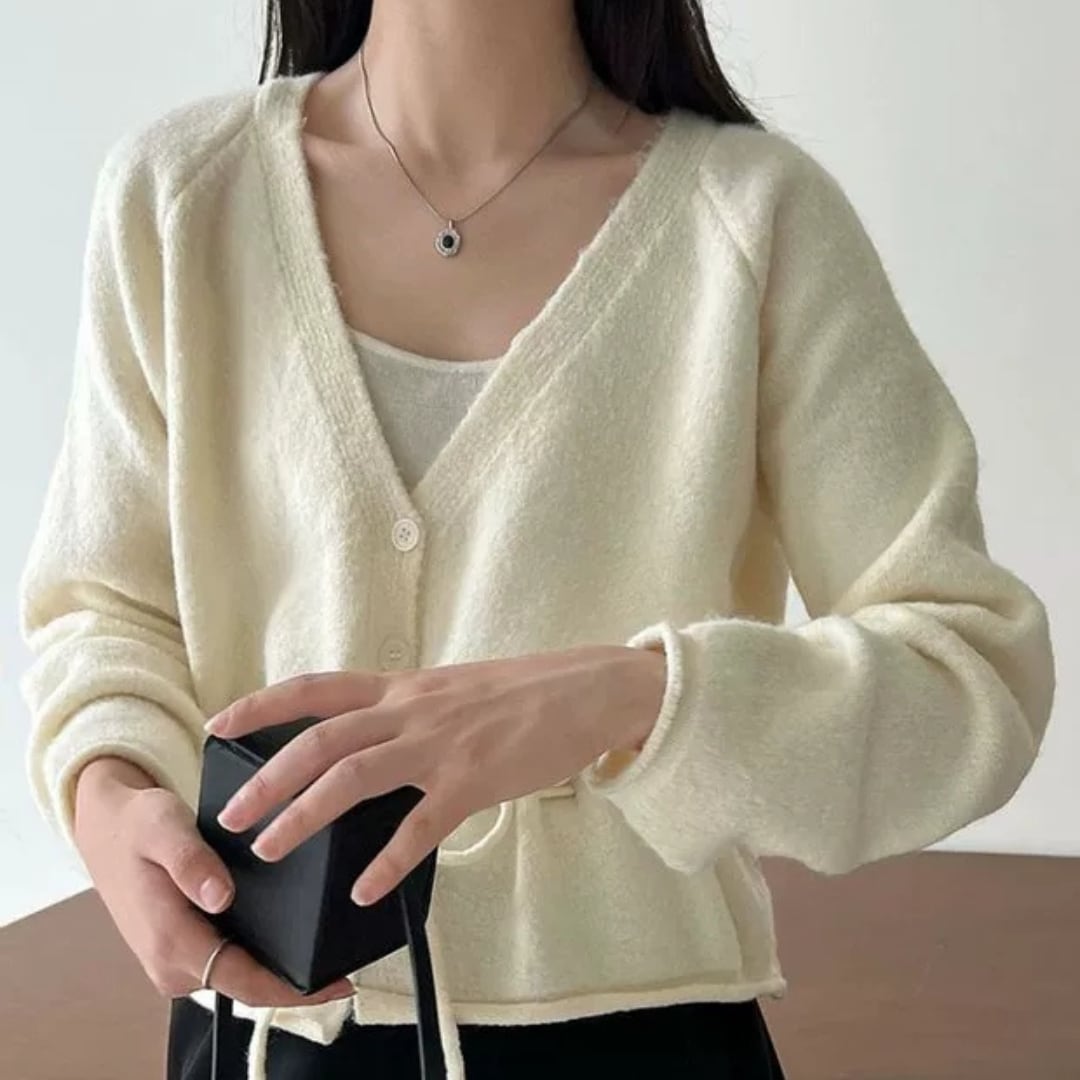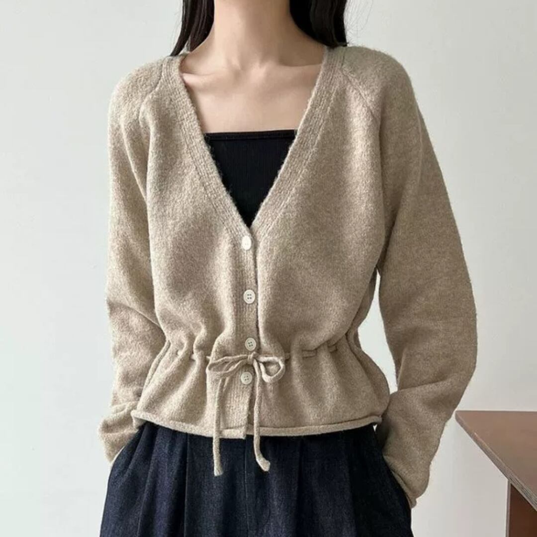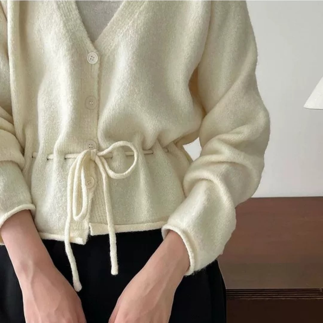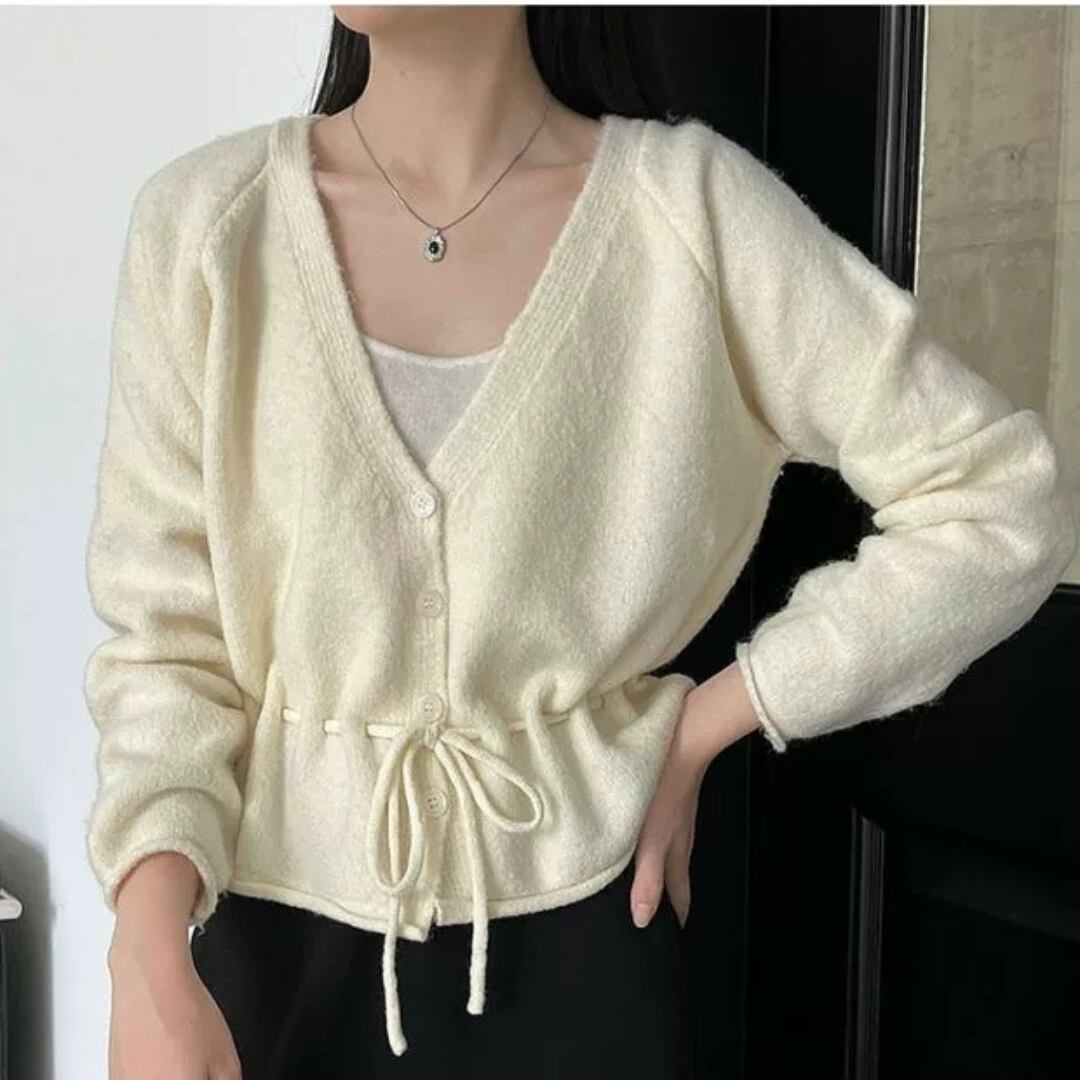 ふんわりとした風合いと女性らしいシルエットが魅力のニットカーディガン。