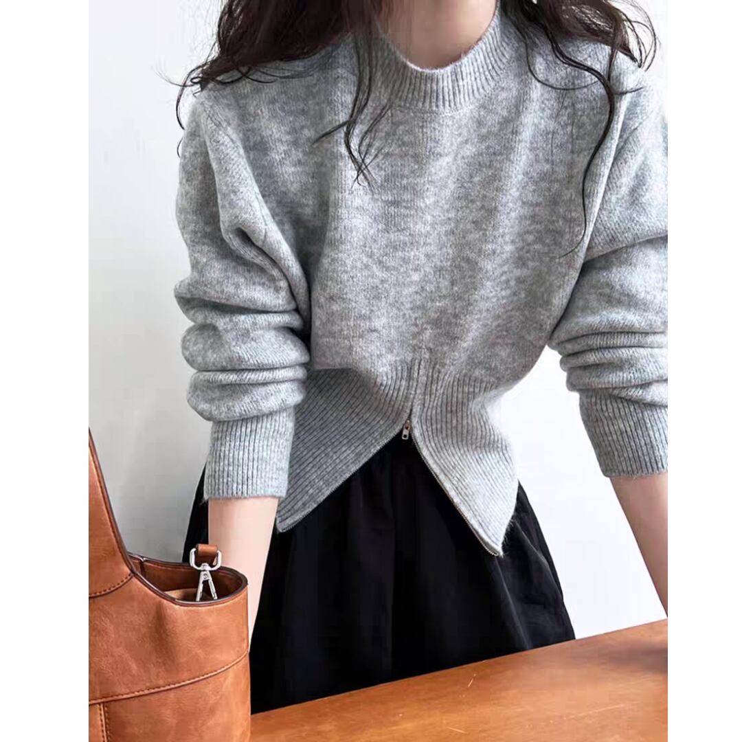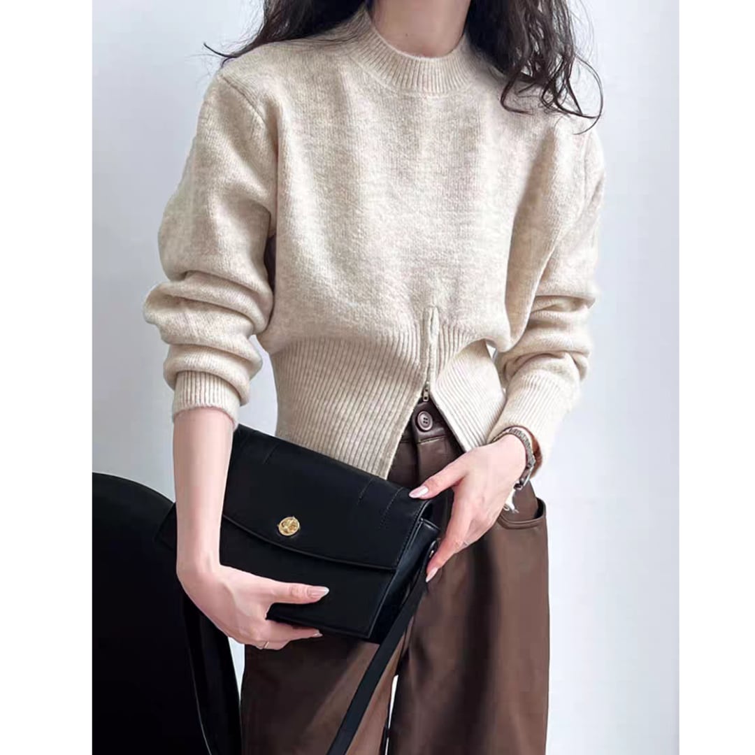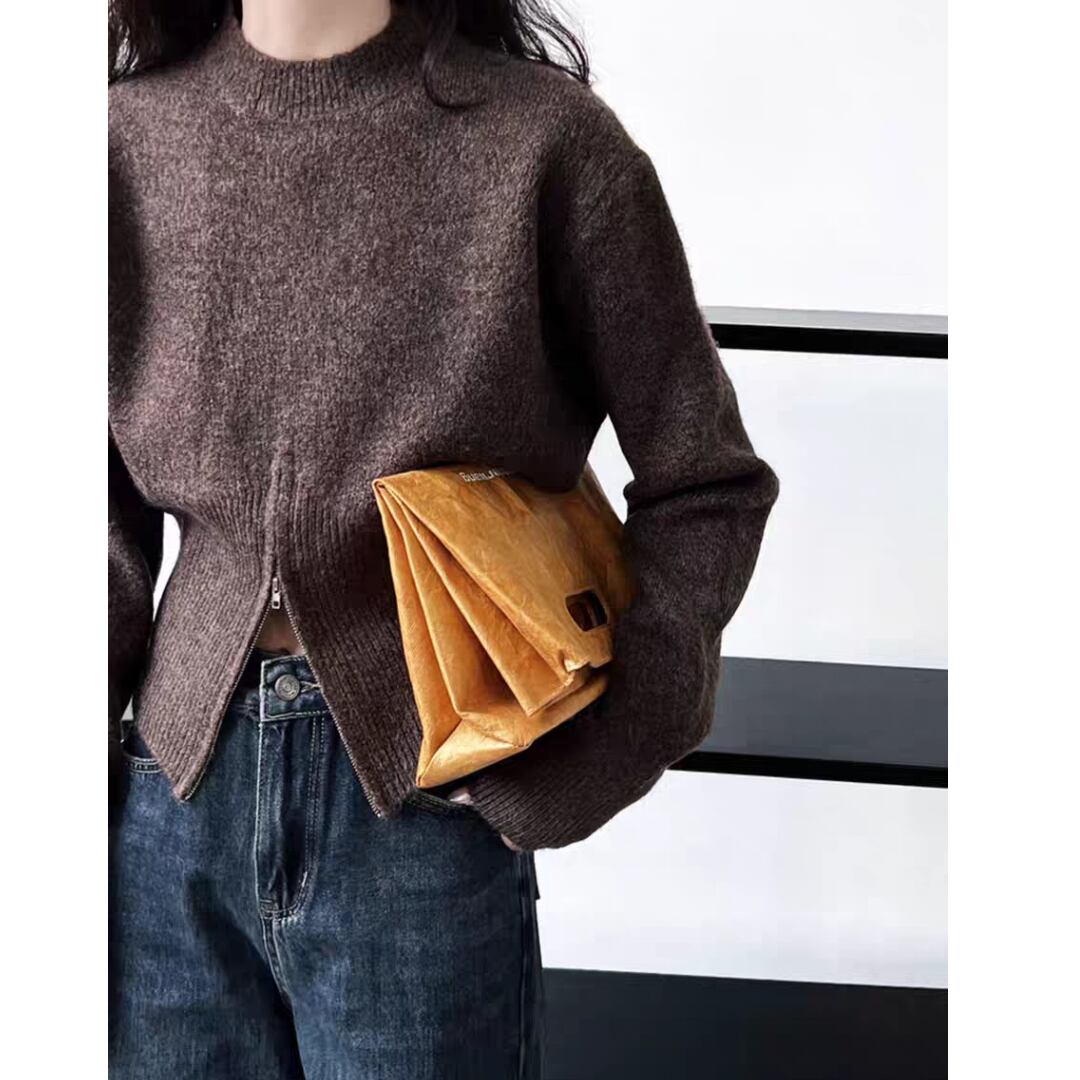裾部分に施されたファスナーディテールがポイントで、開け閉めによってシルエットの変化を楽しめます。