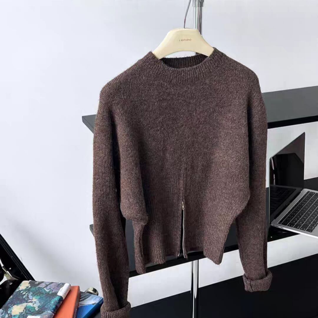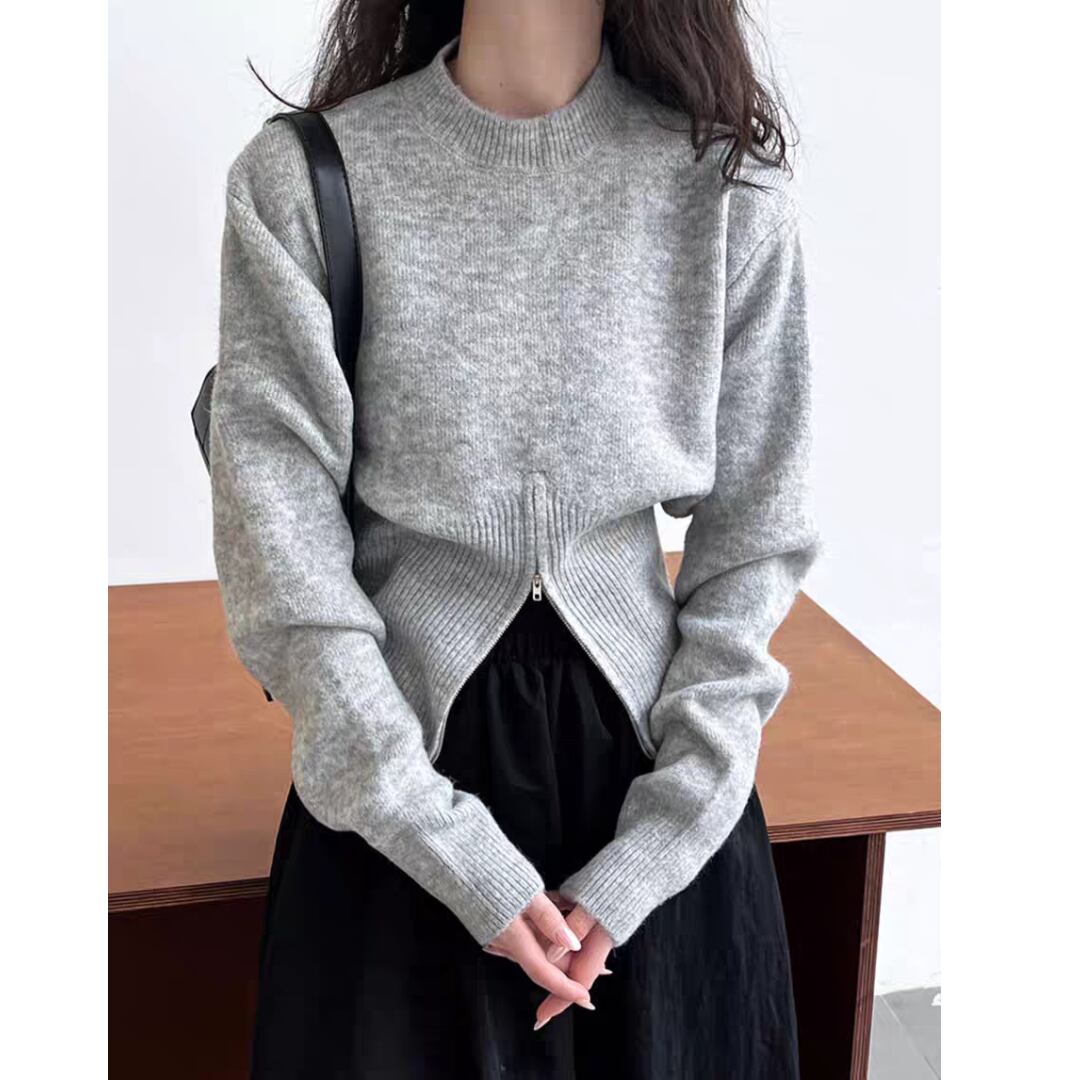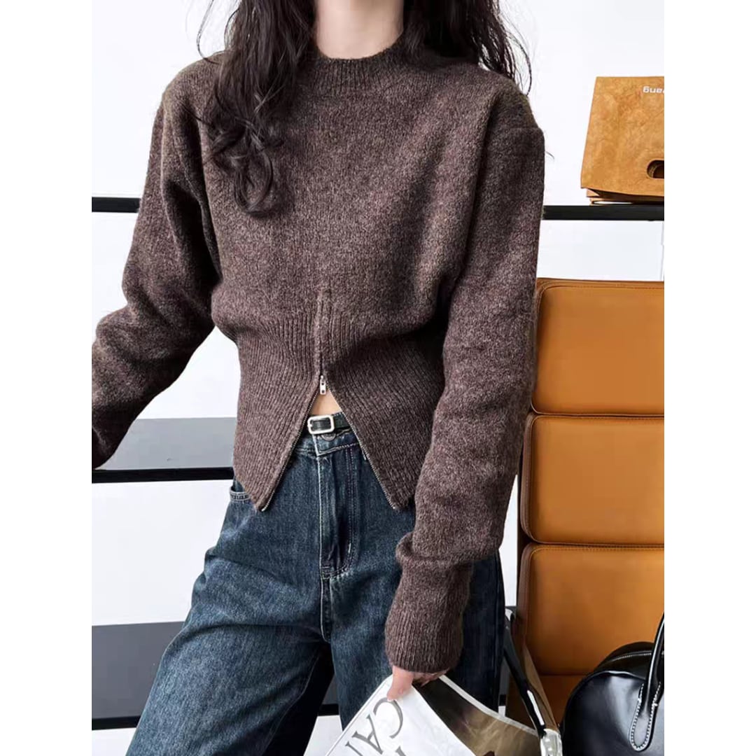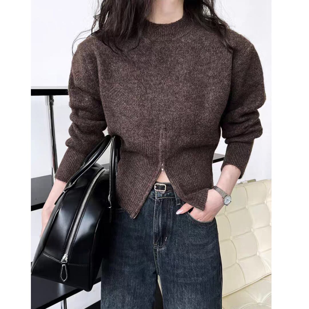 裾部分に施されたファスナーディテールがポイントで、開け閉めによってシルエットの変化を楽しめます。