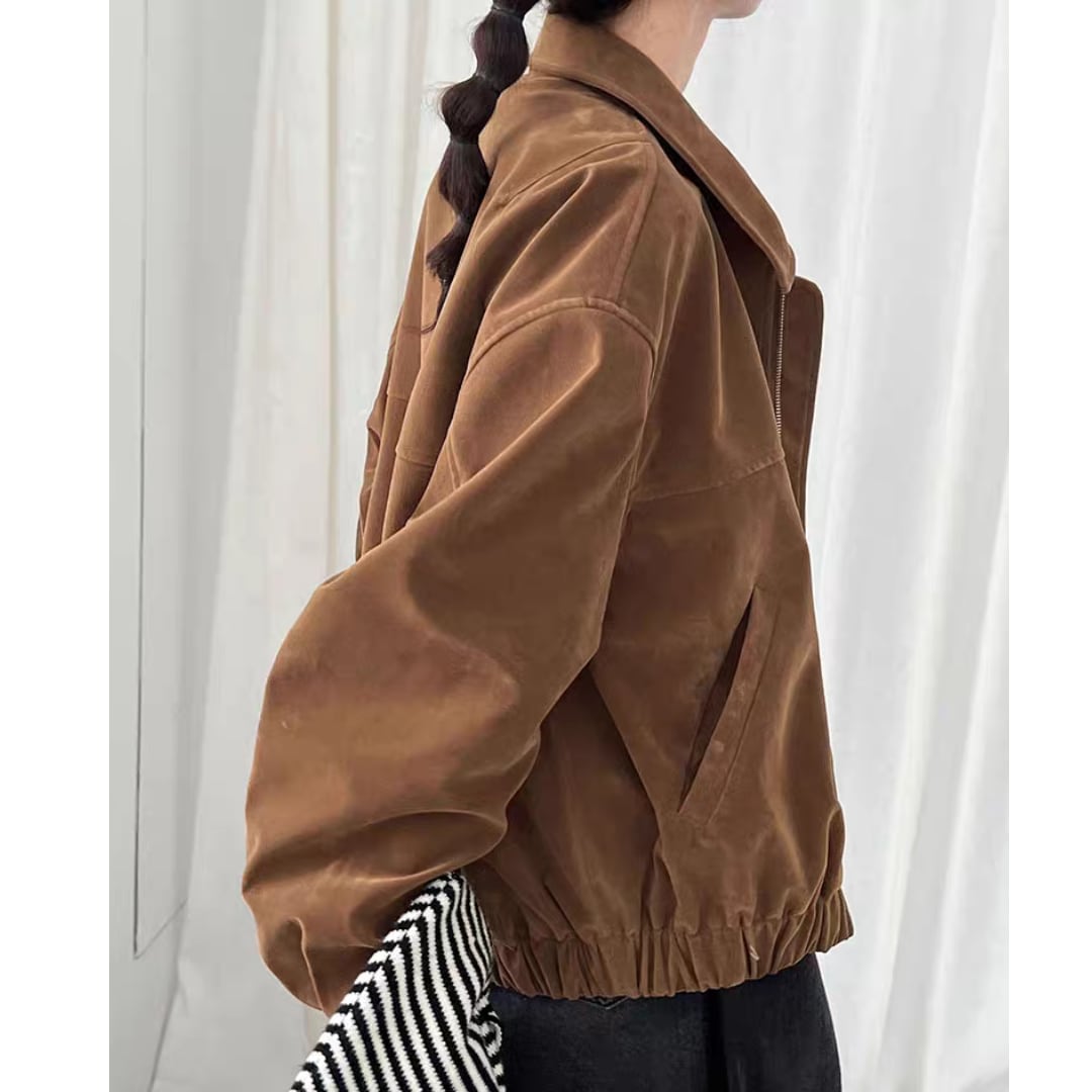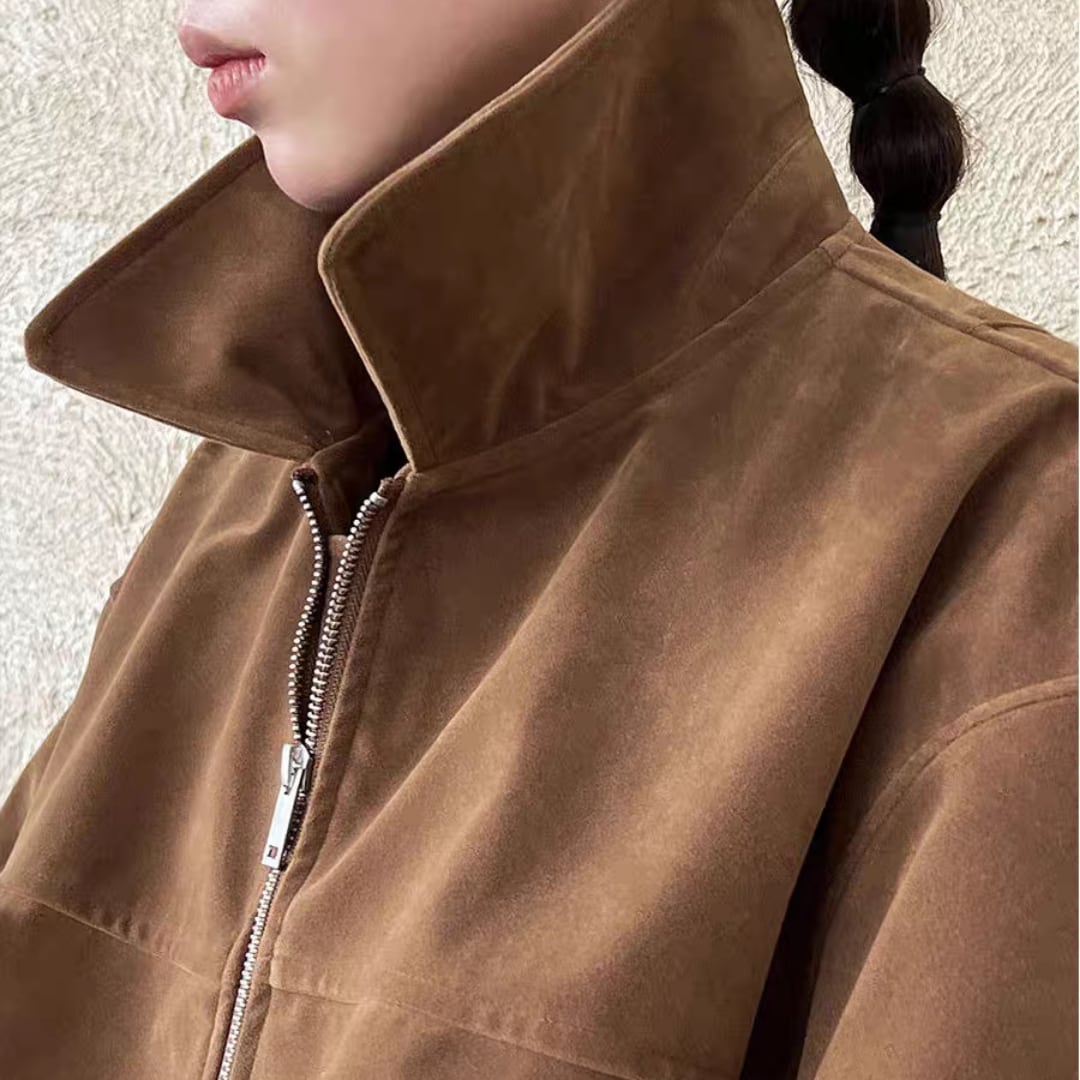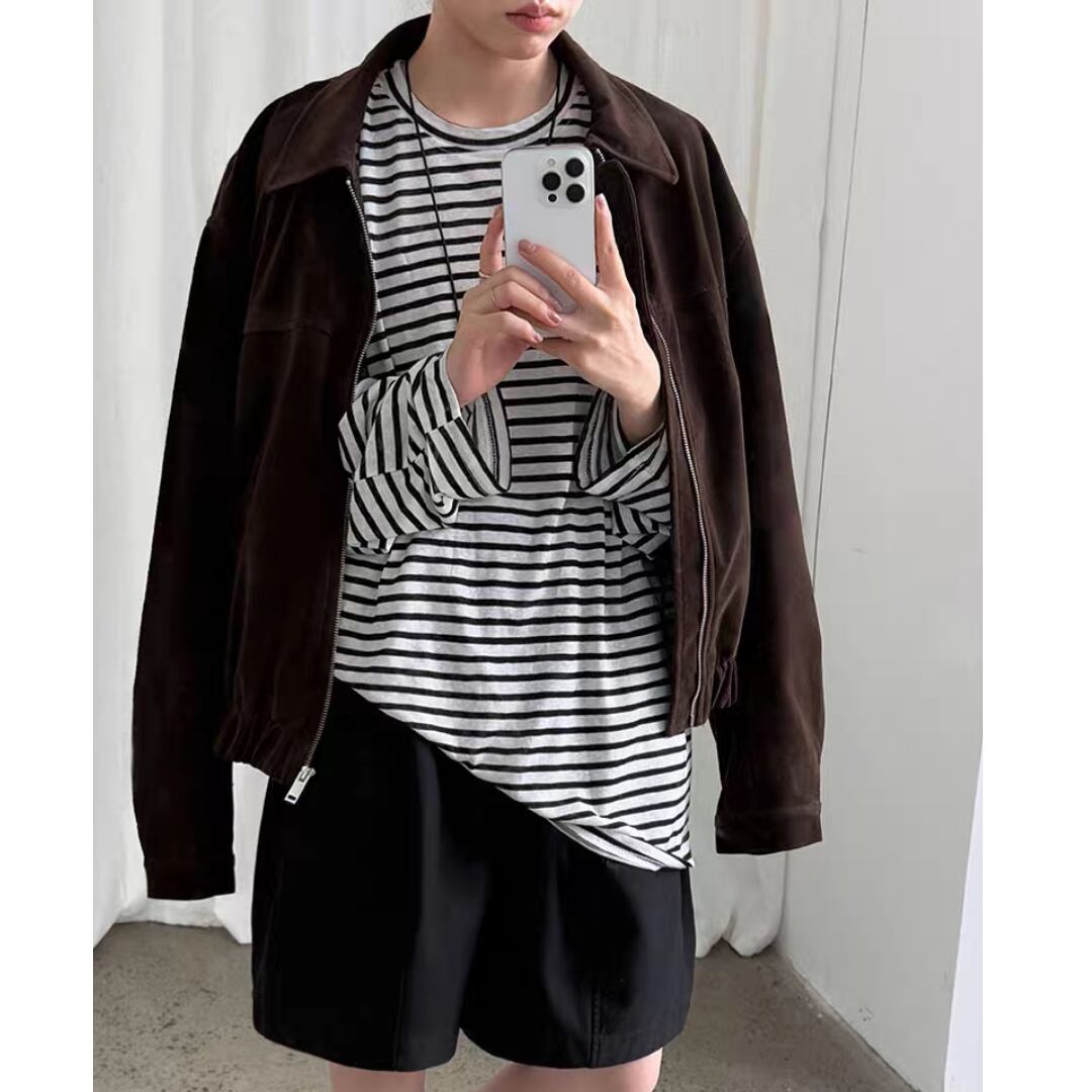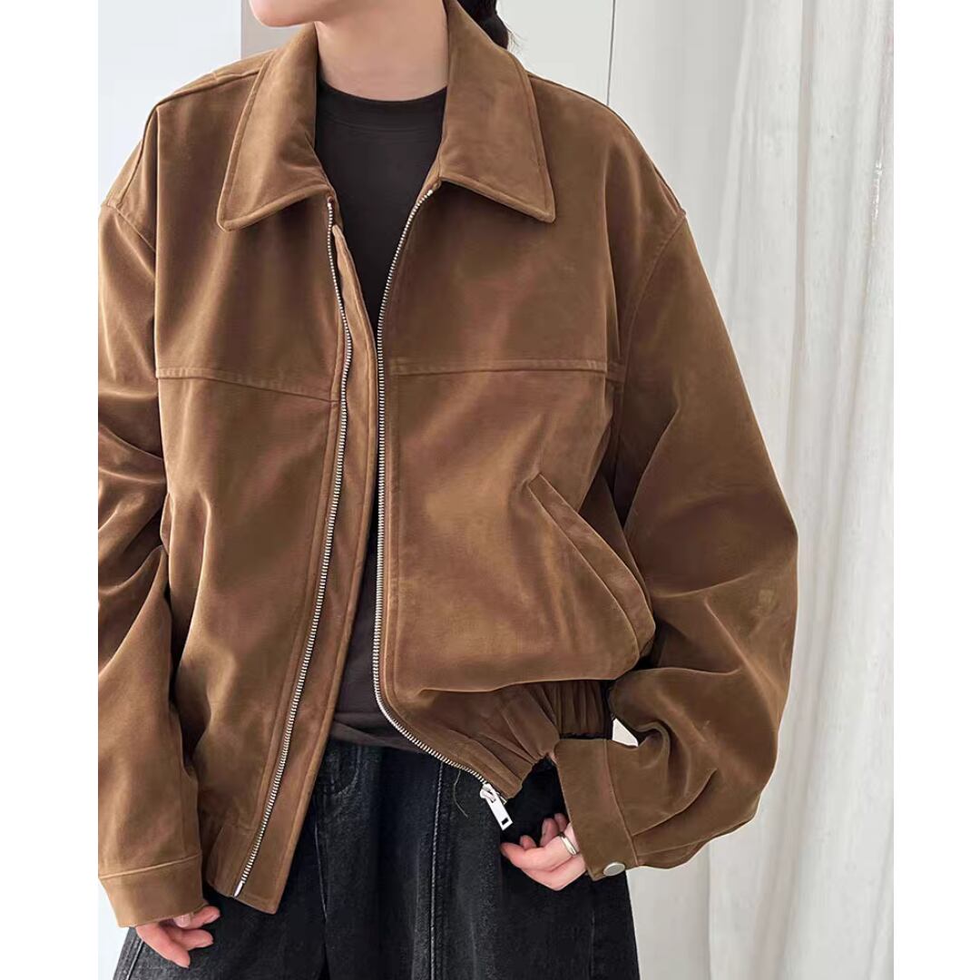 ジップを閉めればシンプルに、開ければ抜け感のあるスタイルに仕上がり、秋口から春先まで長く活躍する一着です。