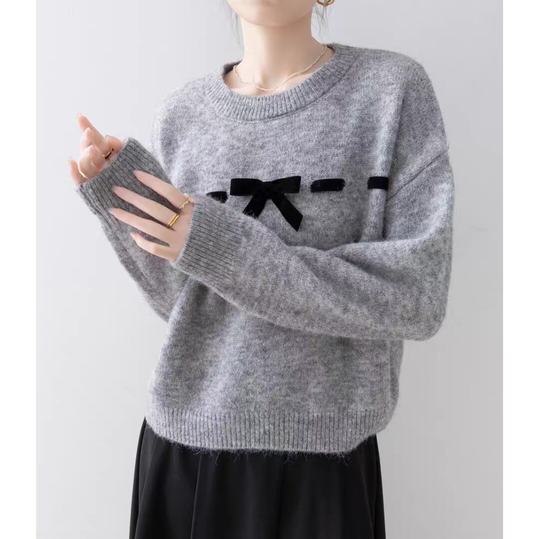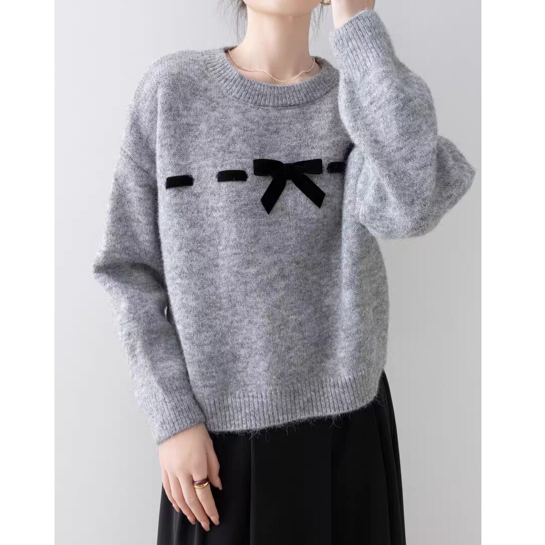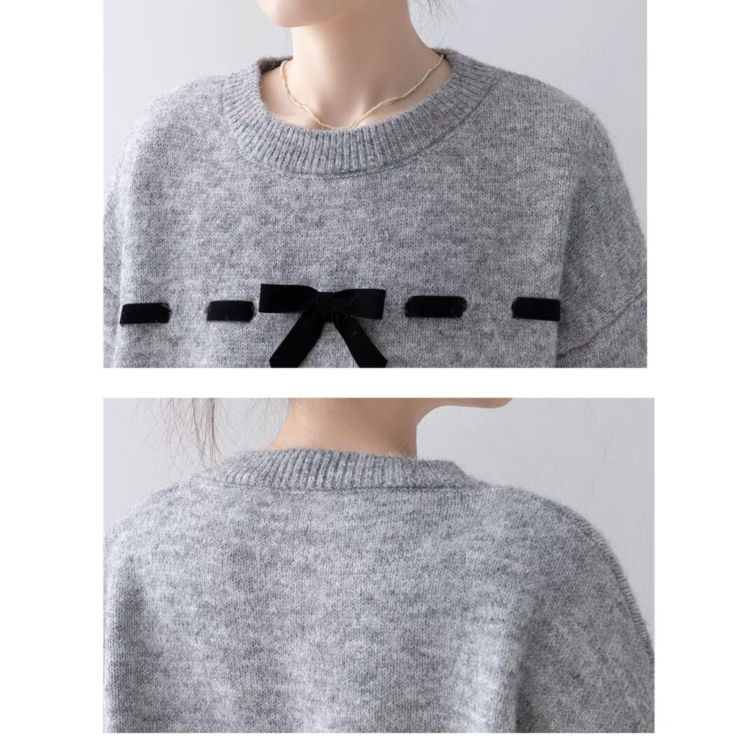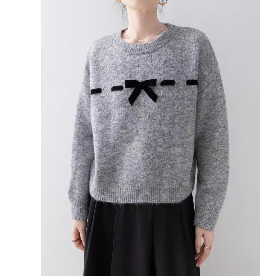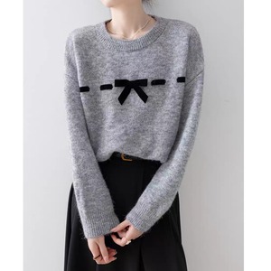 胸元のリボンディテールが、シンプルな中にさりげない大人の甘さをプラスします。