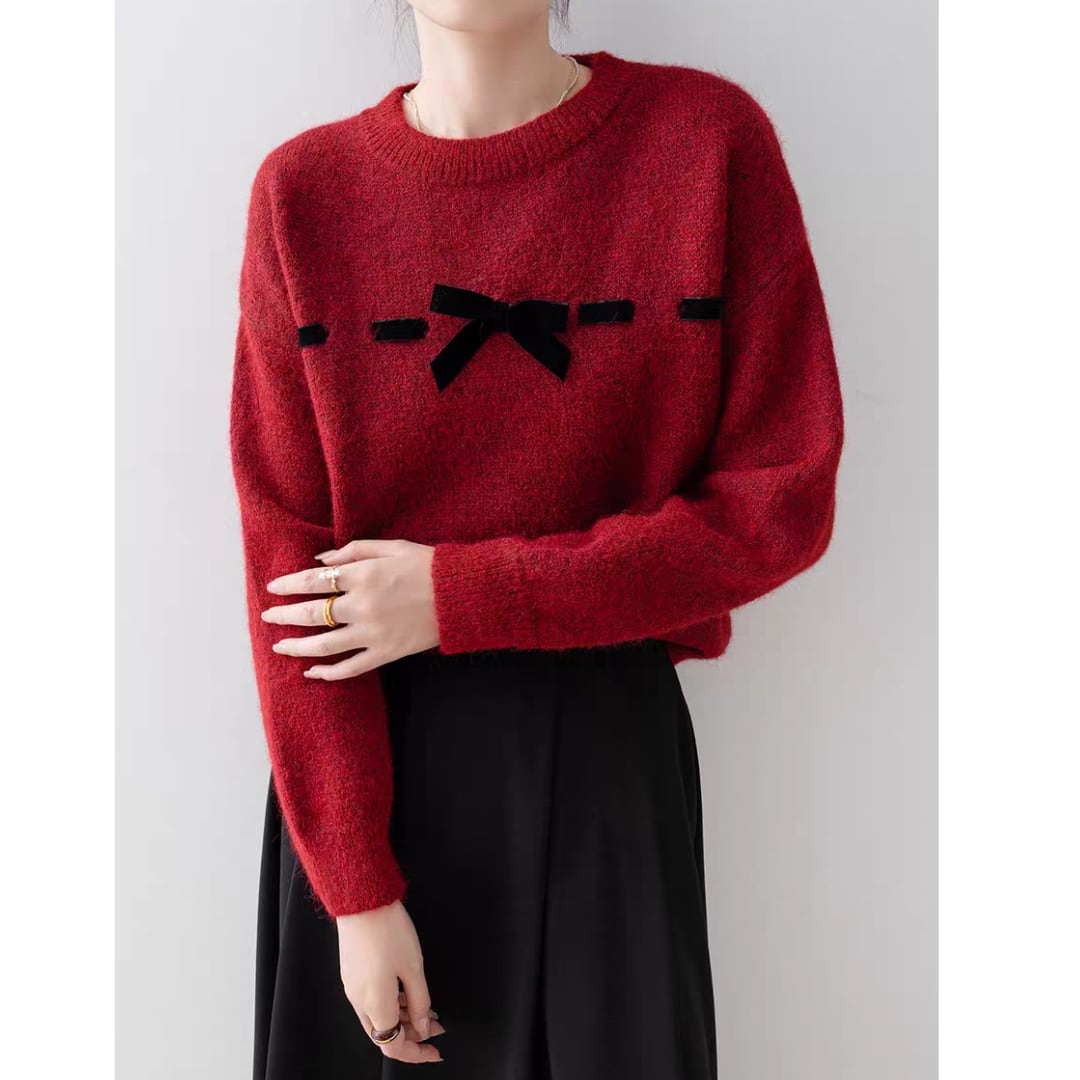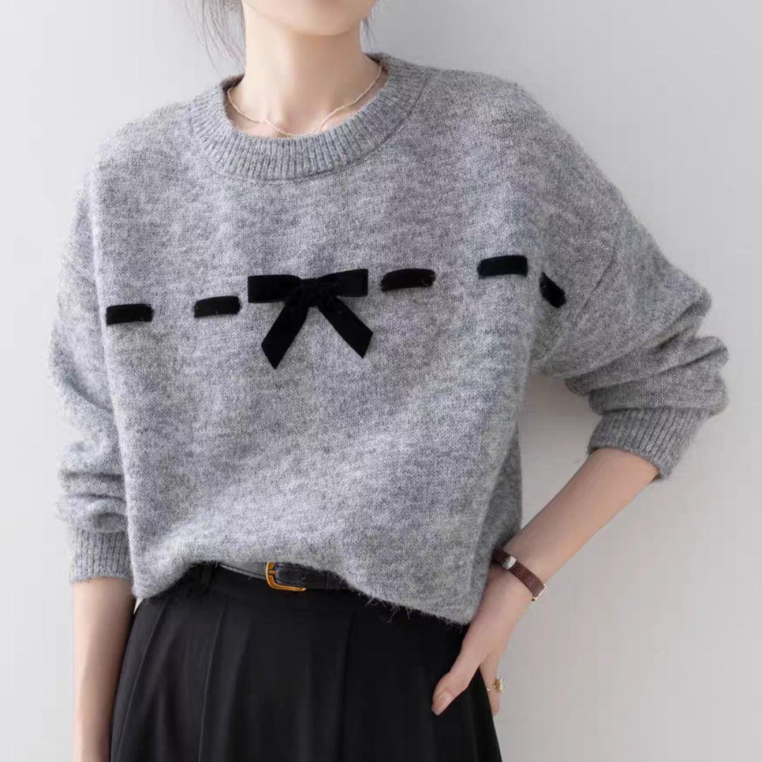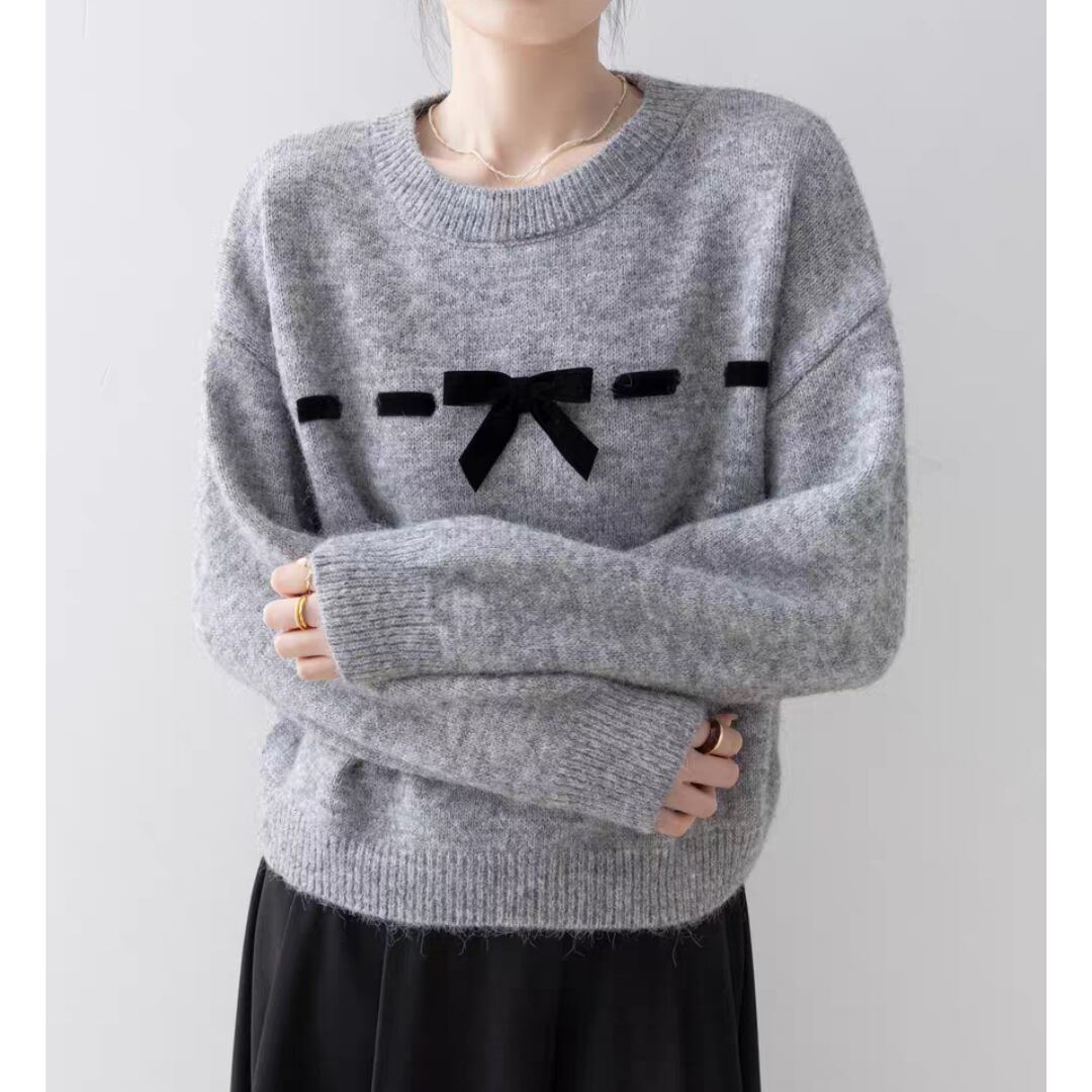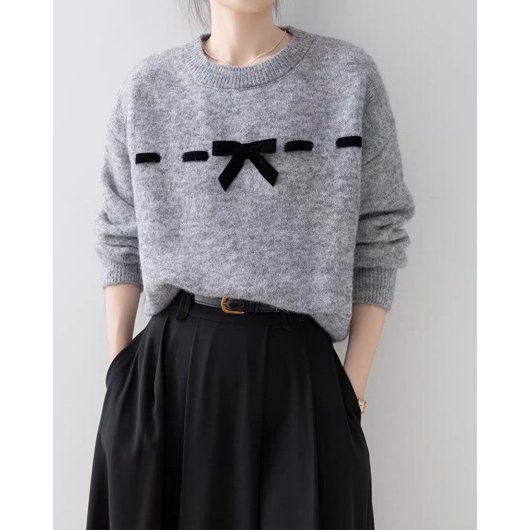 胸元のリボンディテールが、シンプルな中にさりげない大人の甘さをプラスします。