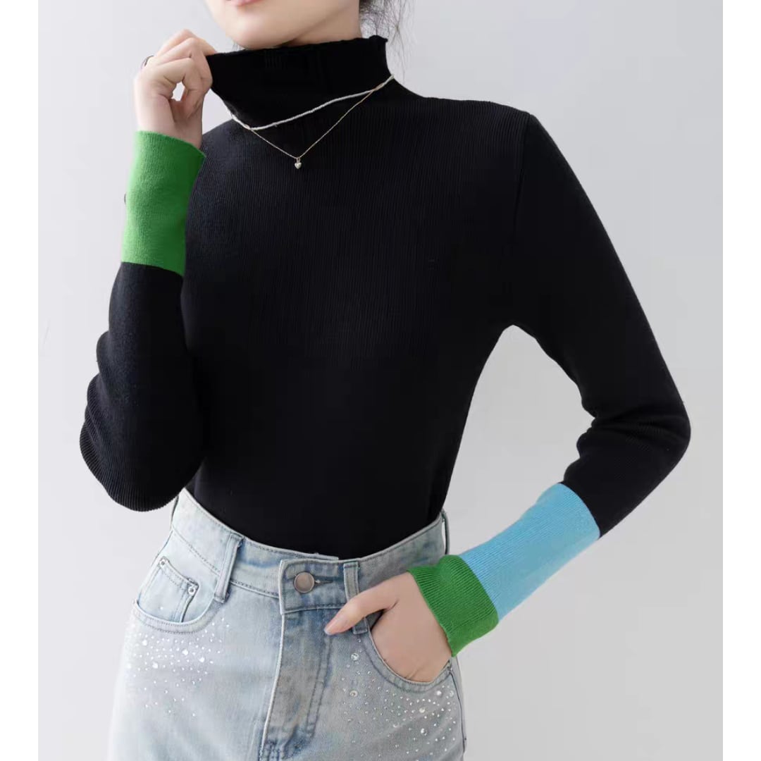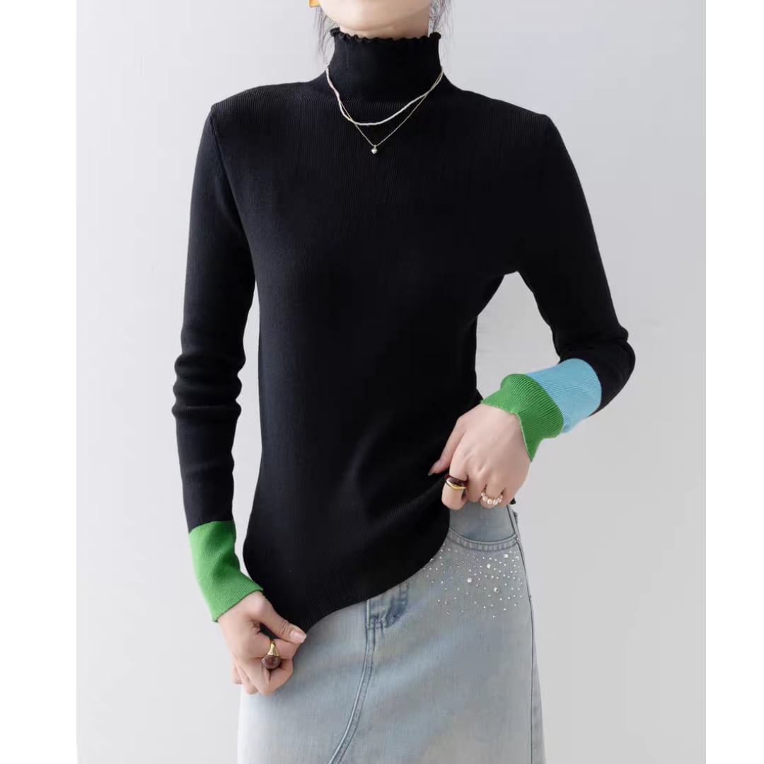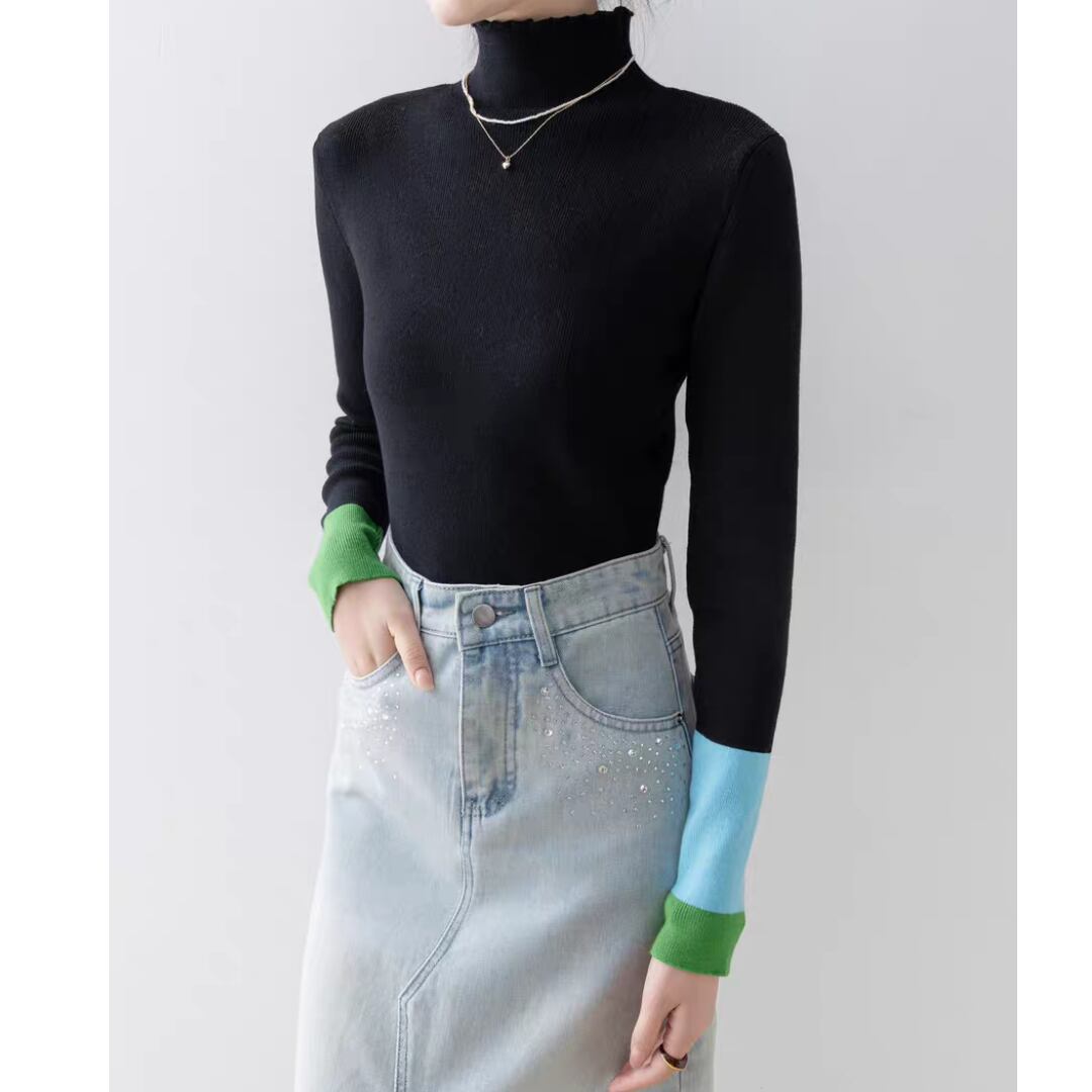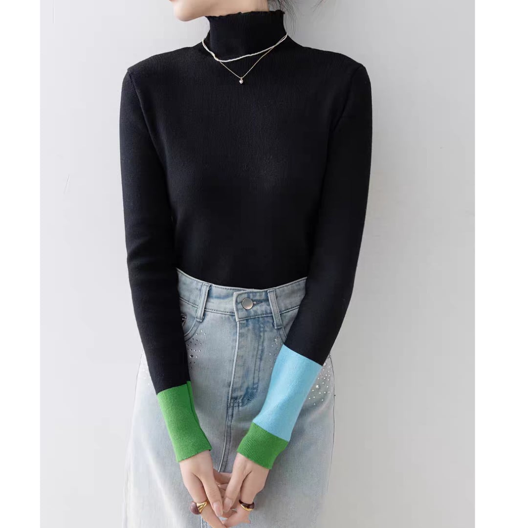 バイカラーカフハイネックニット 0233