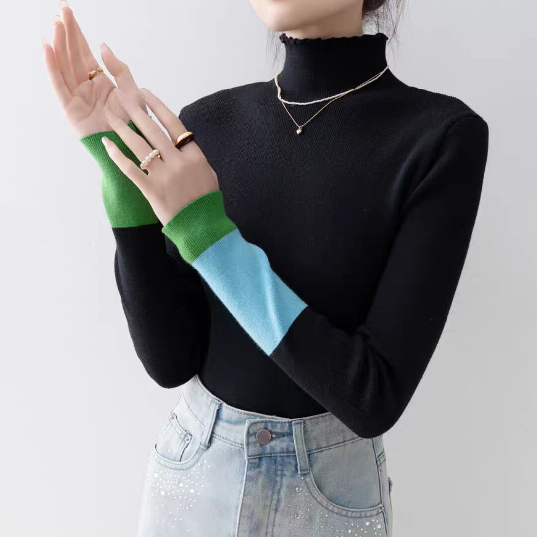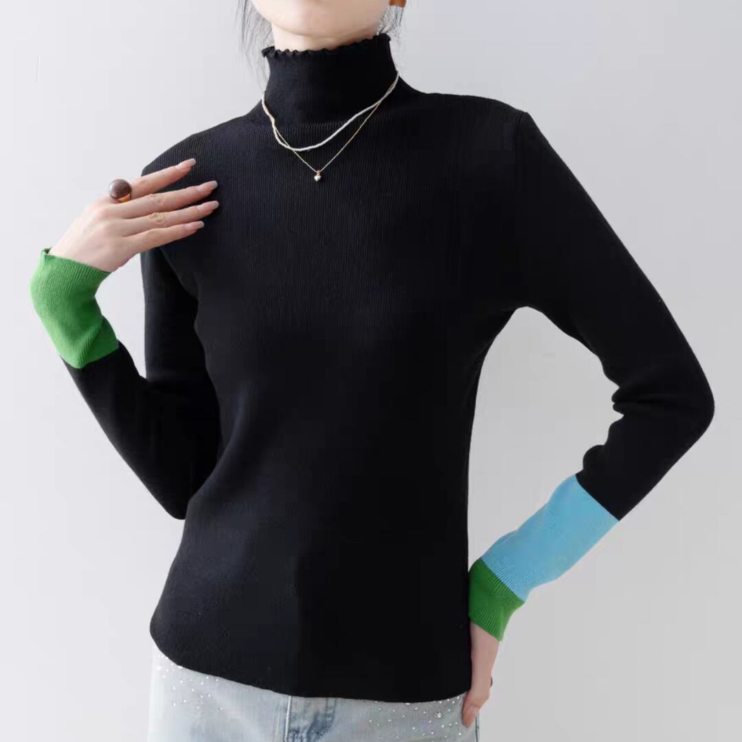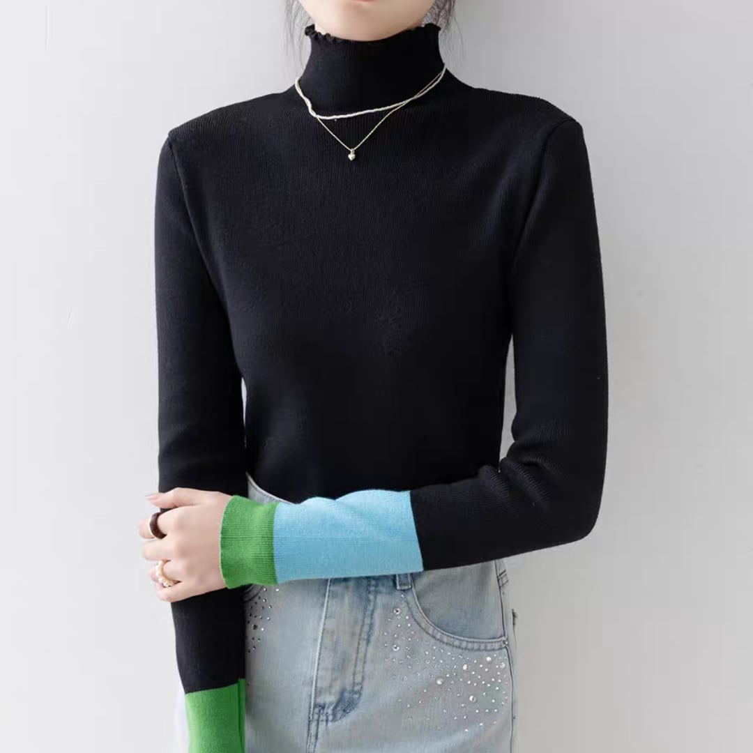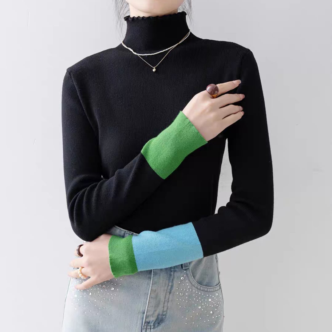 バイカラーカフハイネックニット 0233