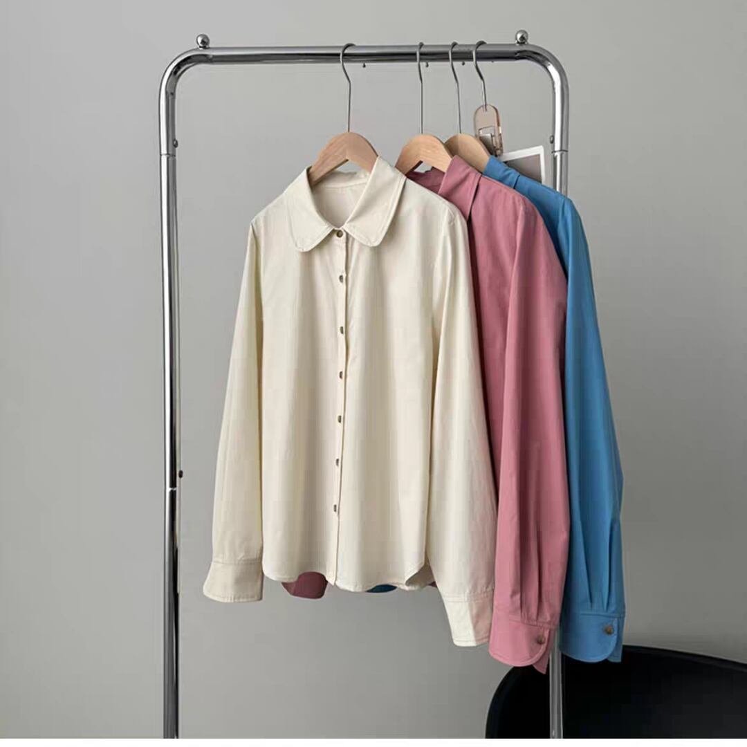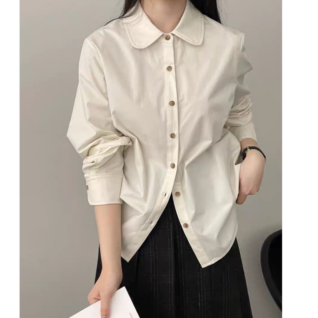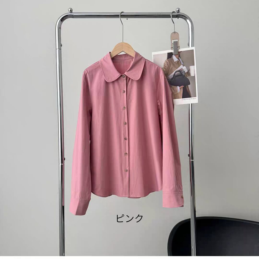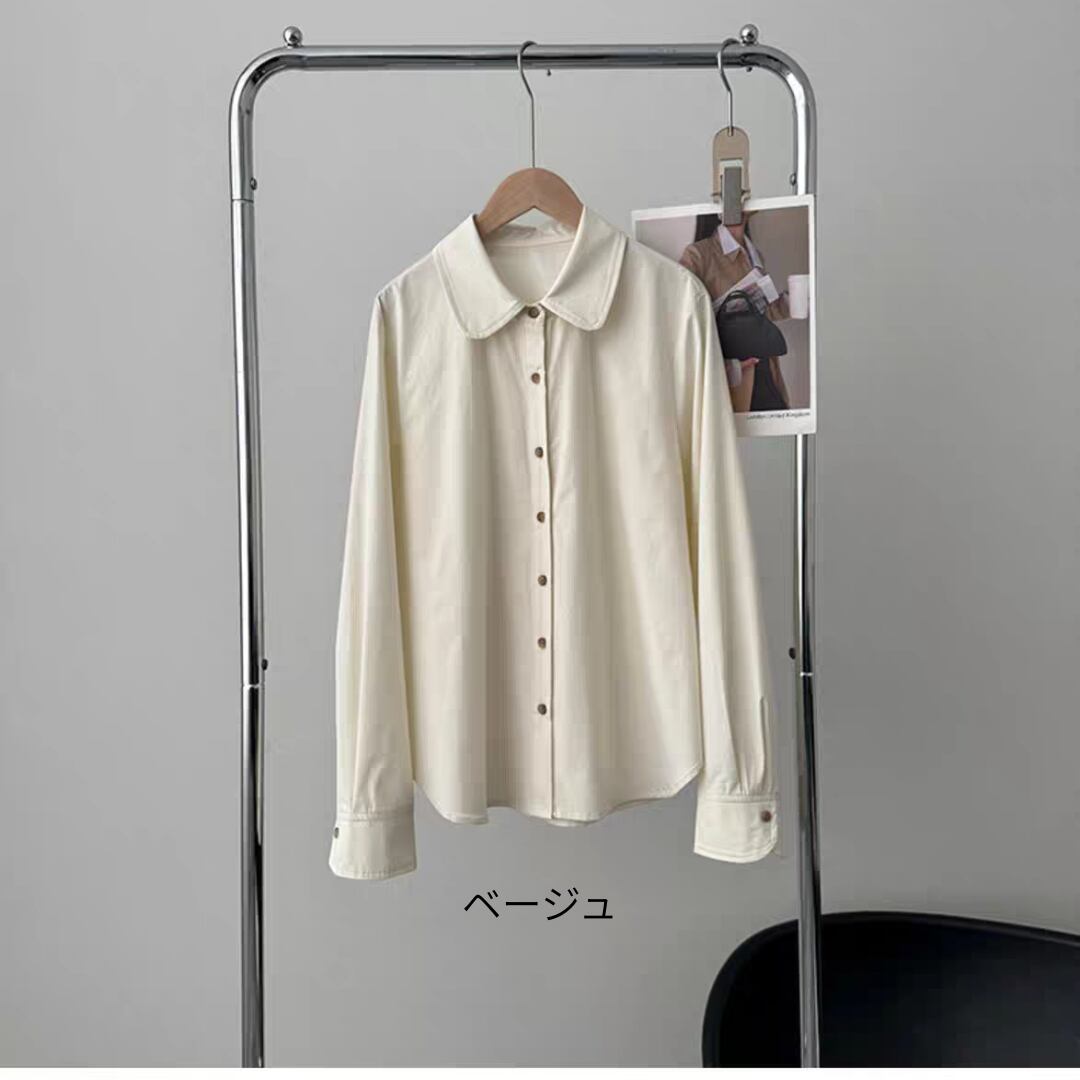 丸みのある襟とシンプルなボタンデザインが、ほんのりフェミニンな雰囲気をプラスします。ジャケットやカーディガンのインナーとしても映え、ボトムス次第でカジュアルにもきれいめにも着こなし可能。