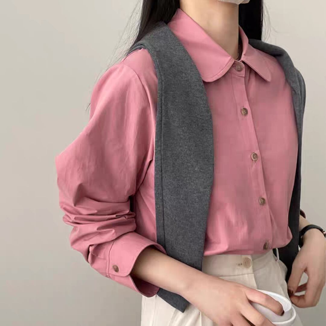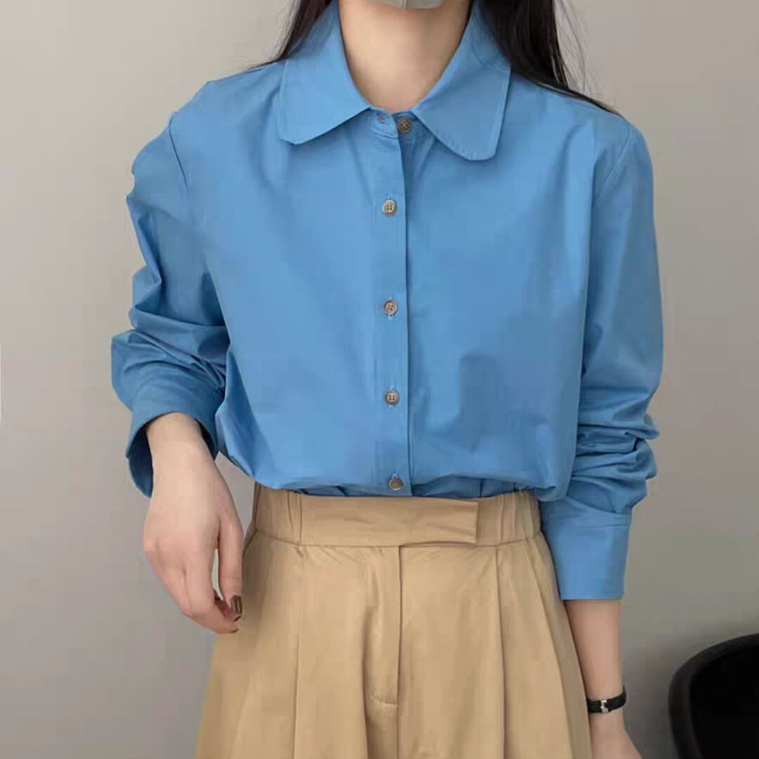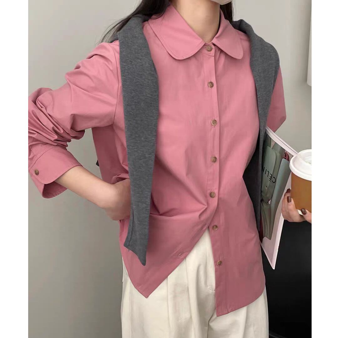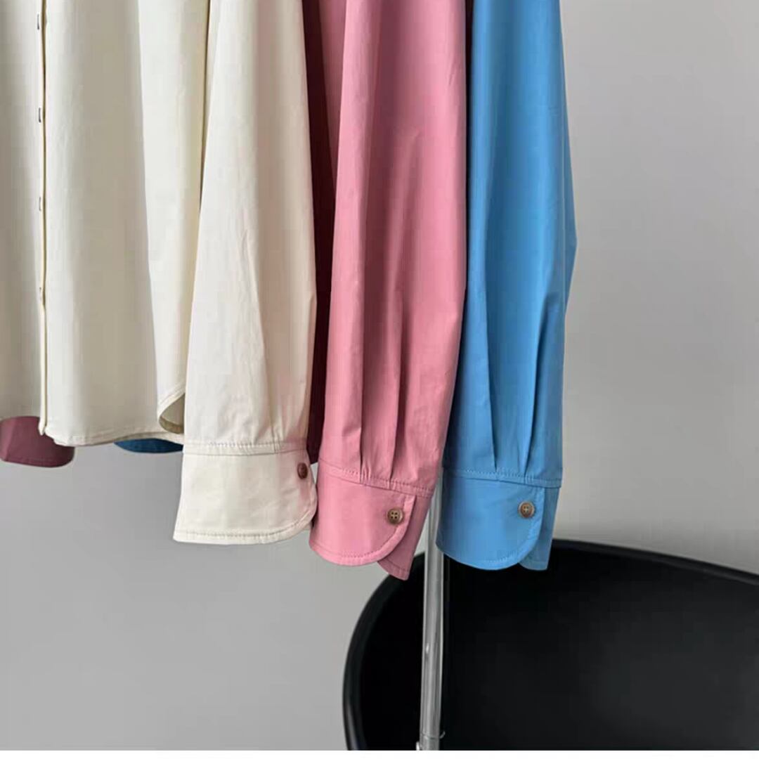丸みのある襟とシンプルなボタンデザインが、ほんのりフェミニンな雰囲気をプラスします。ジャケットやカーディガンのインナーとしても映え、ボトムス次第でカジュアルにもきれいめにも着こなし可能。