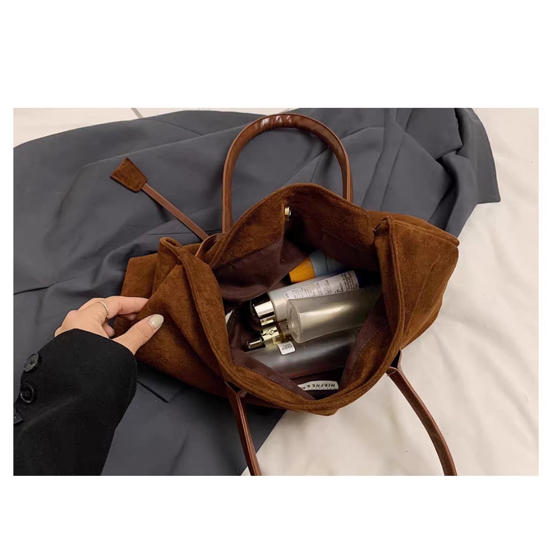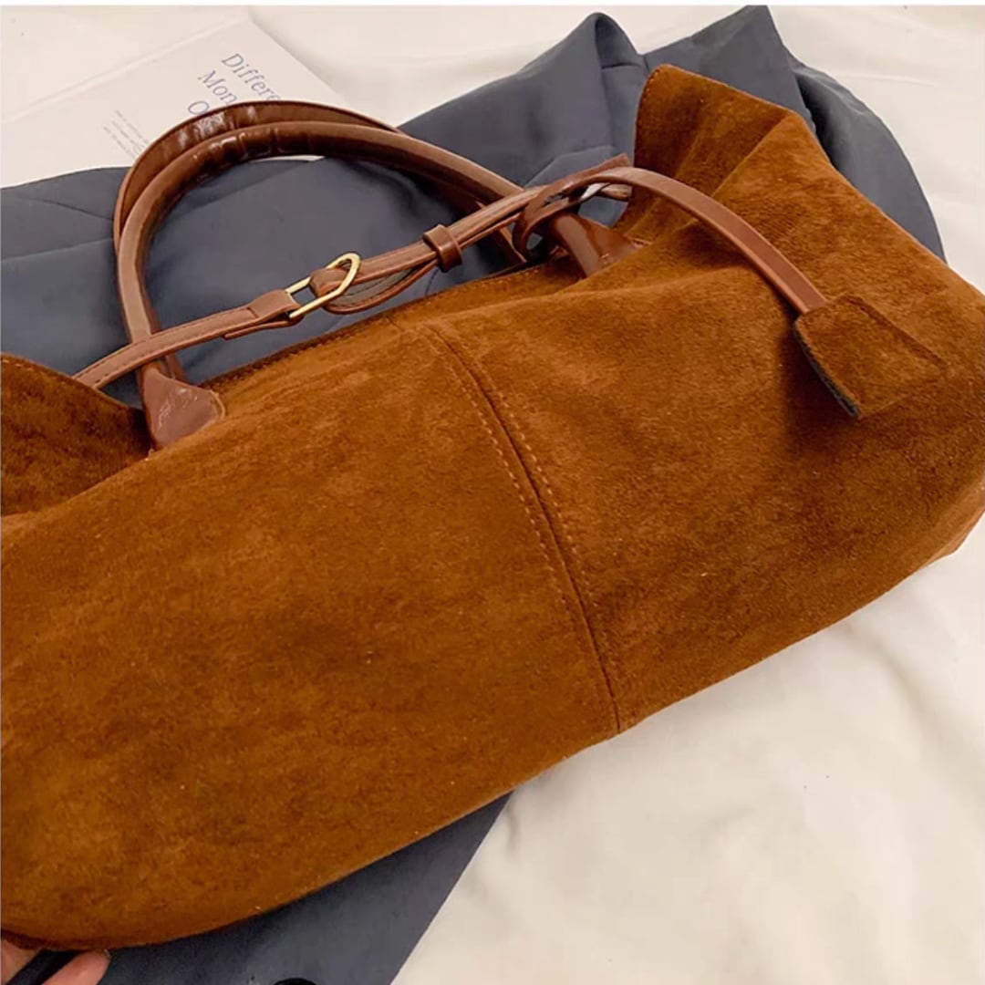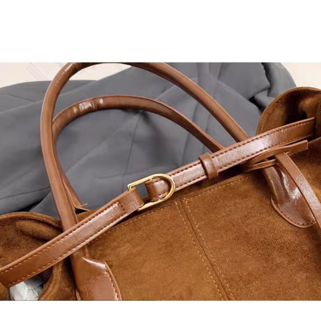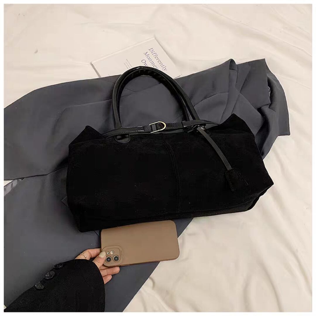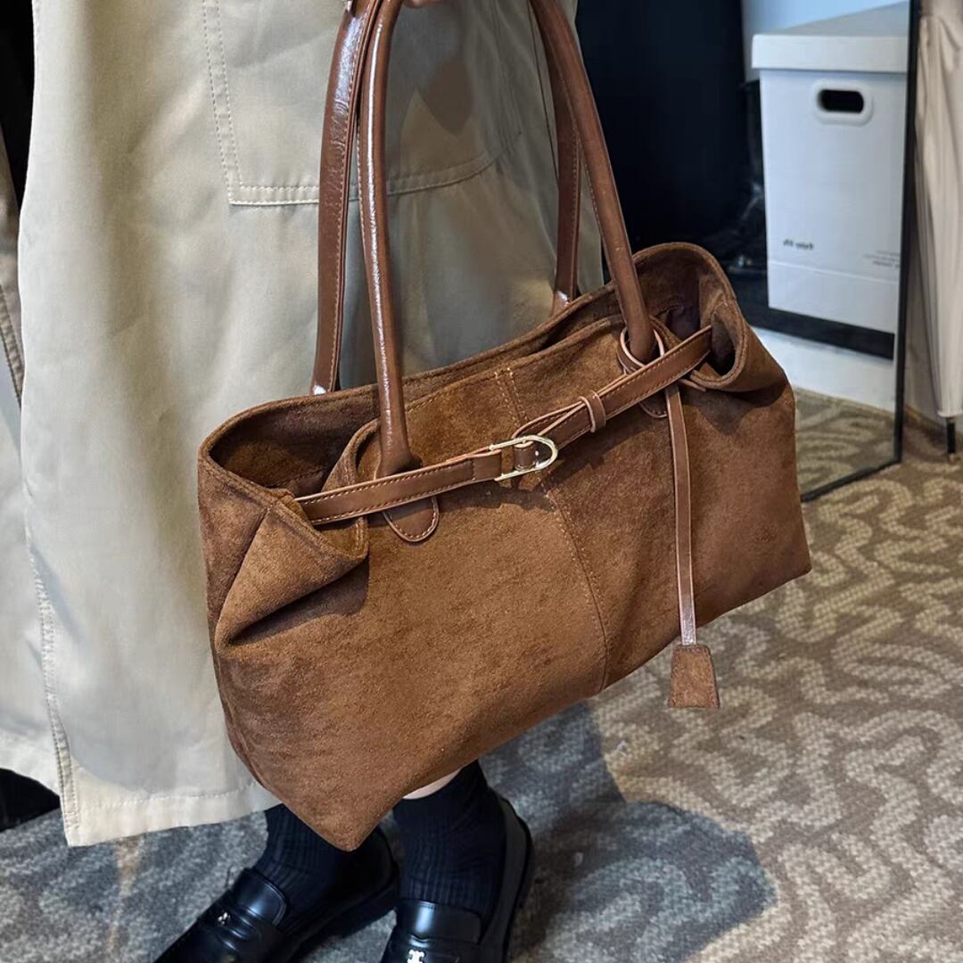 上品なスエード調PU素材で仕立てたショルダーバッグ。