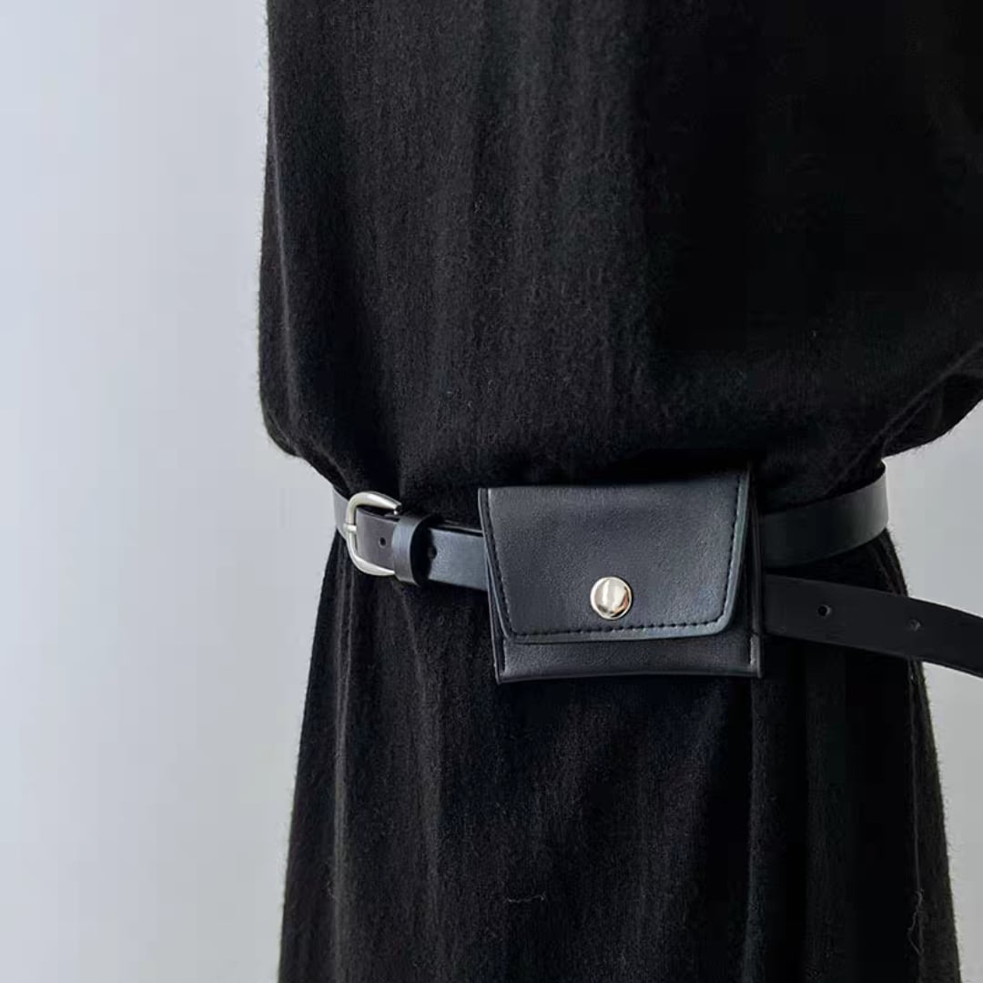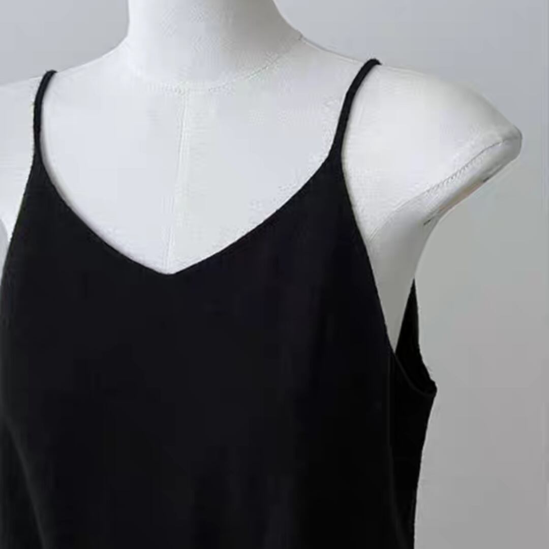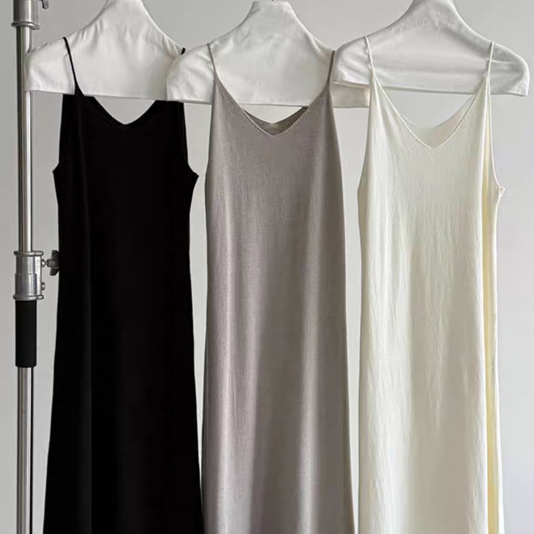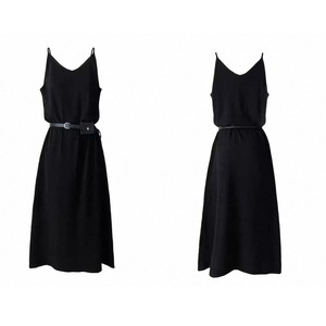 インナーのキャミワンピースはストンと落ちるシルエットで、上品な雰囲気に。ベルトを合わせればウエストマークも可能。