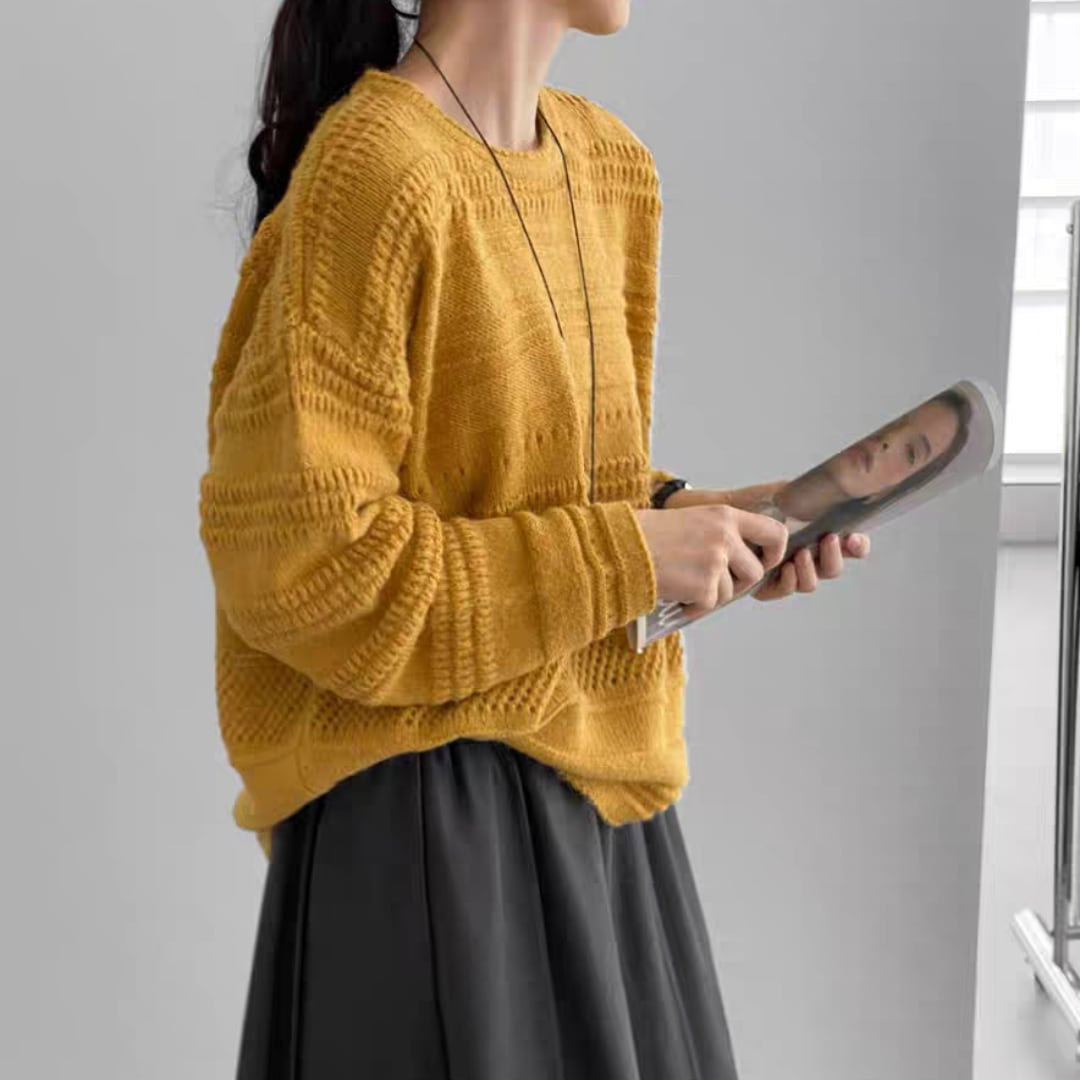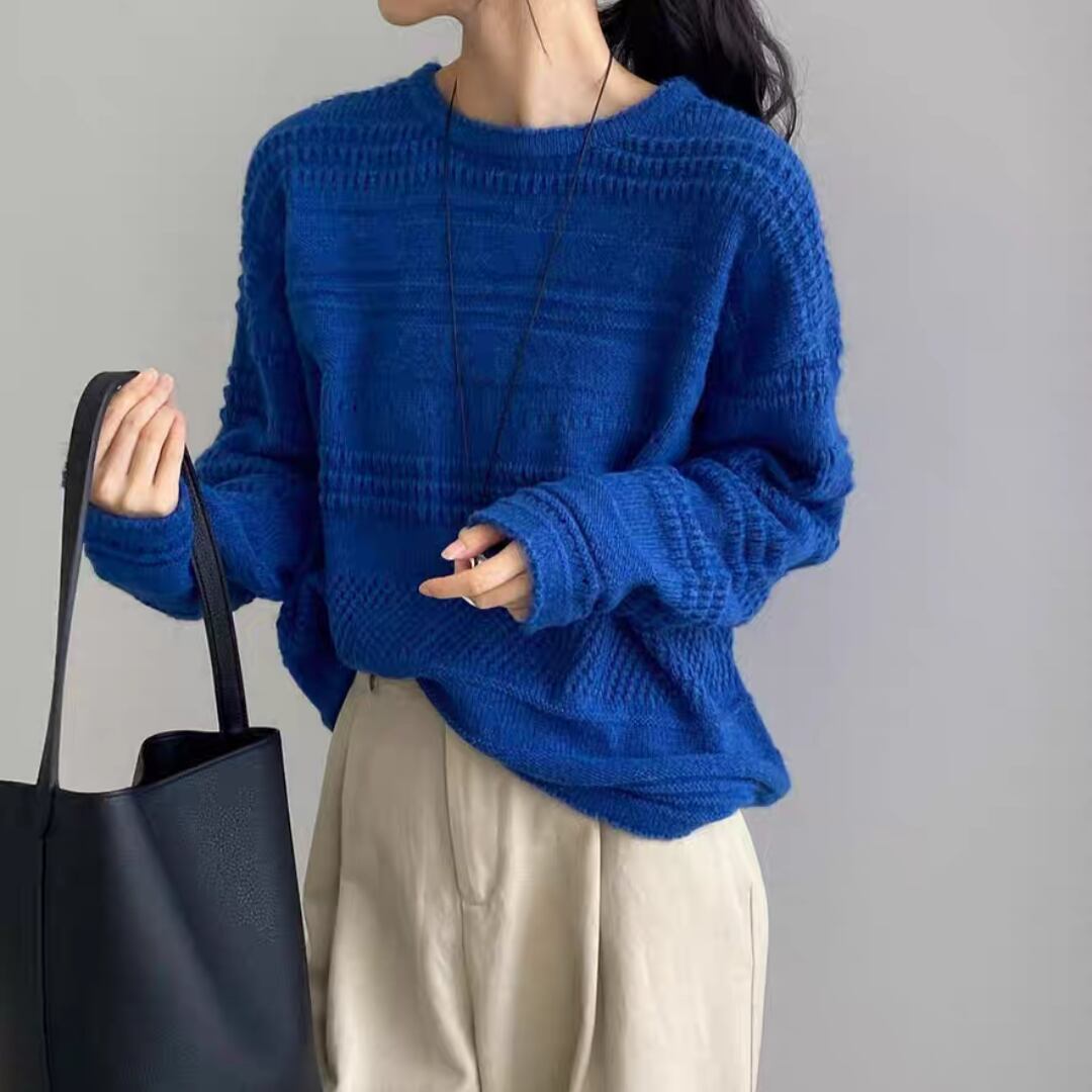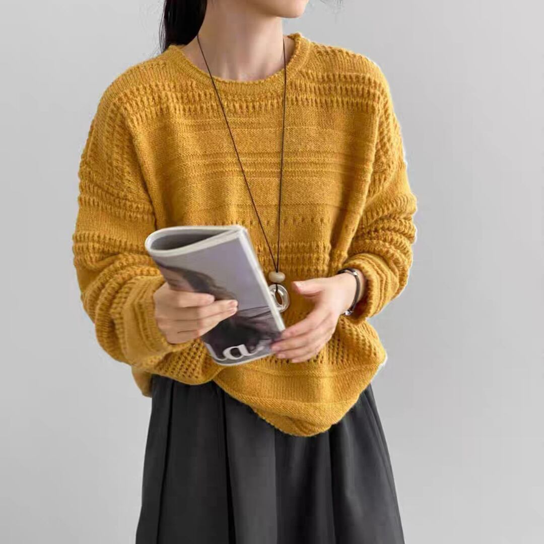 立体感のある編み柄がスタイリングに奥行きを与える、ニットプルオーバー。