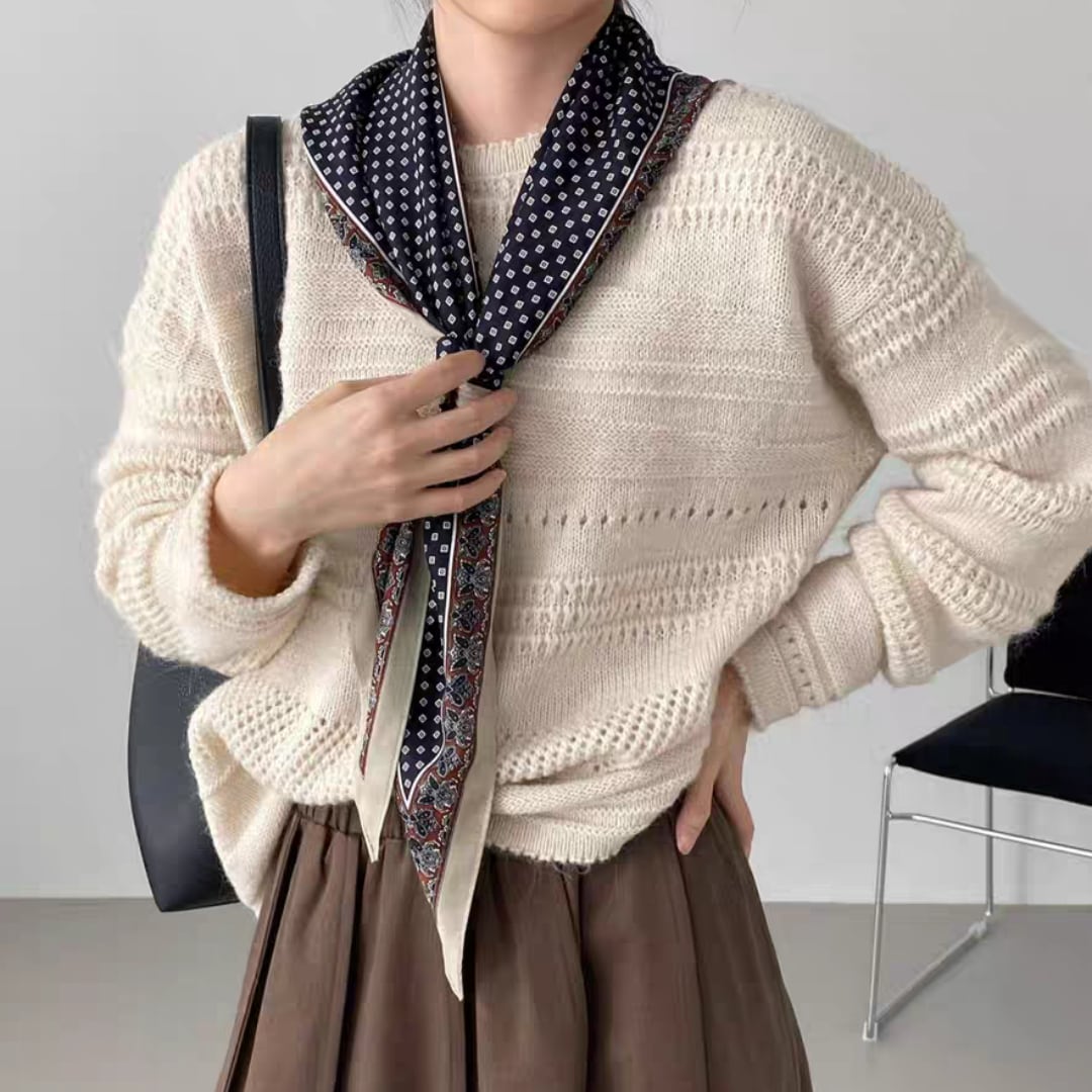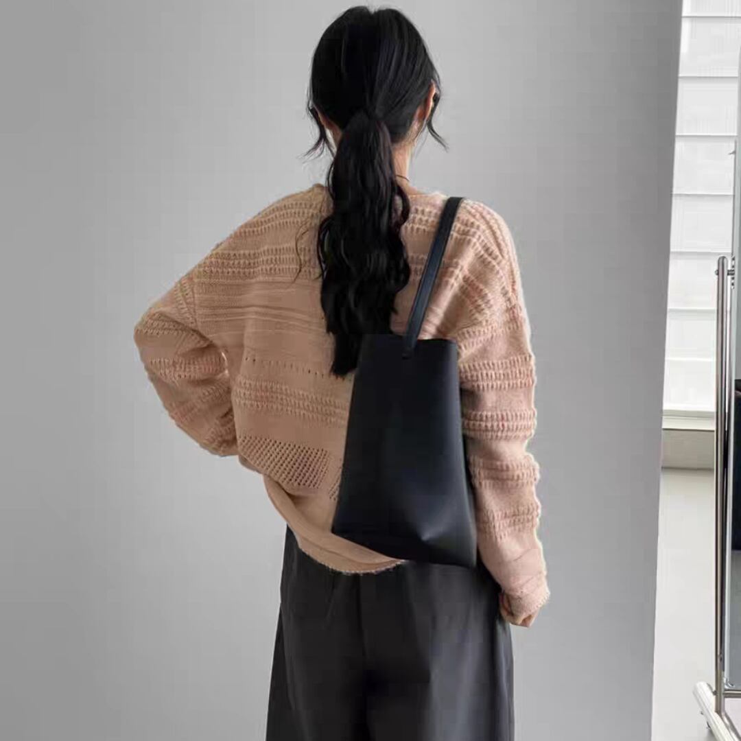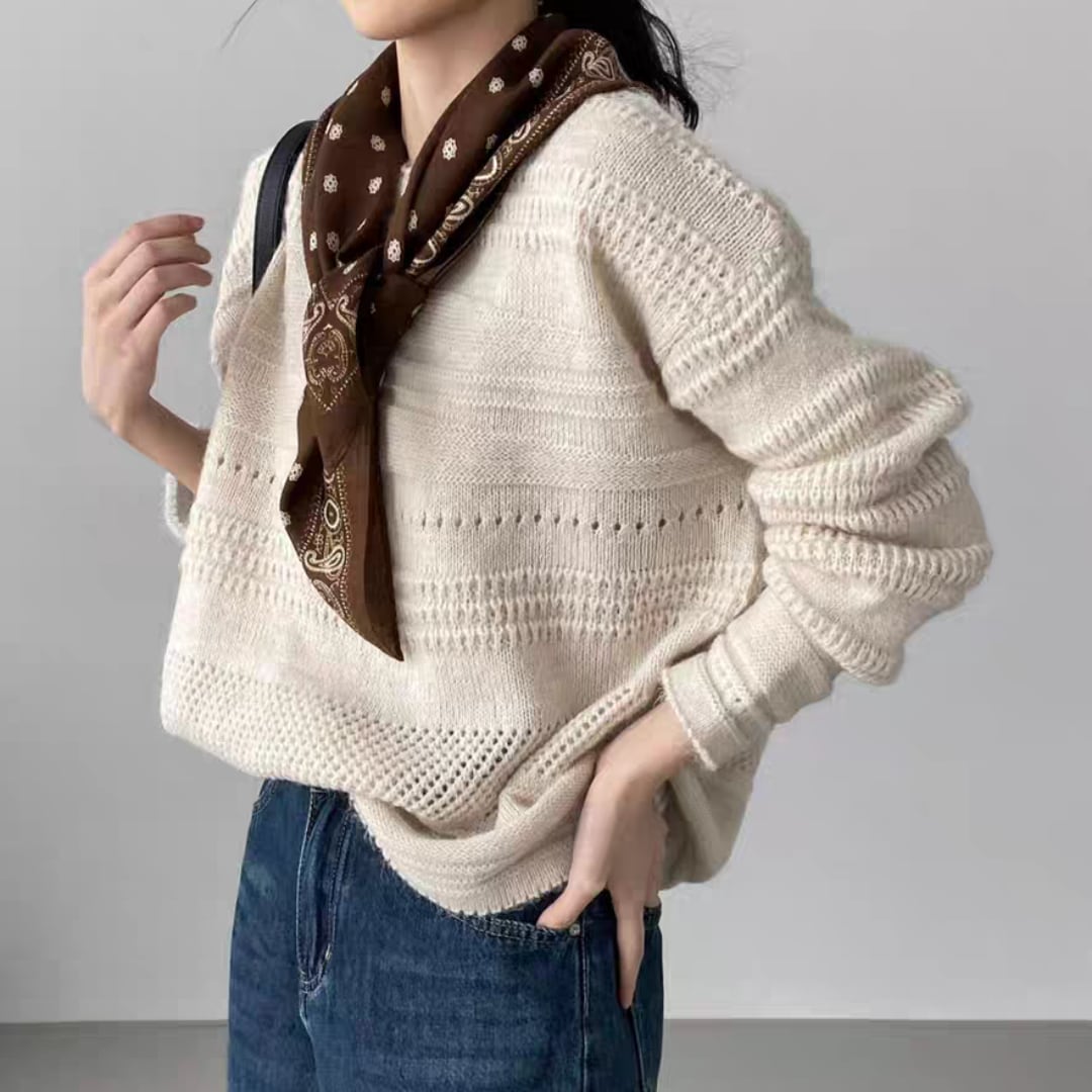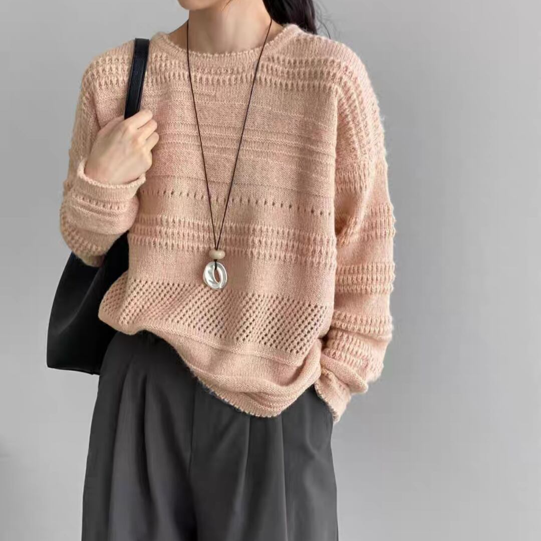 立体感のある編み柄がスタイリングに奥行きを与える、ニットプルオーバー。