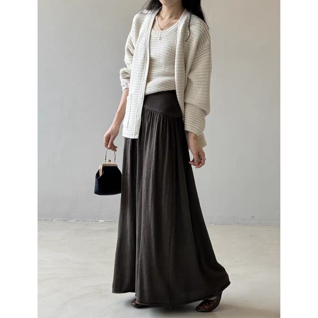 ウールブレンド フレアロングスカート 0249
