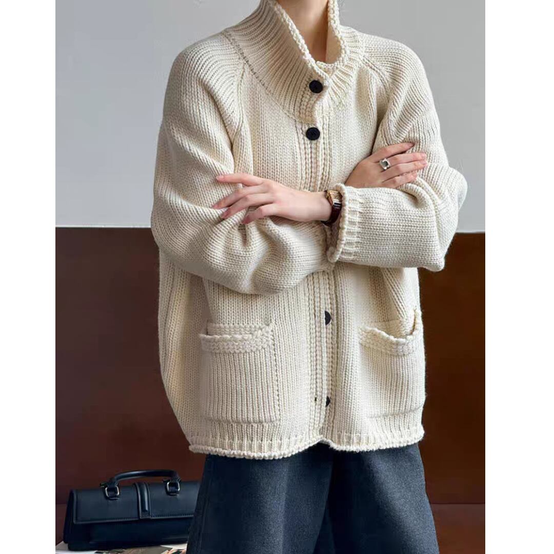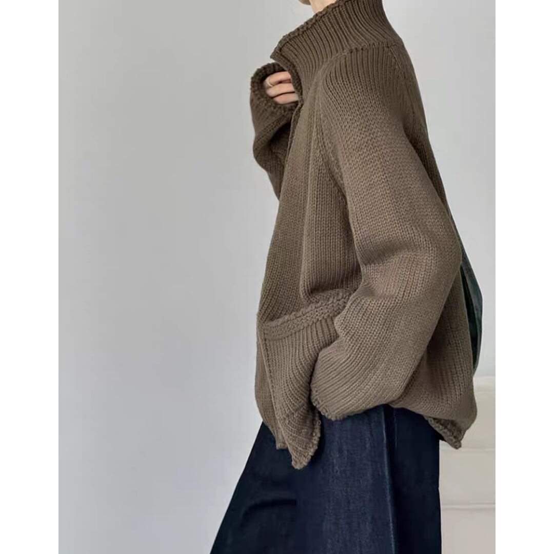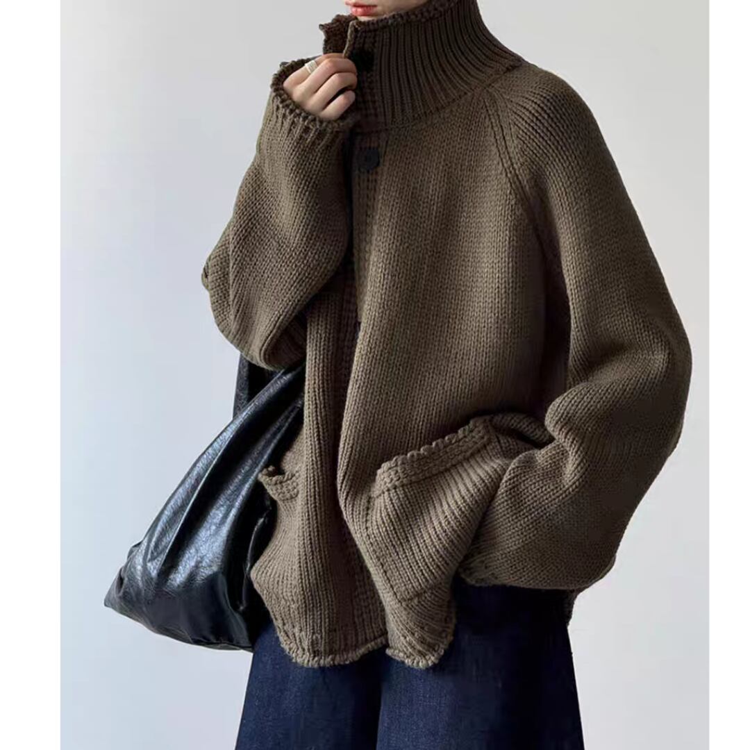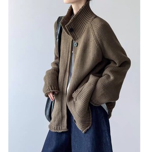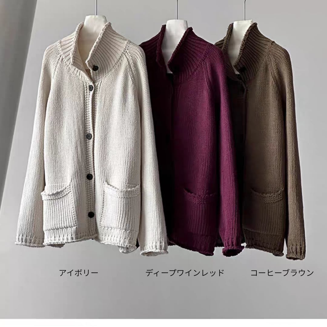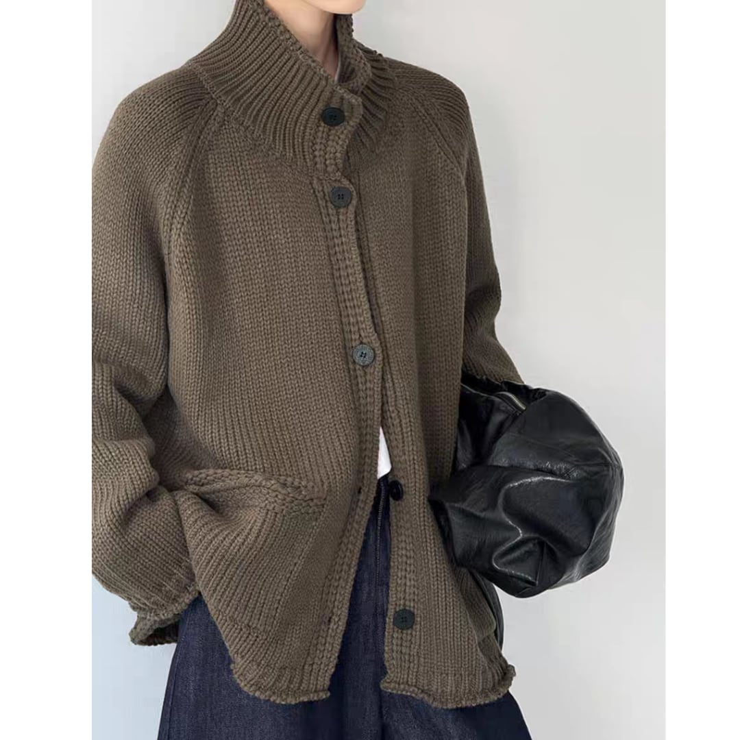 ハイネックボタン ニットカーディガン 0251