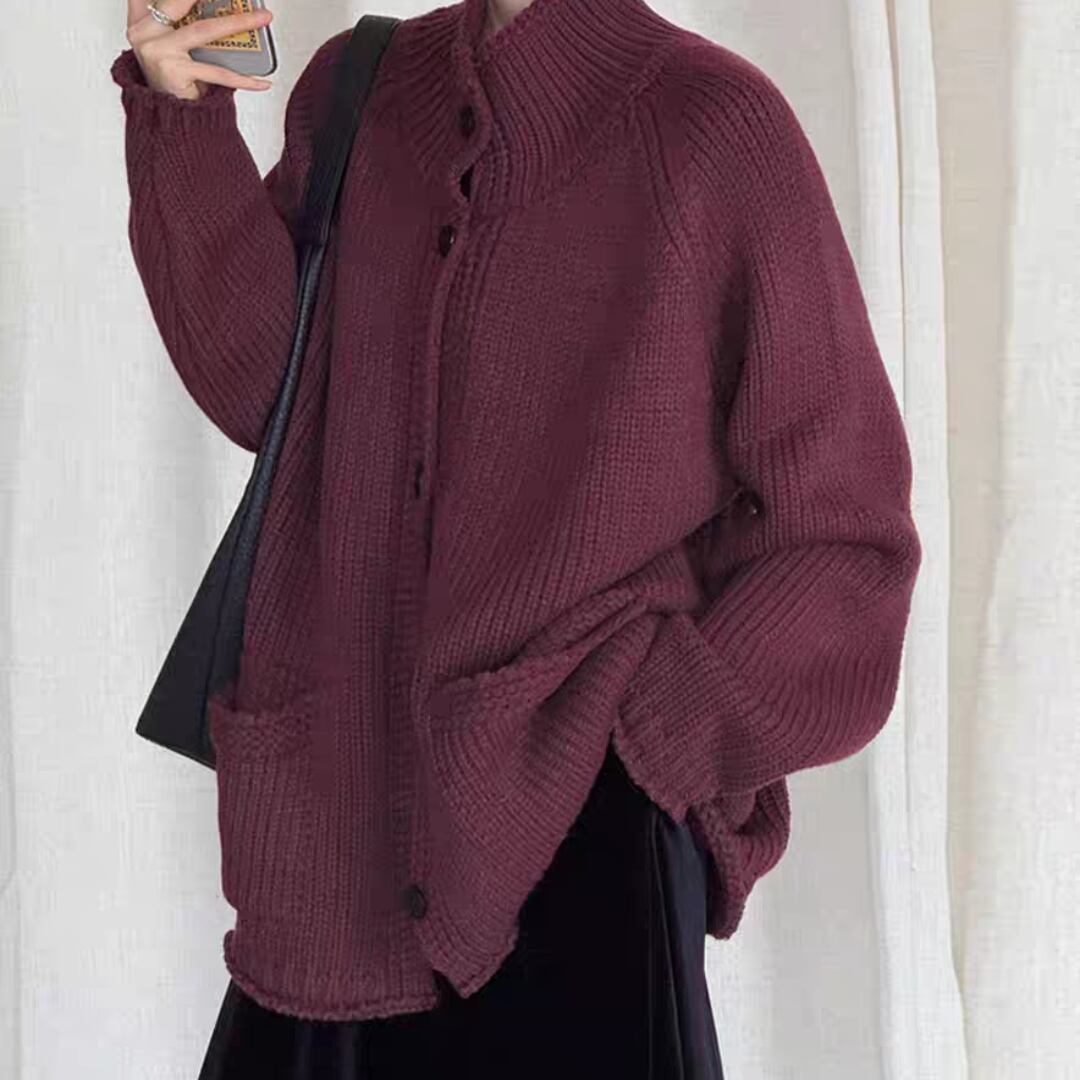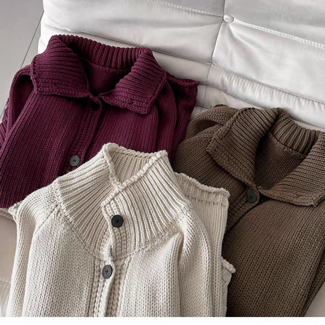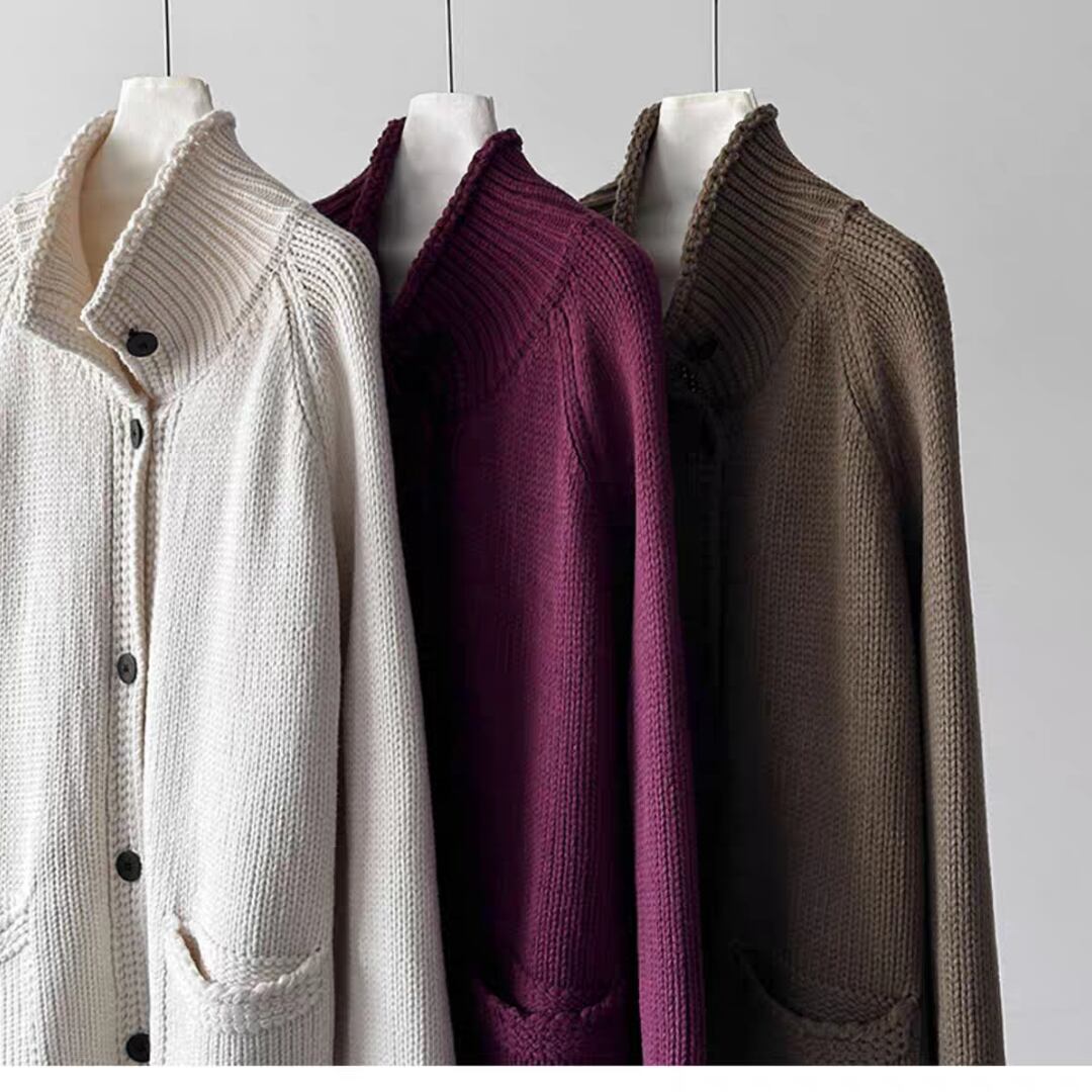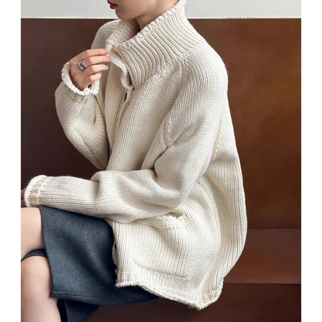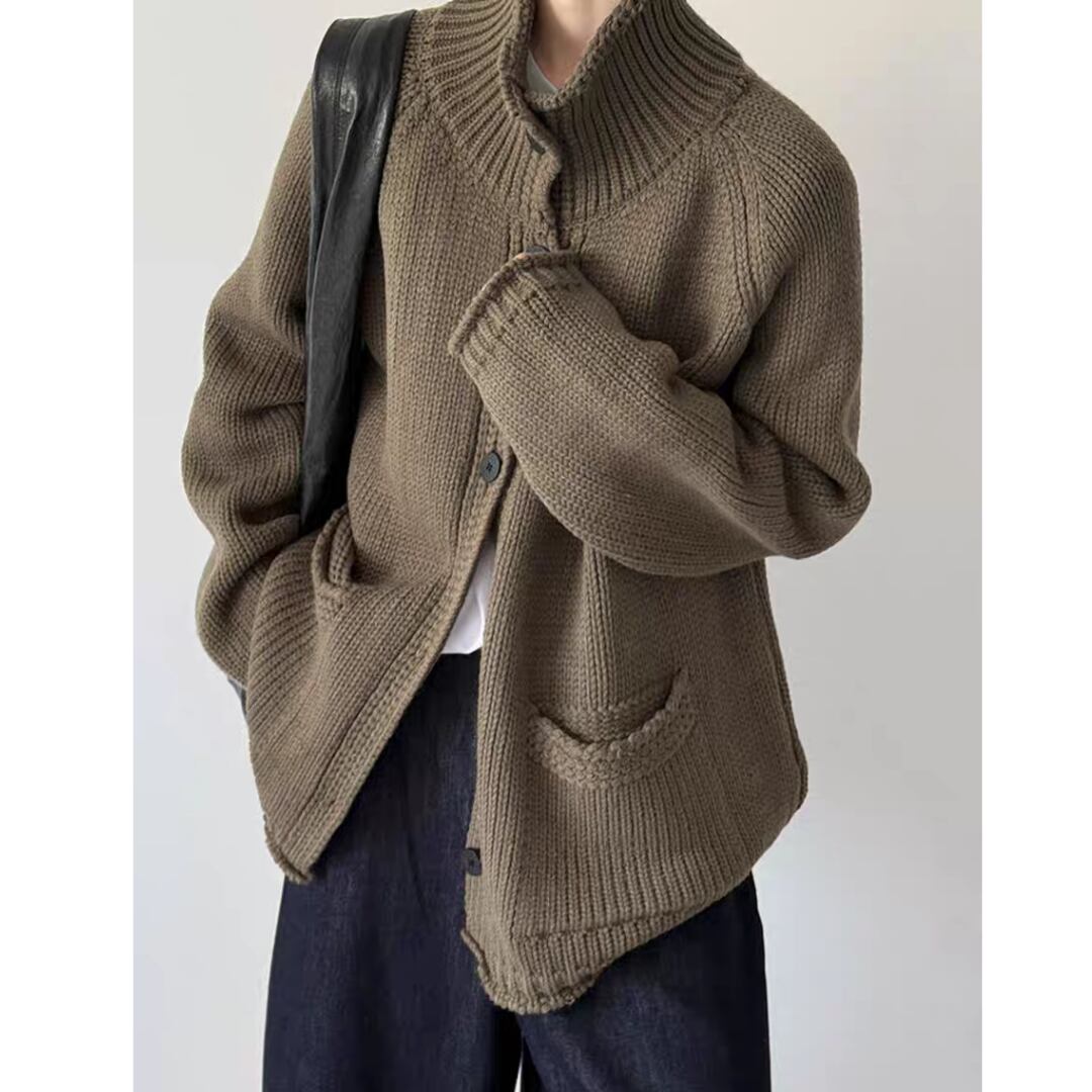 ハイネックボタン ニットカーディガン 0251