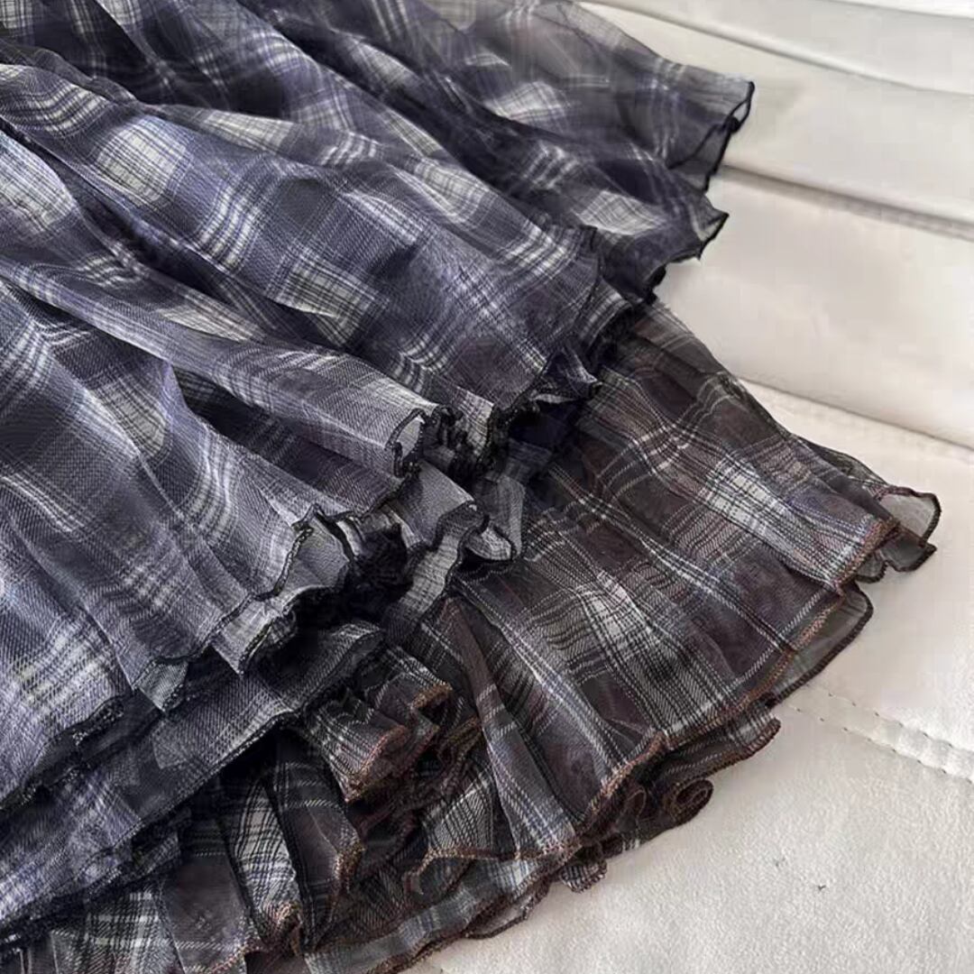動くたびにふんわり揺れるシルエットが女性らしさを引き立て、落ち着いたトーンのチェック柄が上品な印象をプラスします。裏地付きで安心感がありながら、エアリーな質感でシーズンを問わず着用可能。