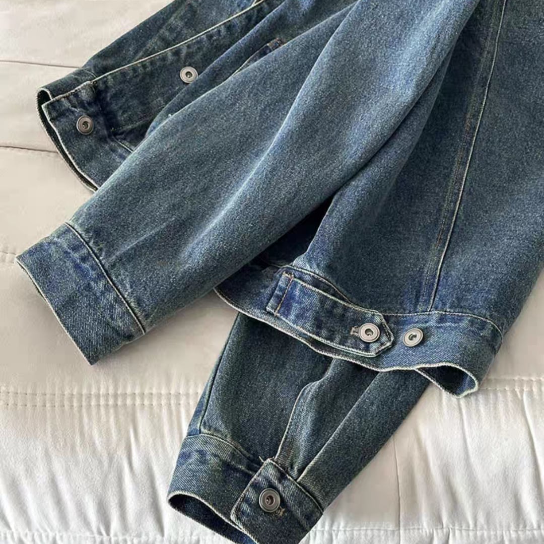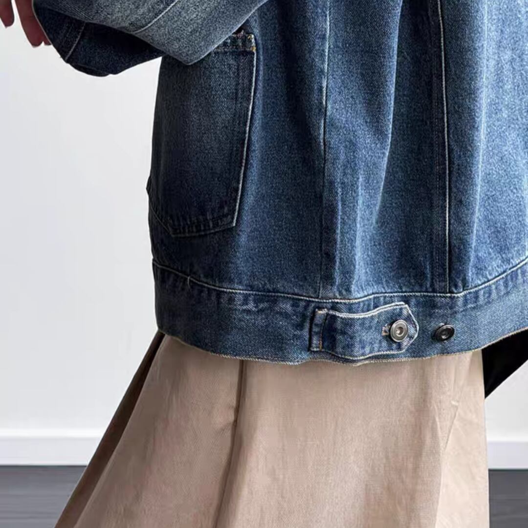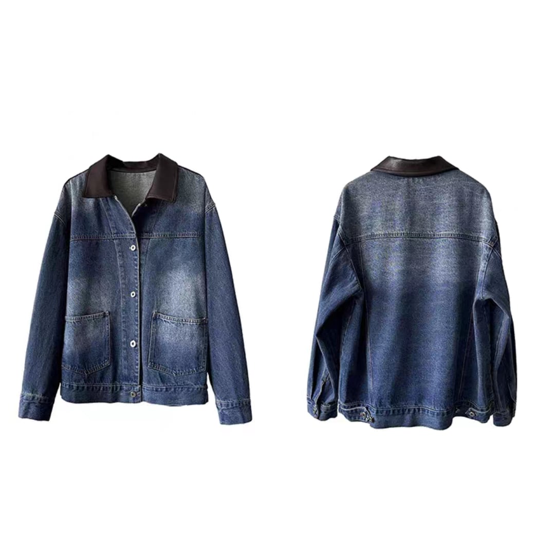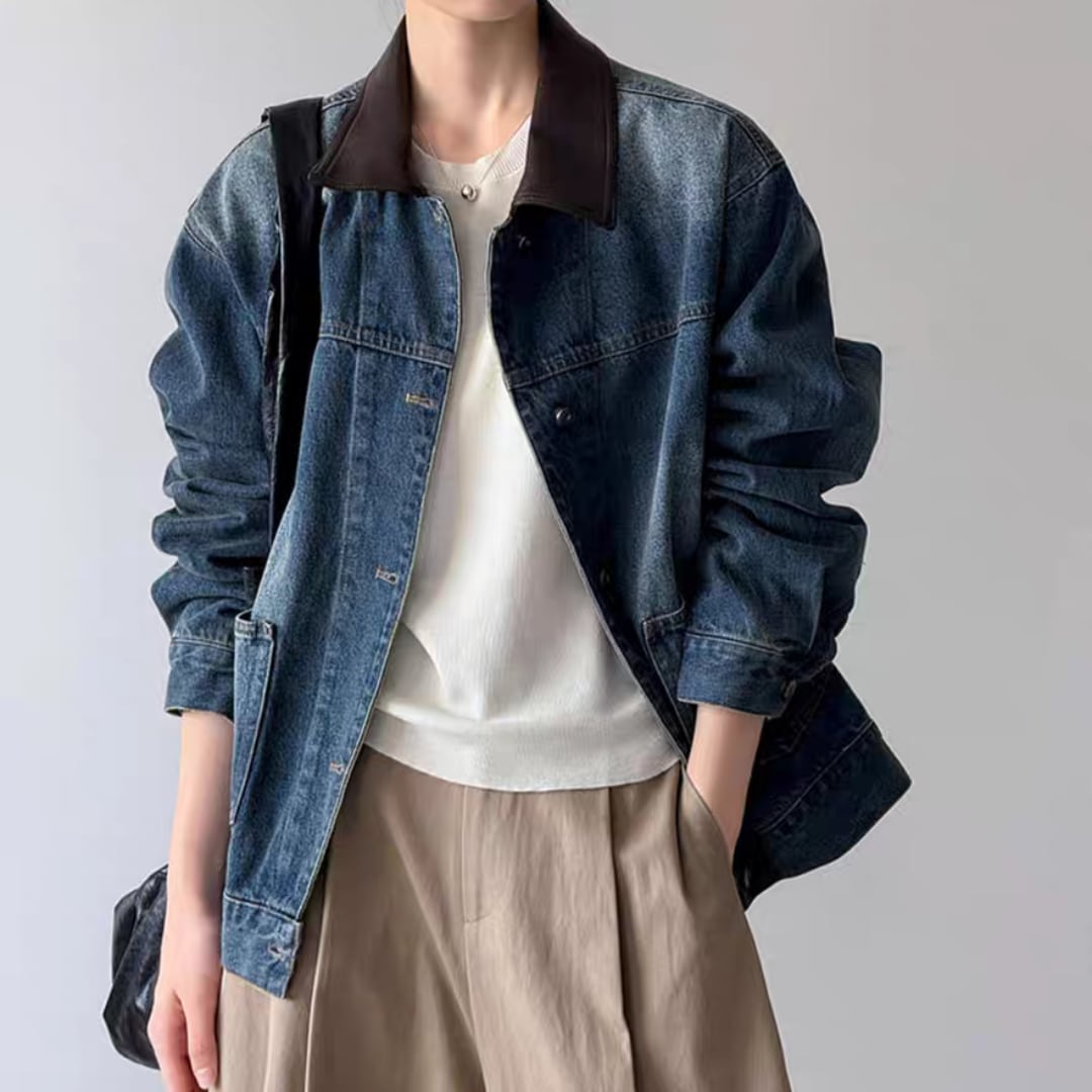 カジュアルなデニムに異素材の襟を組み合わせた、遊び心のあるデニムジャケット。