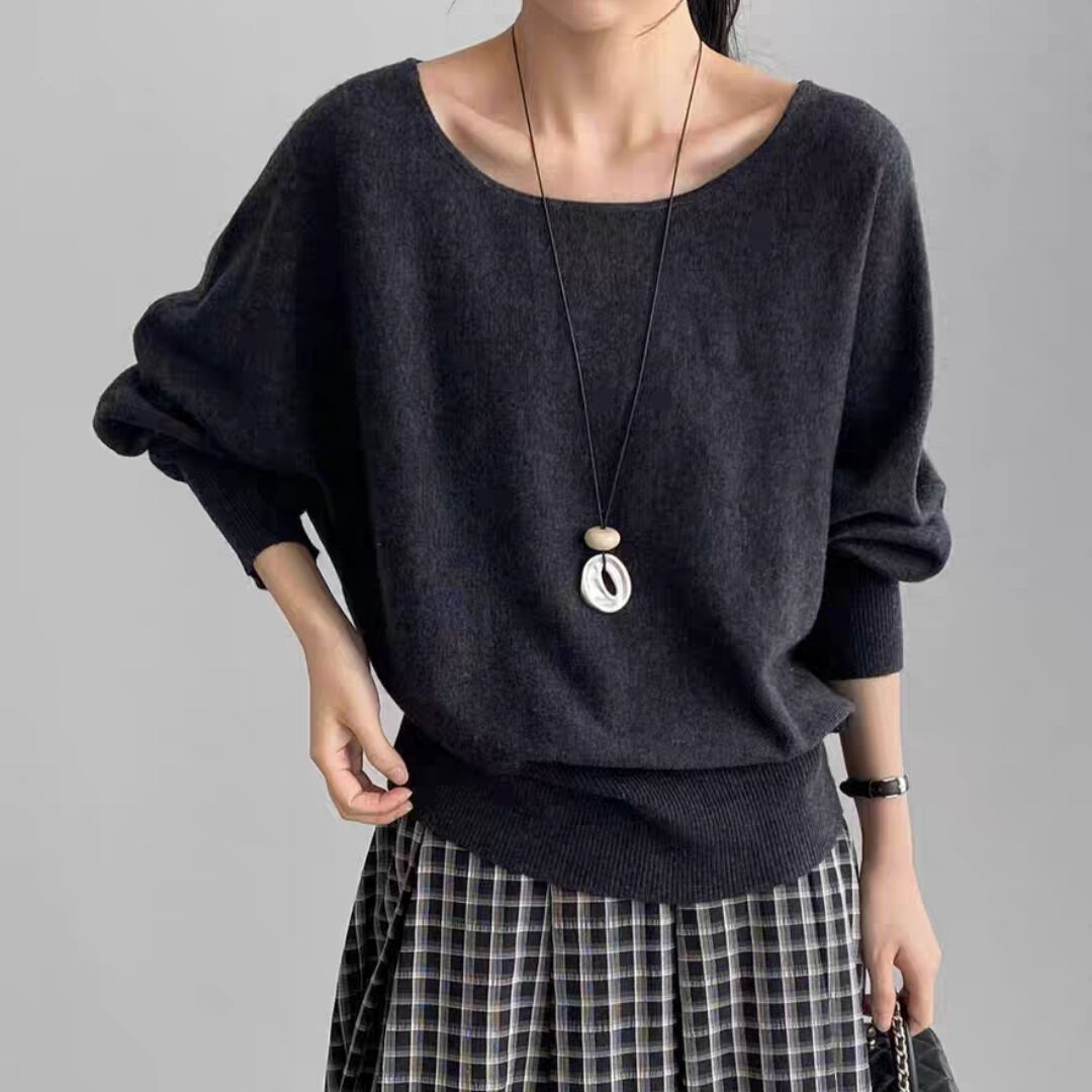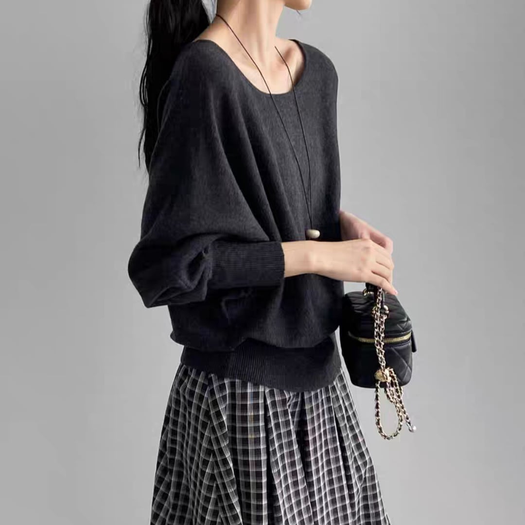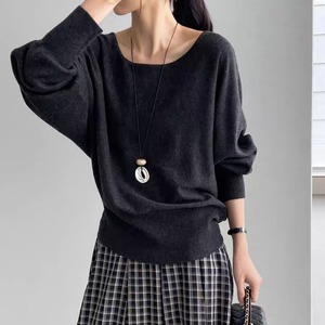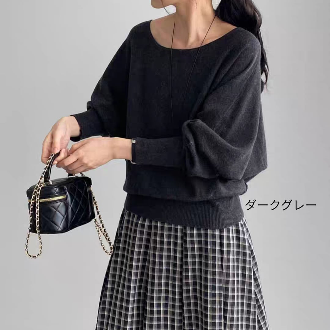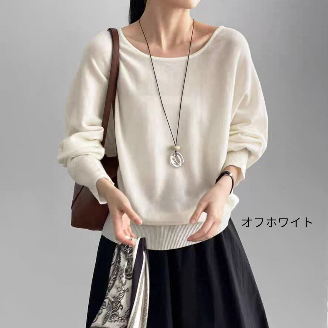 すっきりと開いたボートネックが上品な印象を与えるニットプルオーバー。落ち感のあるシルエットが女性らしさを引き立て、袖口と裾のリブが全体をきちんとまとめます。シンプルながら洗練されたデザインで、スカートにもパンツにも合わせやすく、オンオフ問わず幅広く活躍する一枚です。