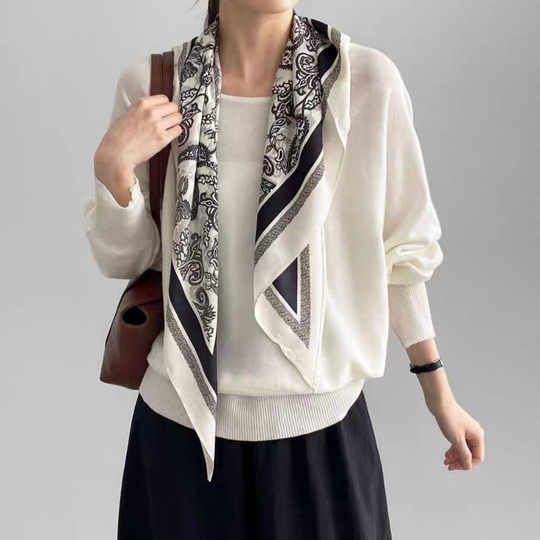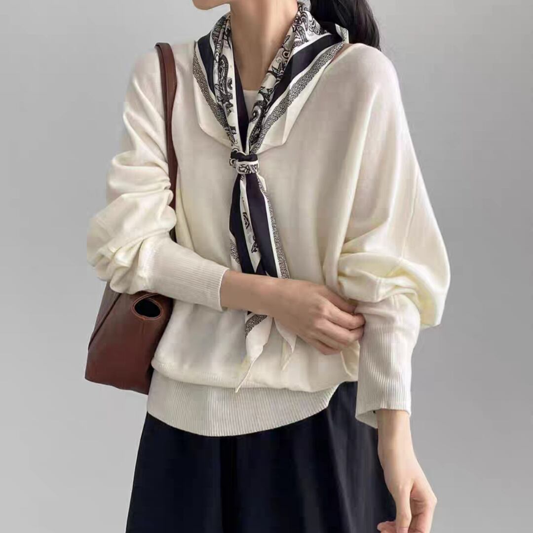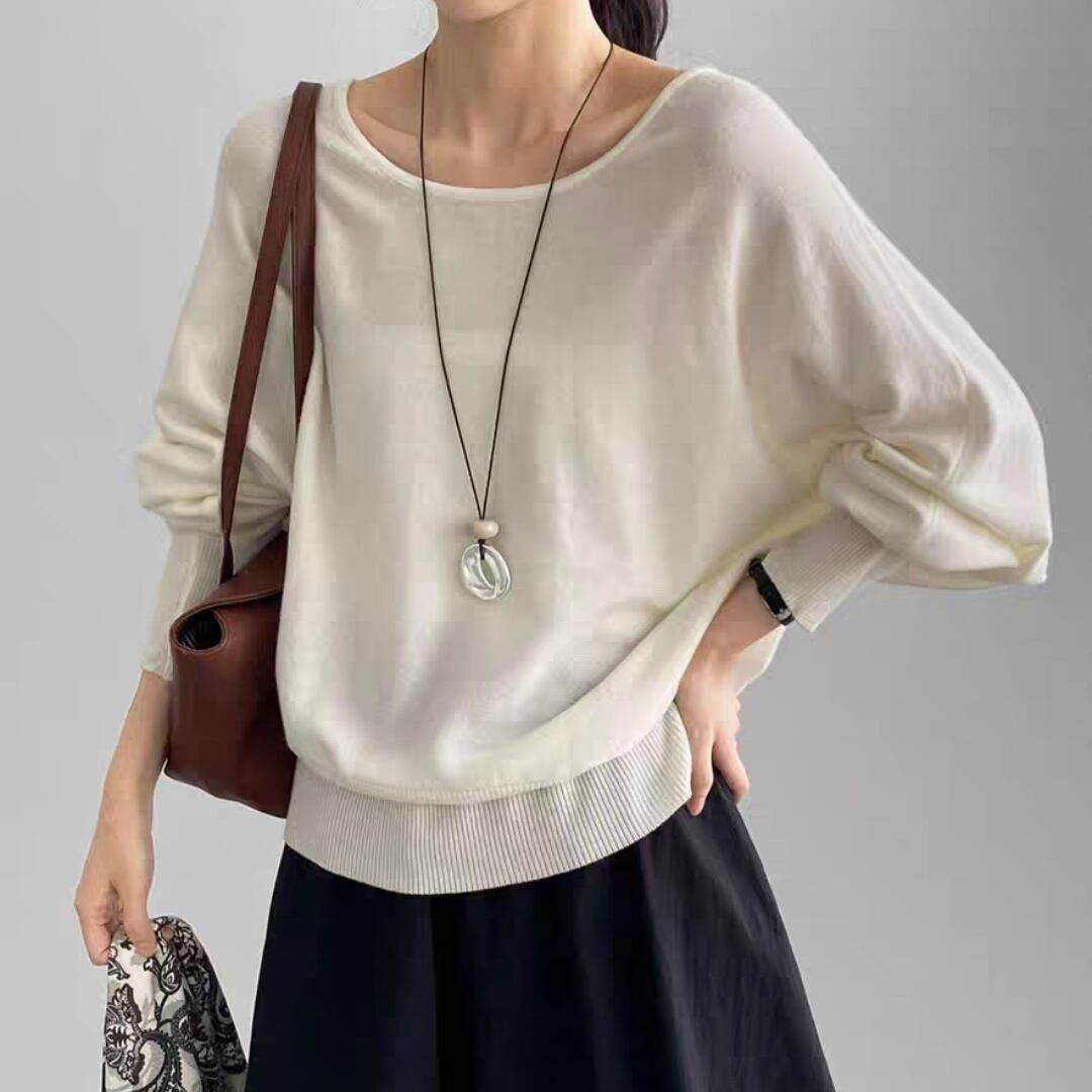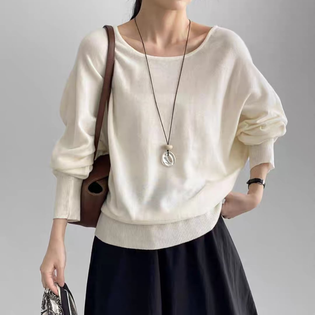 すっきりと開いたボートネックが上品な印象を与えるニットプルオーバー。落ち感のあるシルエットが女性らしさを引き立て、袖口と裾のリブが全体をきちんとまとめます。シンプルながら洗練されたデザインで、スカートにもパンツにも合わせやすく、オンオフ問わず幅広く活躍する一枚です。
