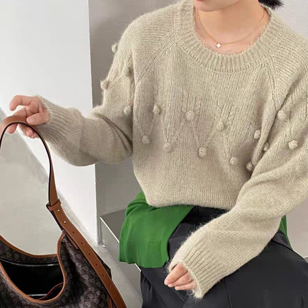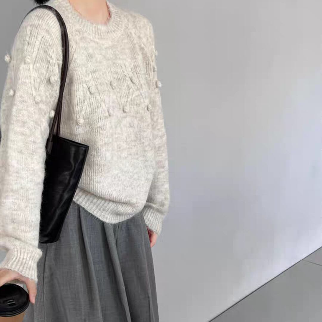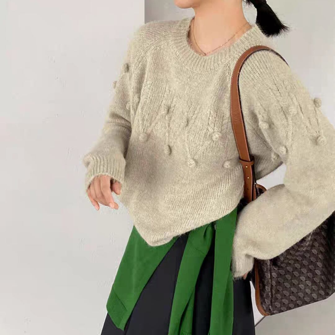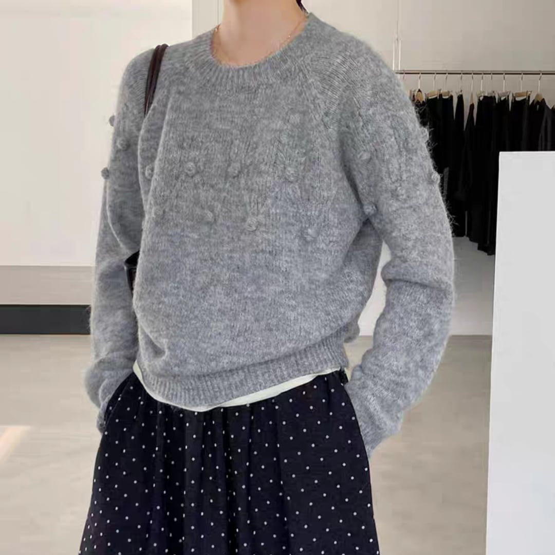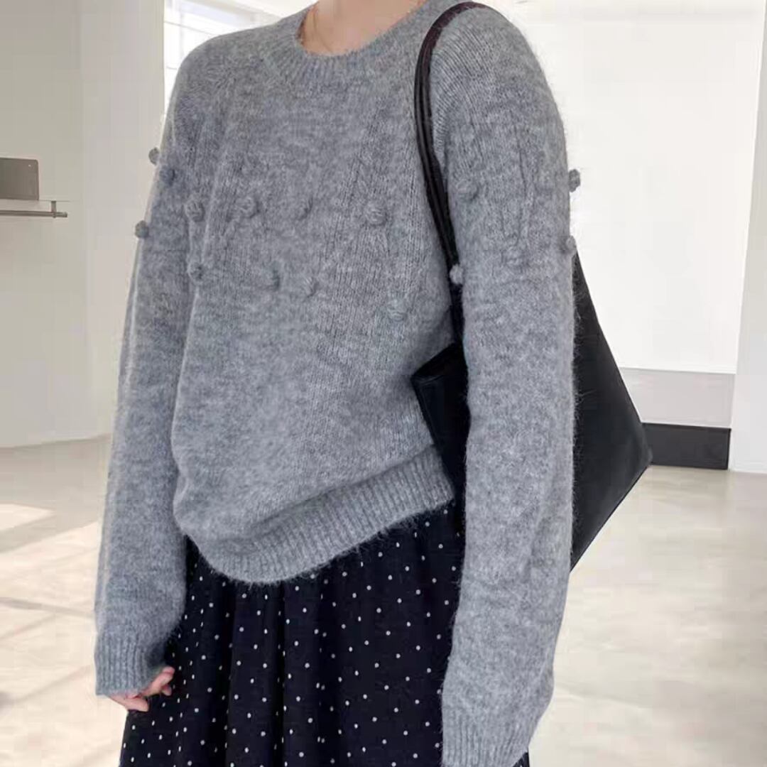 ふんわりとした編地に立体感のあるポップコーン編みを施した、大人可愛いニットプルオーバー。