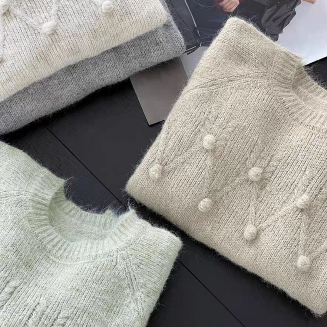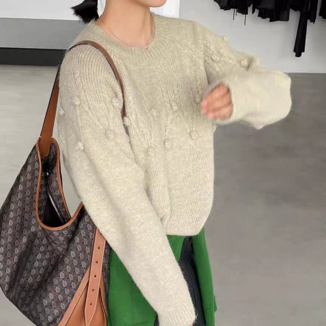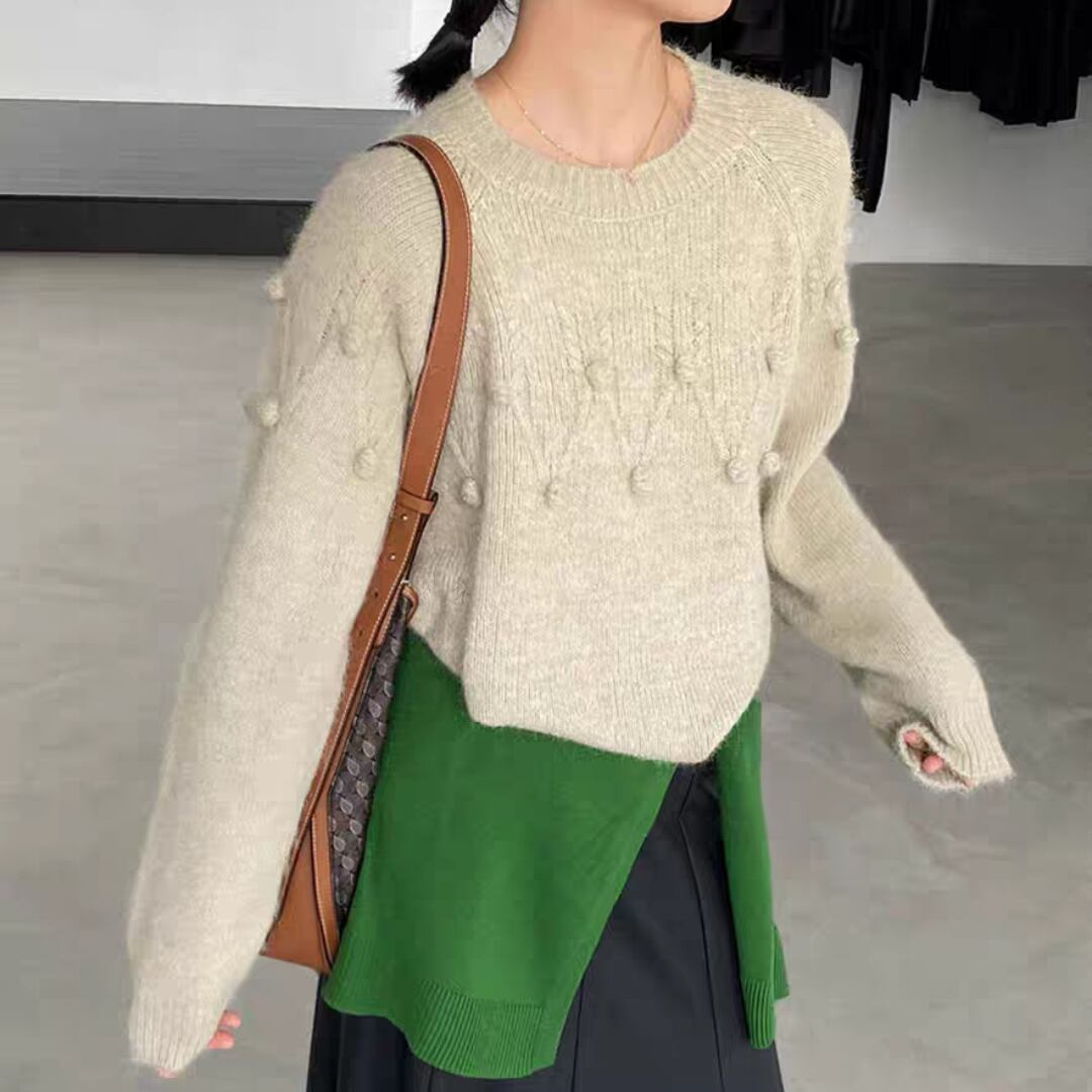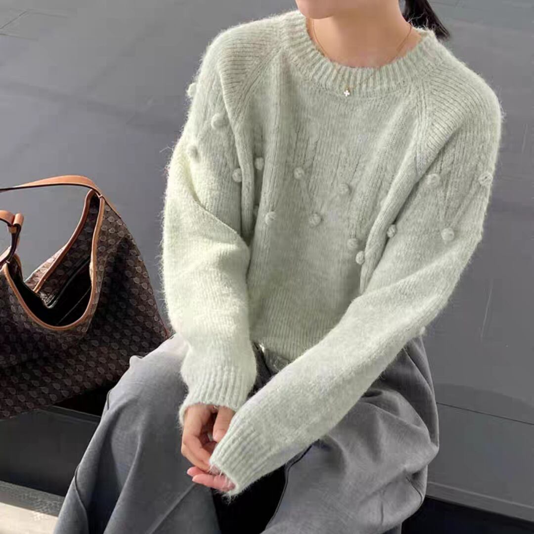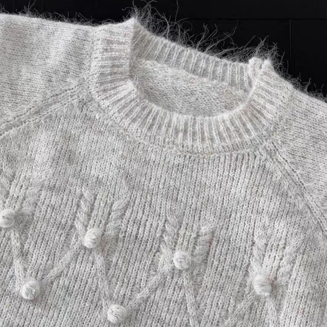 ふんわりとした編地に立体感のあるポップコーン編みを施した、大人可愛いニットプルオーバー。