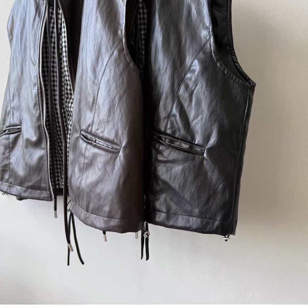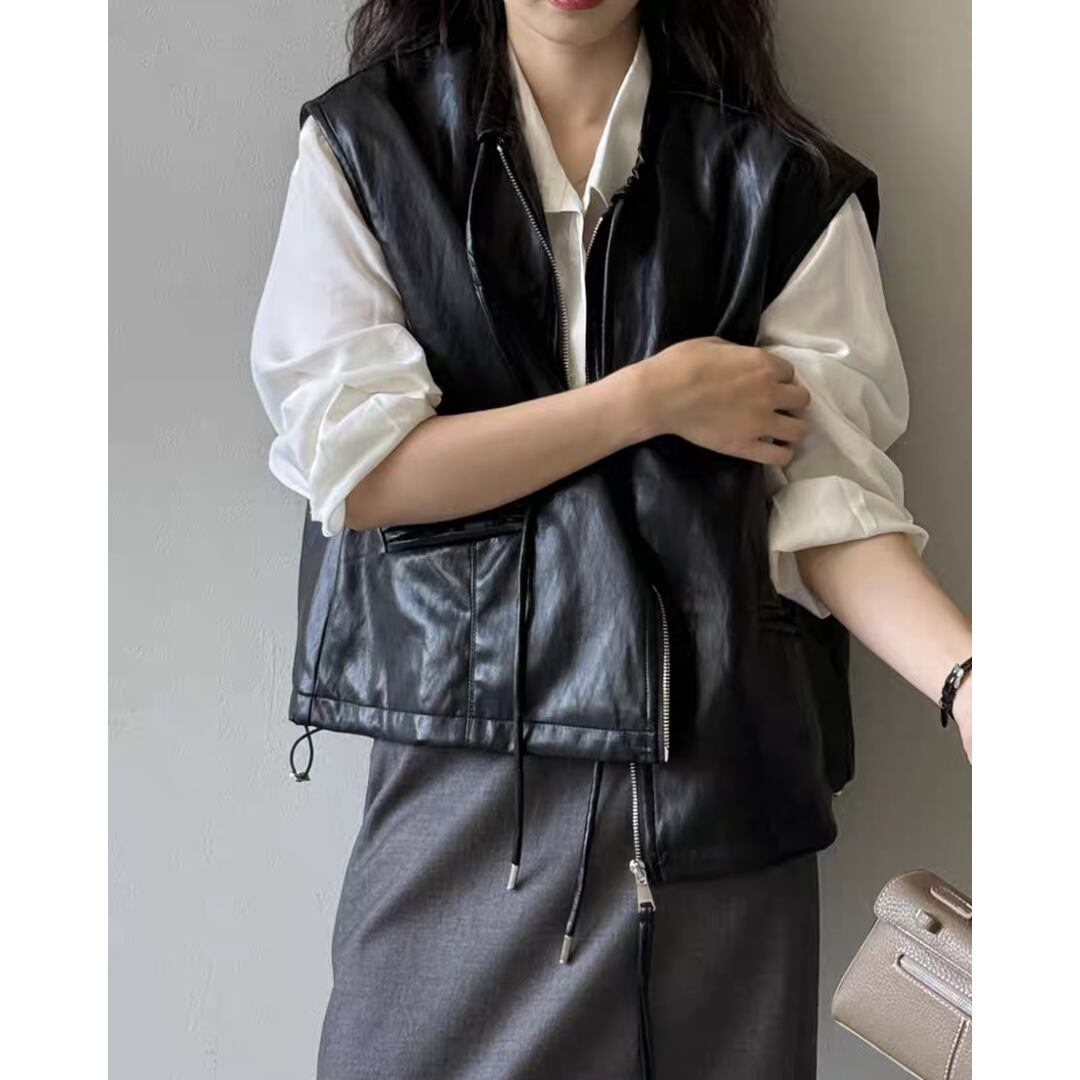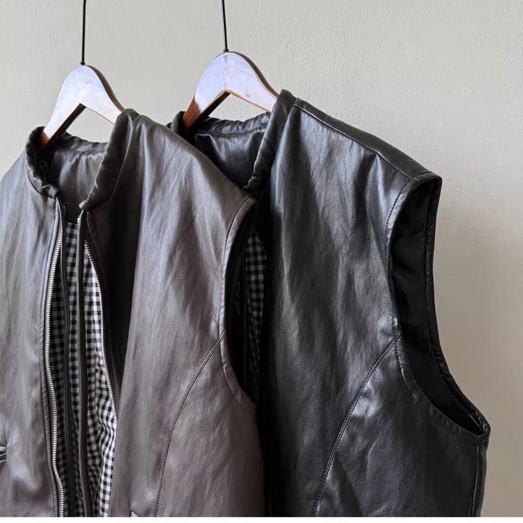 シンプルながら存在感のあるPUレザーベスト。