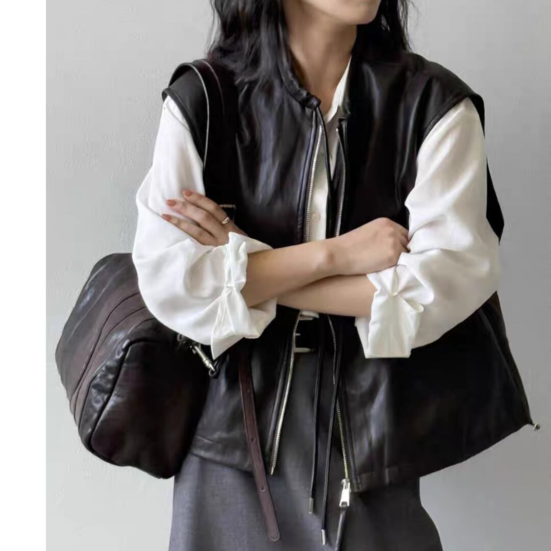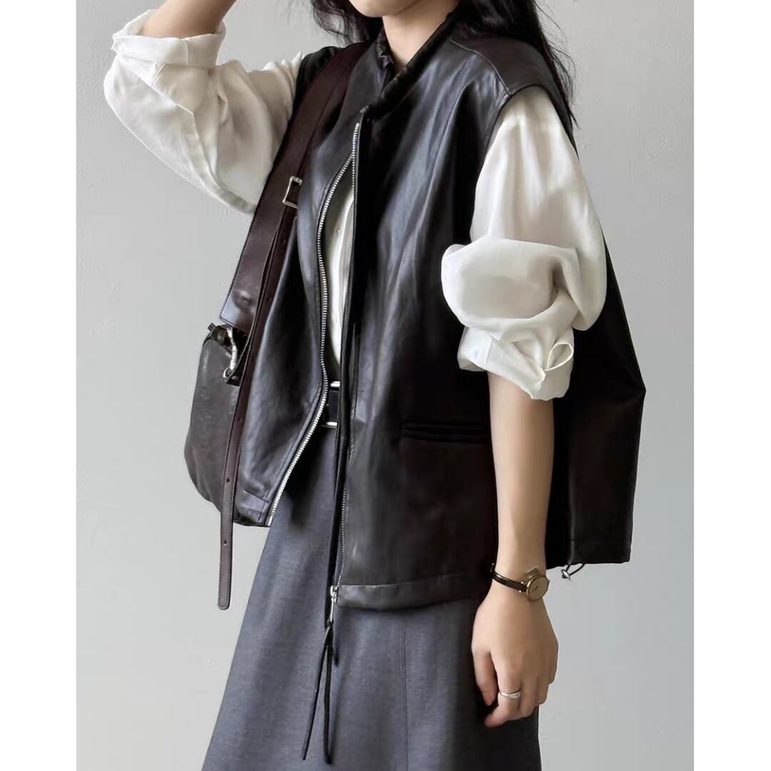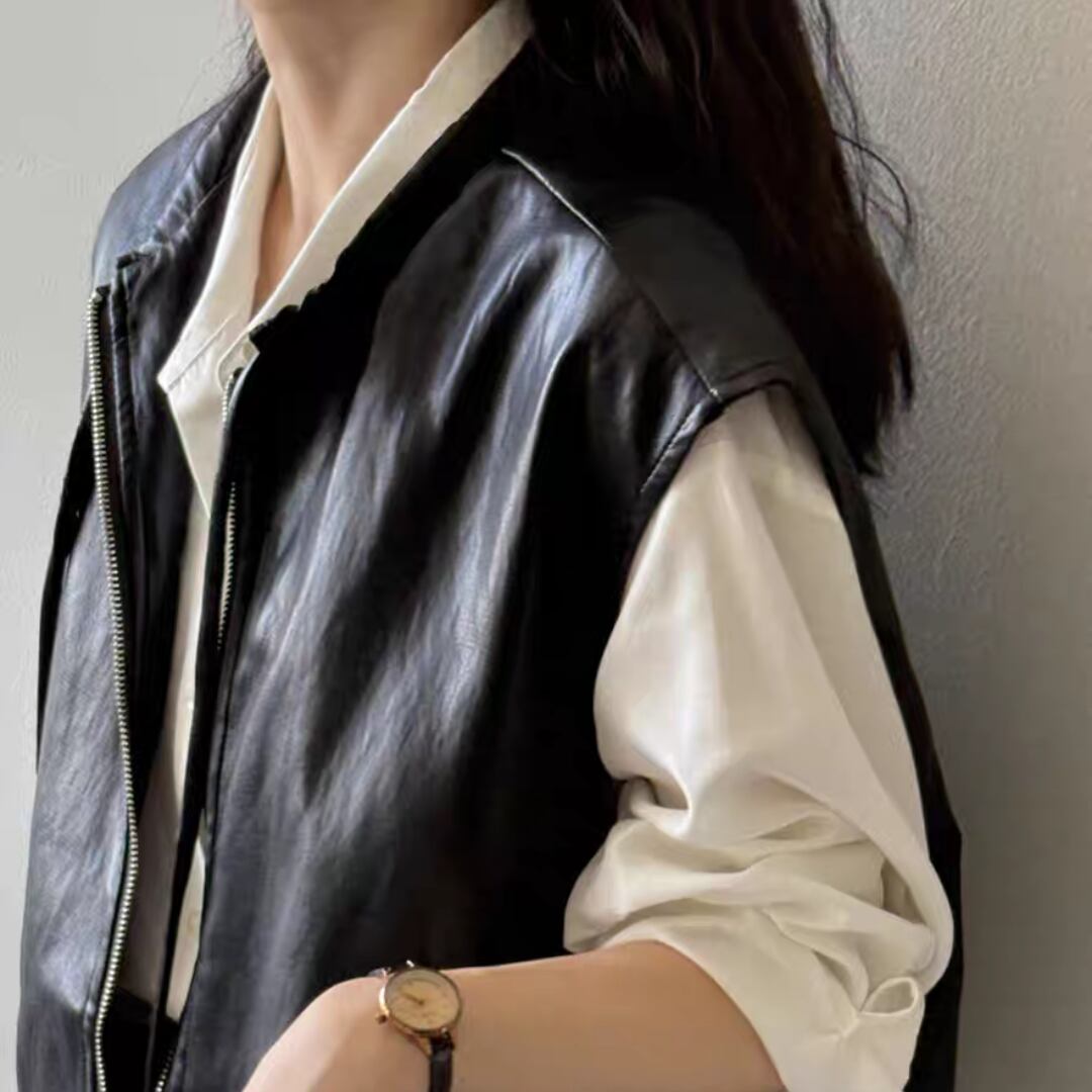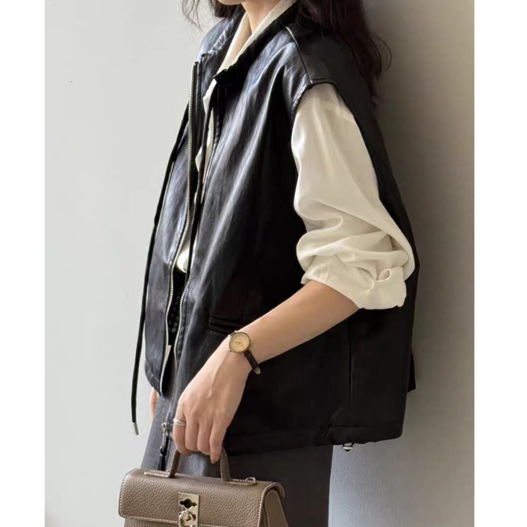 シンプルながら存在感のあるPUレザーベスト。