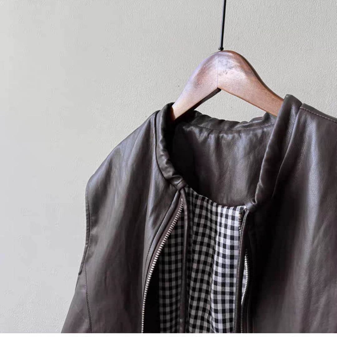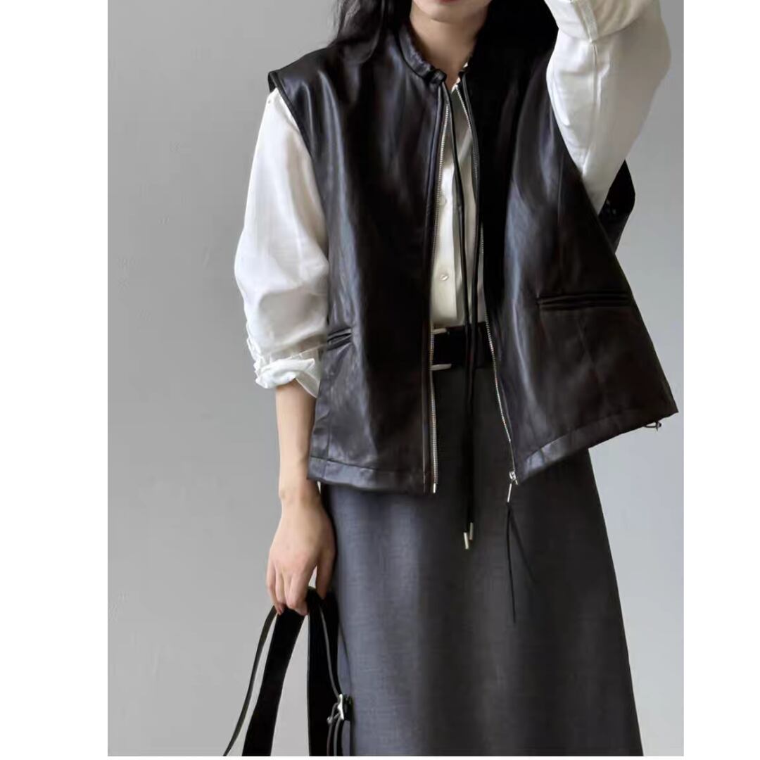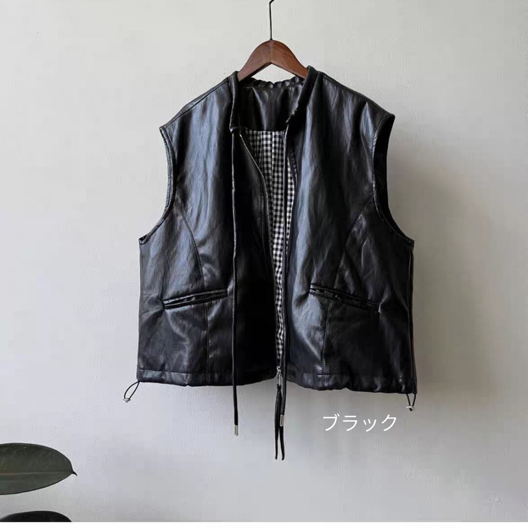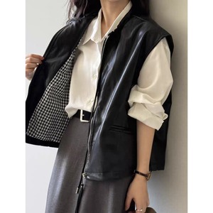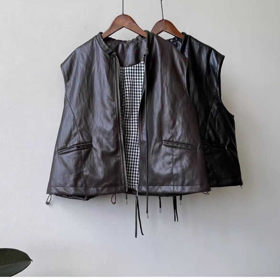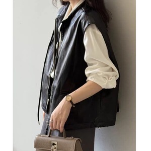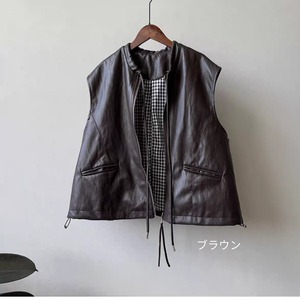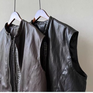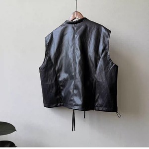 PUレザーノーカラーベスト 0278