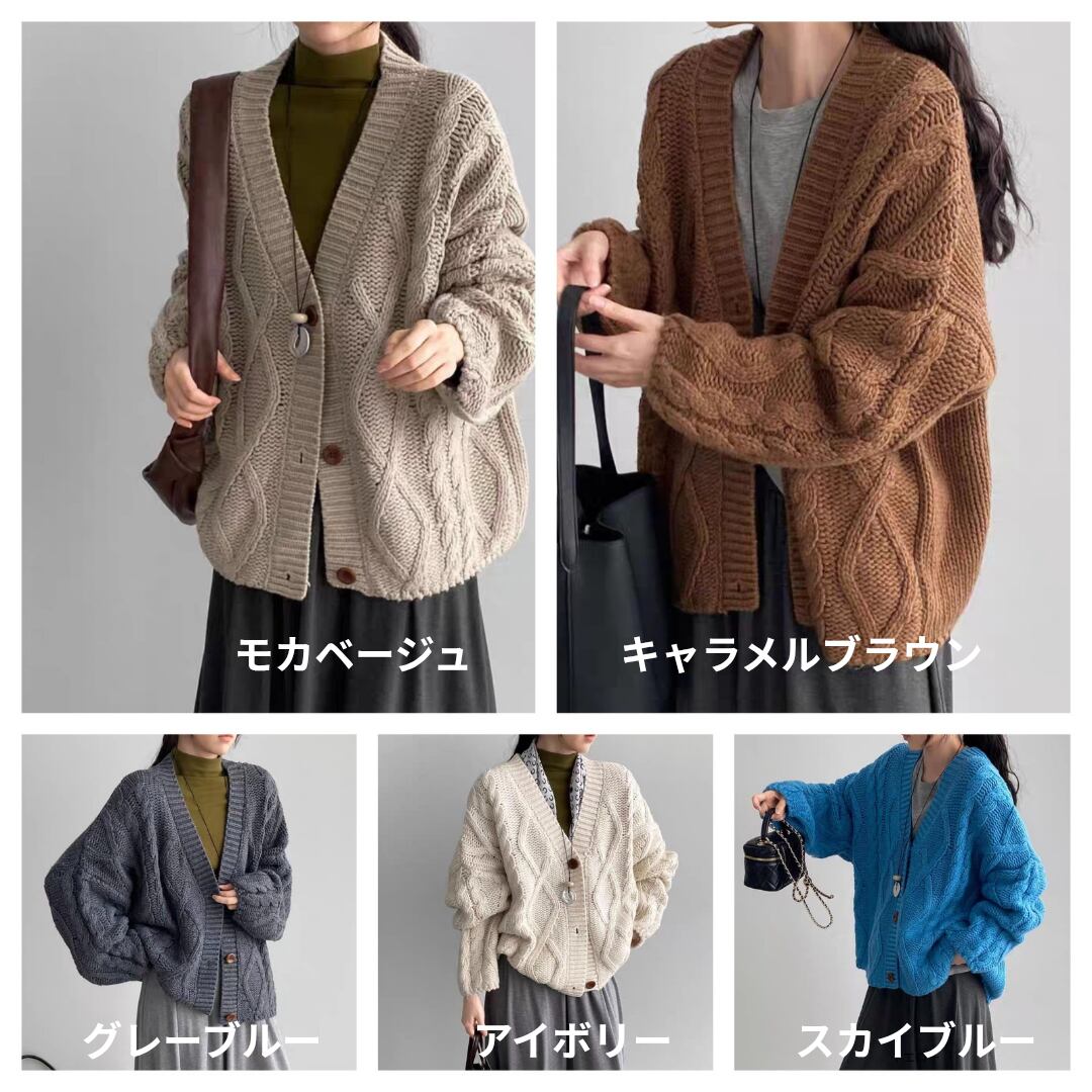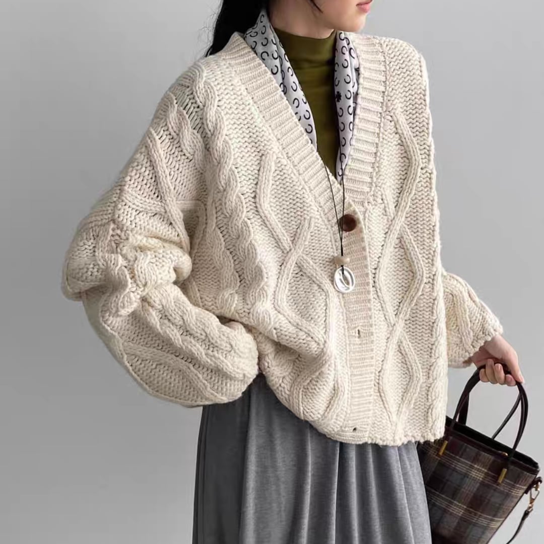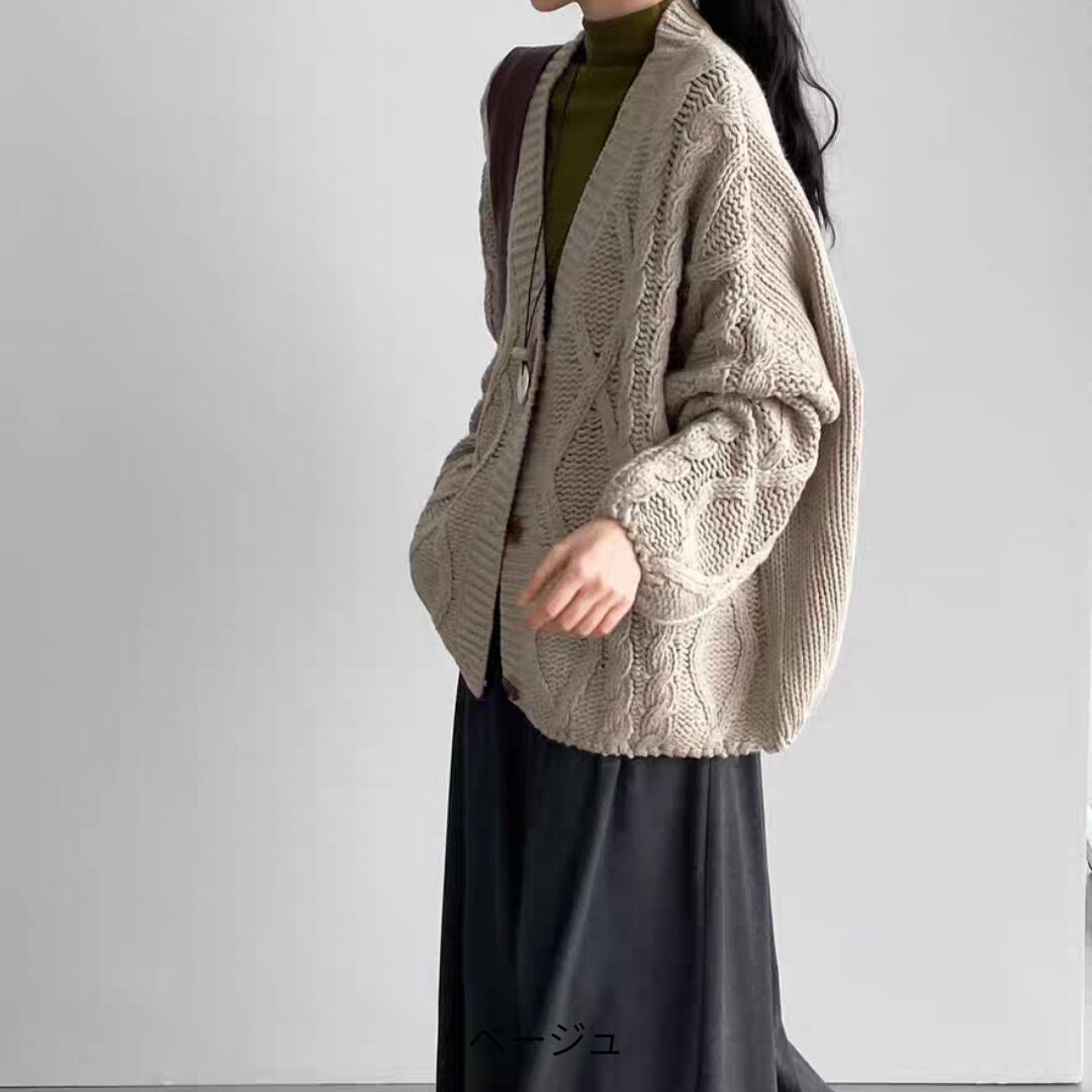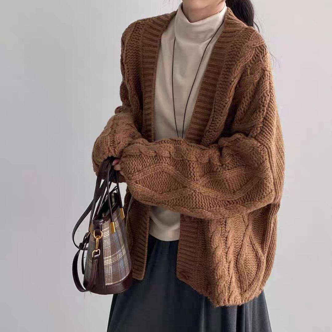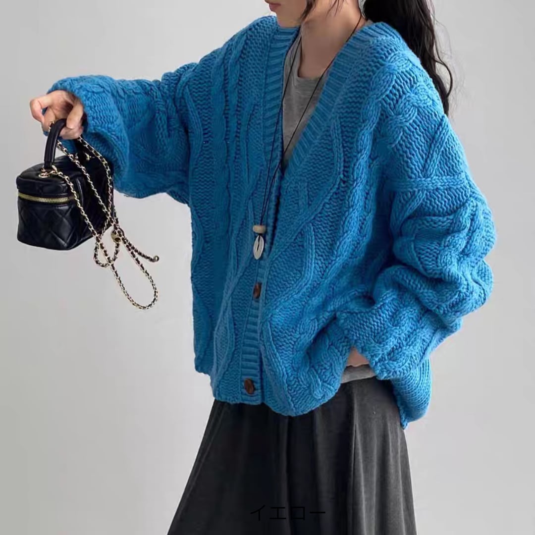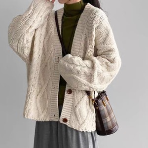 ふんわりとしたボリューム感が魅力のケーブル編みカーディガン。